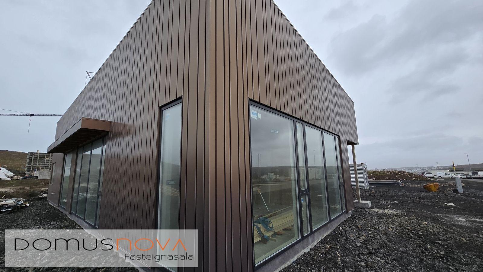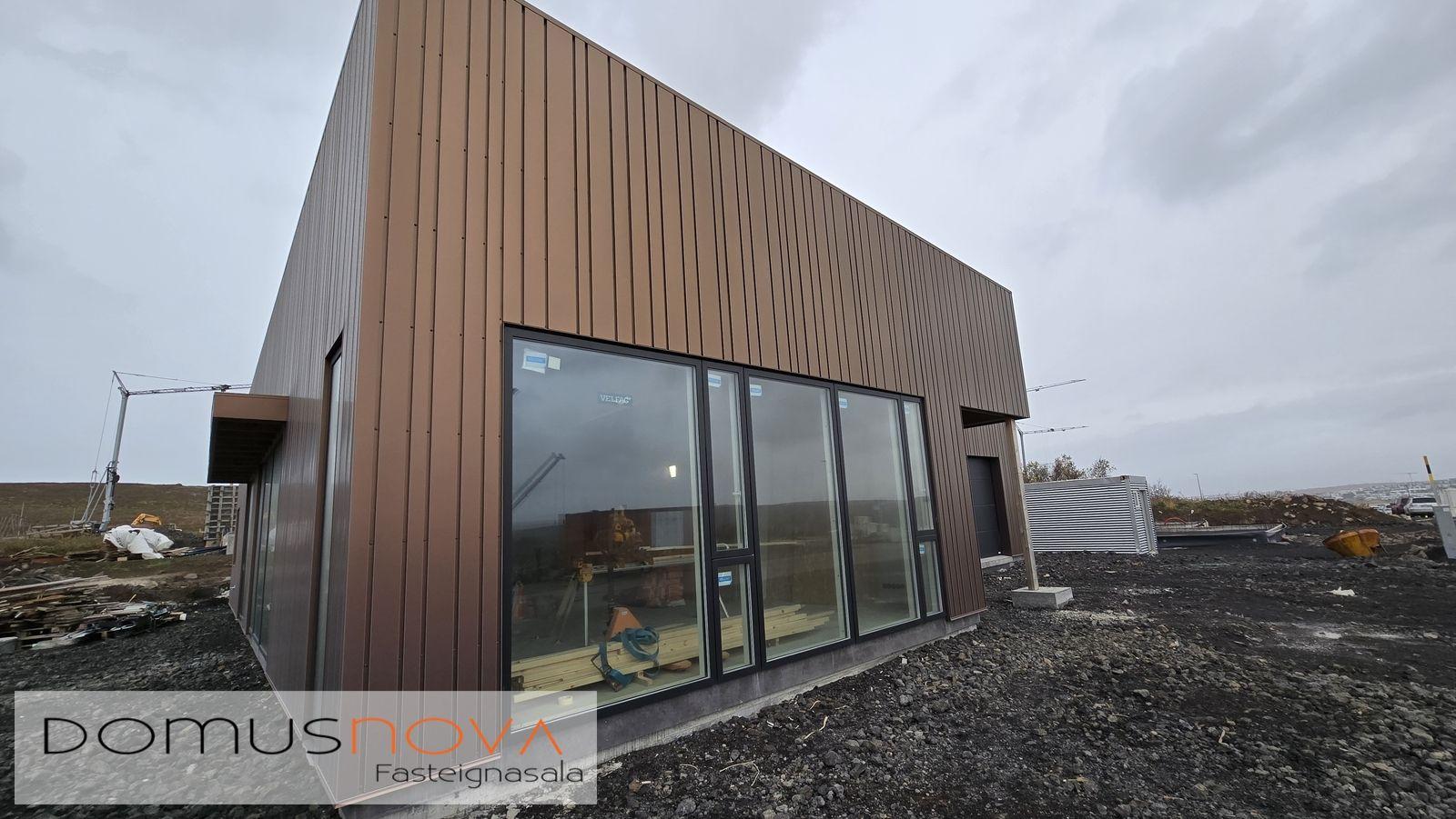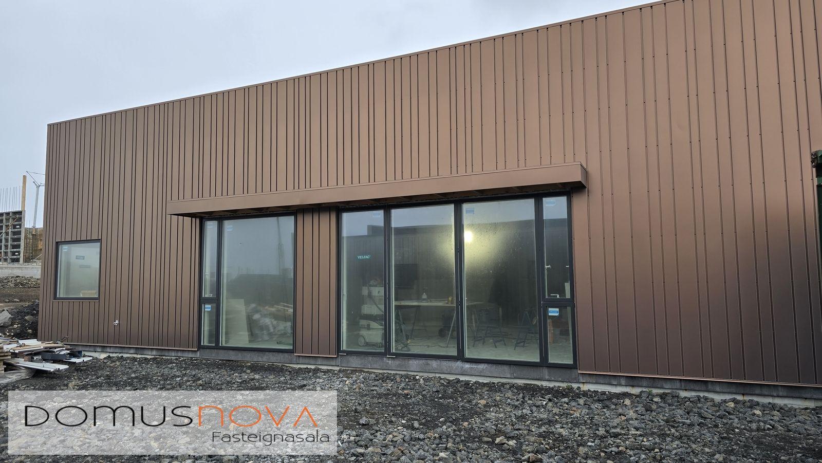 3 földu gleri sem tryggir góða hljóðvist og varmanýtni. Álklæðning er á húsinu frá Málmtækni í litnum Aged Oxid Copper. Allir