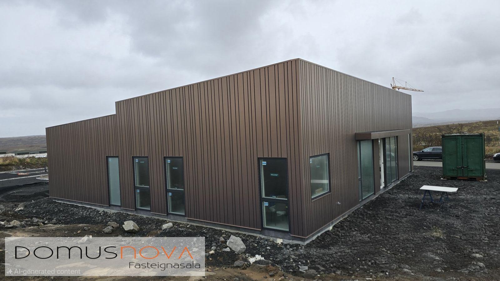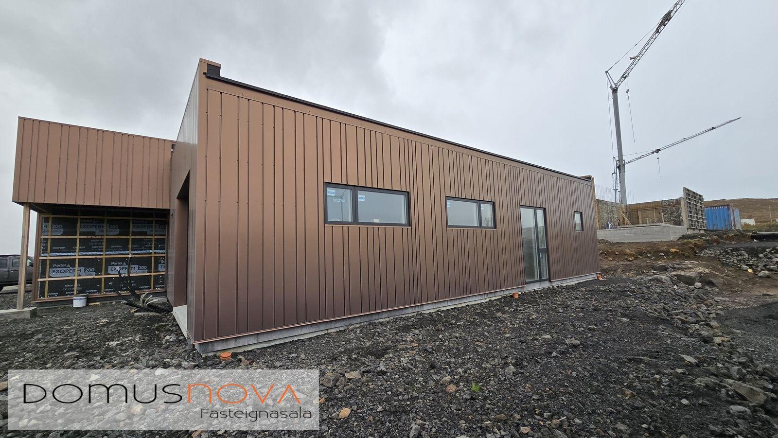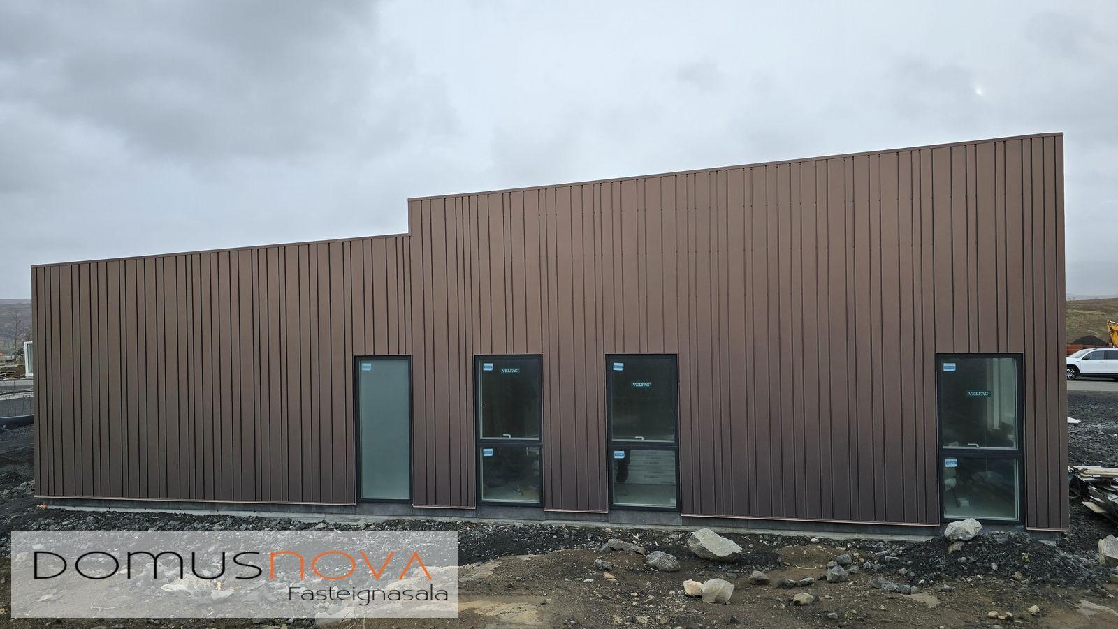3 földu gleri sem tryggir góða hljóðvist og varmanýtni. Álklæðning er á húsinu frá Málmtækni í litnum Aged Oxid Copper. Allir