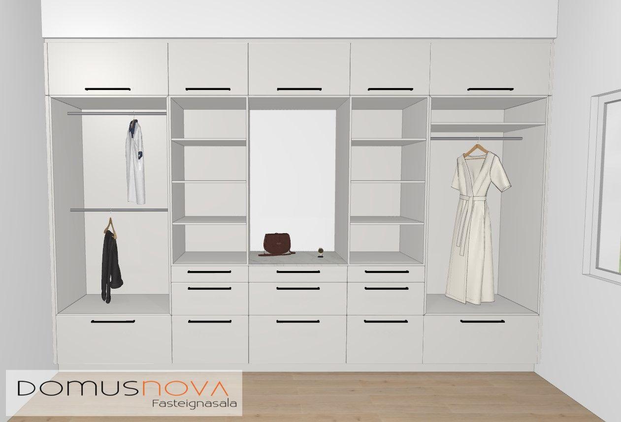fataskápum frá Hacker. Gólfsíðir gluggar, gardínu hólf með baklýsingu.