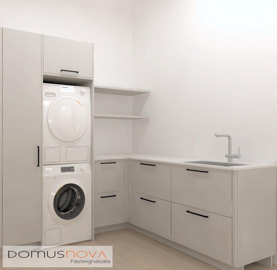 Miele og Liebherr. Hurðir frá Ringo (Birgisson)og hreinlætistæki frá Grohe. Gert er ráð fyrir