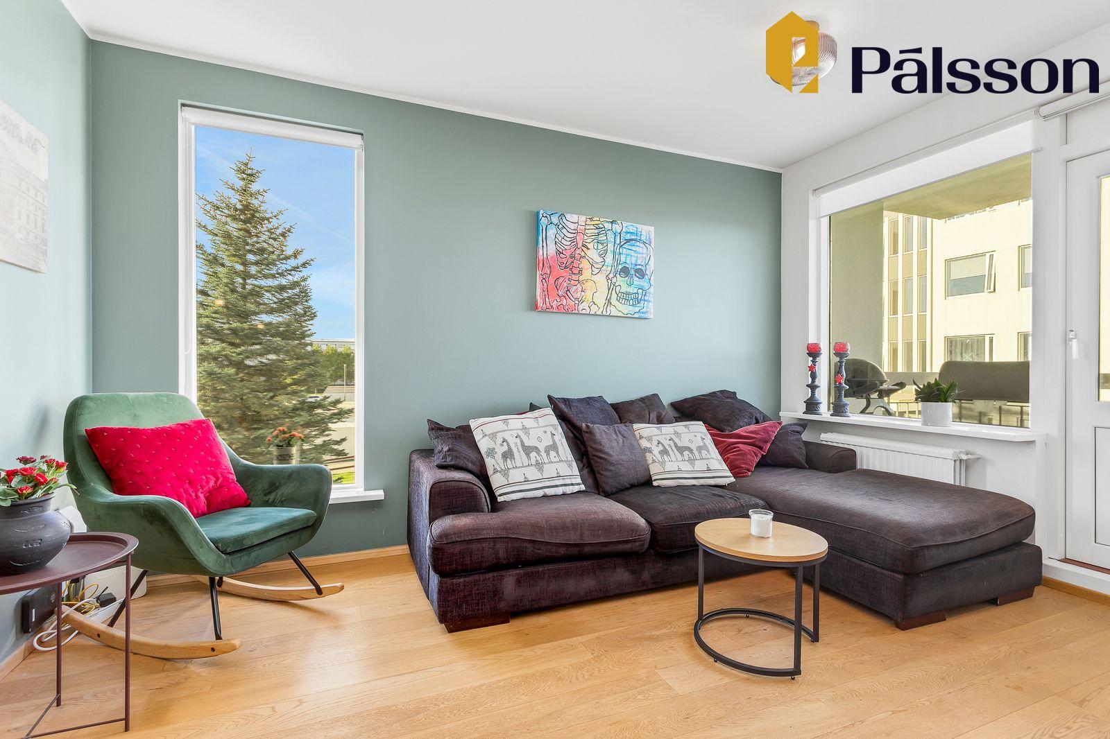 www.verdmat.is Eignin er í heildina skráð 134,3 fm og skiptist í íbúð sem er 114 fm og geymslu sem er 20,3 fm. Fasteignamat ársins 2026 er 76.700.000 kr.Íbúðin skiptist í forstofu, eldhús, stofu, 4 svefnherbergi, baðherbergi, þvottahús innan íbúðar og rúmgóða geymslu með glugga í sameign. Nýleg gólfefni og innréttingar.