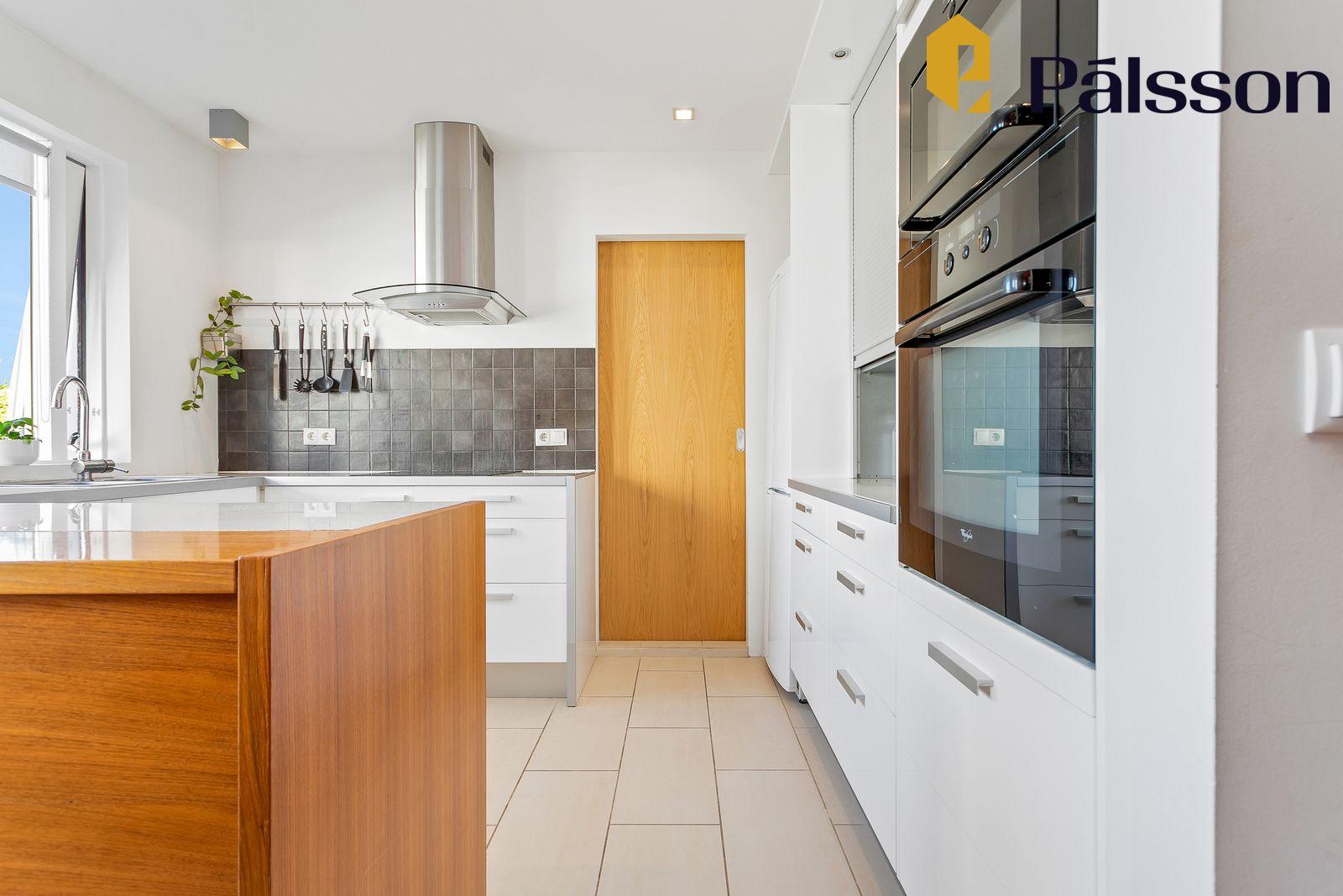 Þvottahús er inn af eldhúsi, tengi fyrir þvottavél og þurkara.