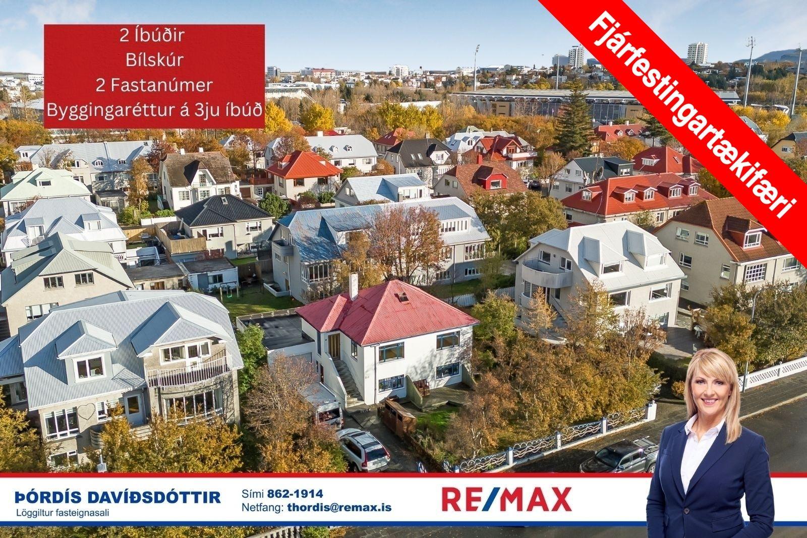 ** HÉR GETUR ÞÚ BÓKAÐ SKOÐUN Á EIGNINA ** Þórdís Björk Davíðsdóttur löggiltur fasteignasali og RE/MAX kynna: Einstaklega vel staðsett eign með tveimur 3ja herbergja íbúðum, stórum innangengum bílskúr og samþykktum teikningum fyrir íbúð 0201.