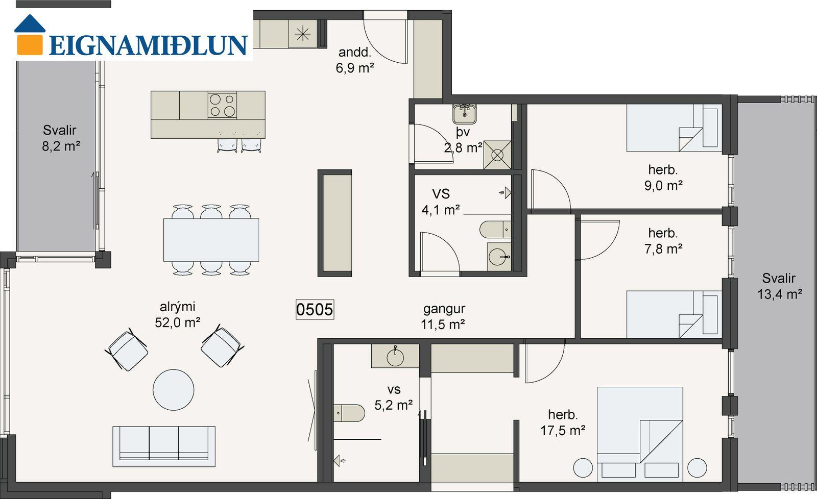 ÁLFTRÖÐ 7, 05-05 , 200 Kópavogur er mjög vönduð 141.6 fm 4 herbergja íbúð. Aukin lofthæð ca 3,0 metrar og gólfhitakerfi. Stæði í bílageymslu fylgja. Glæsilegt útsýni er úr íbúðinni. Tvennar svalir, 8,2 og 13,4 fm. Tvö baðherbergi þar af annað innaf hjónaherbergi sem einnig er með fataherbergi. BÓKIÐ SKOÐUN SÝNUM SAMDÆGURS HEIMASÍÐA SMELLIÐ HÉR Vandaðar þakíbúðir með þaksvölum: Við kynnum glæsilegar íbúðir með þaksvölum í þessu fallega fjölbýlishúsi í hjarta Kópavogs þaðan sem stórkostlegt útsýni er til allra átta og stutt er í skóla, verslanir, menningarlíf og þjónustu. Möguleiki er að kaupa auka stæði í bílakjallara með íbúðunum.