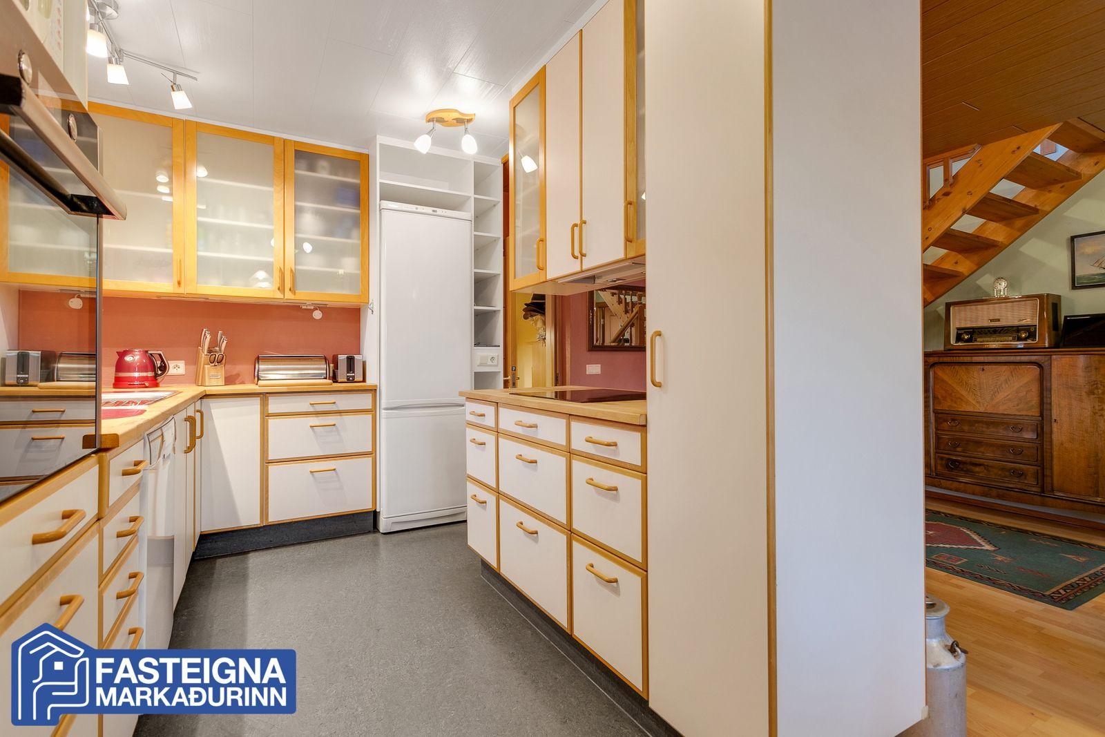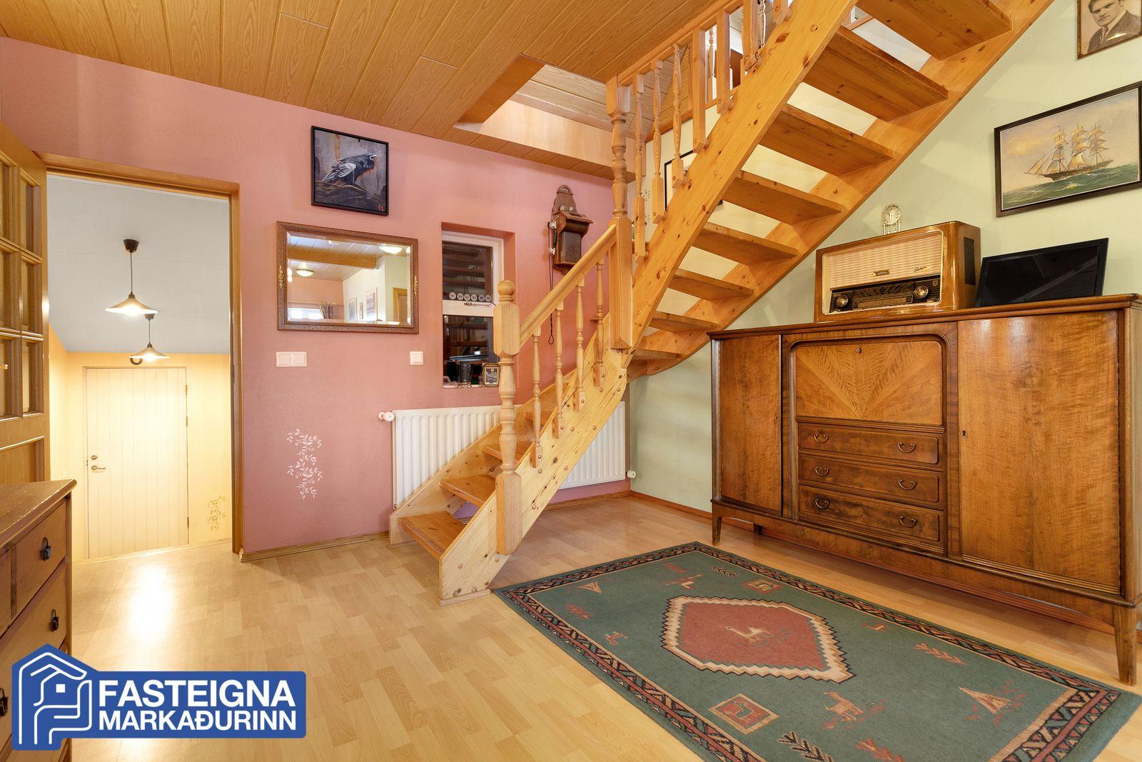 Nýir gluggar eru í flestöllu húsinu og hefur það verið þó nokkuð endurnýjað hið innra og ávallt hlotið gott viðhald. Stór geymsluskúr er við húsið og verönd til suðurs. Sér inngangur er á jarðhæð og möguleiki að gera sér íbúð og einnig að tengja við efri hæð.Lýsing eignar:Forstofa, flísalögð og rúmgóð með fataskápum.