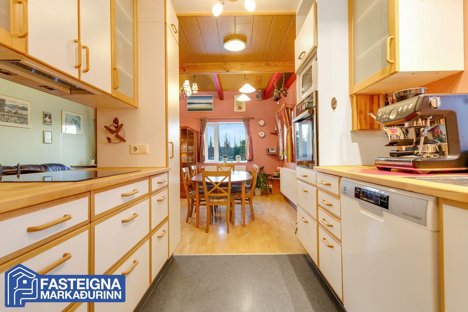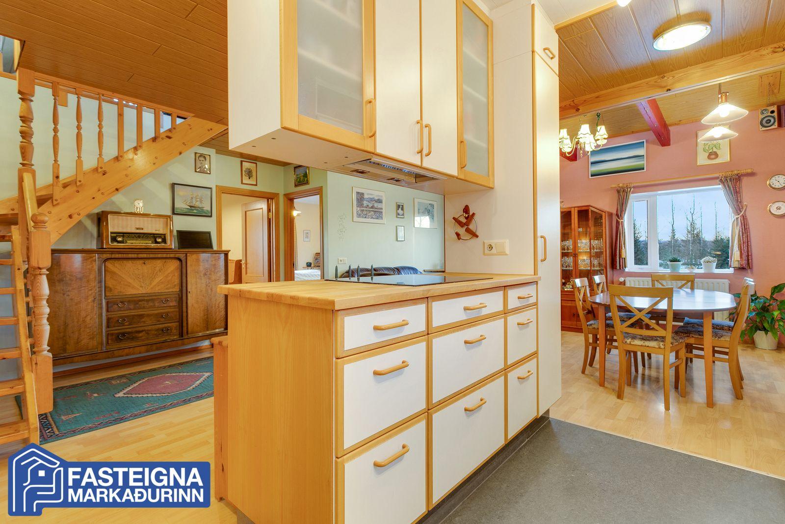 Geymsluskúr, sem er á lóð er ekki í fermetratölu eignar og er 16 fermetri að stærð með hellulagðri stétt fyrir framan og viðarverönd til suðurs.Húsið að utan lítur vel út og hefur fengið gott viðhald í gegnum árin. Búið er að endurnýja flestalla gluggar og gler í húsinu. Þakjárn lítur vel út og almennt lítur húsið vel út að utan.
