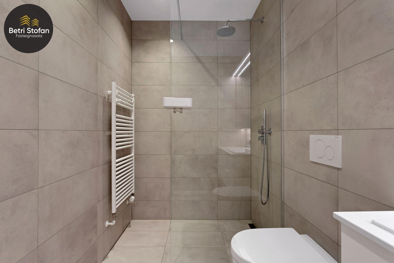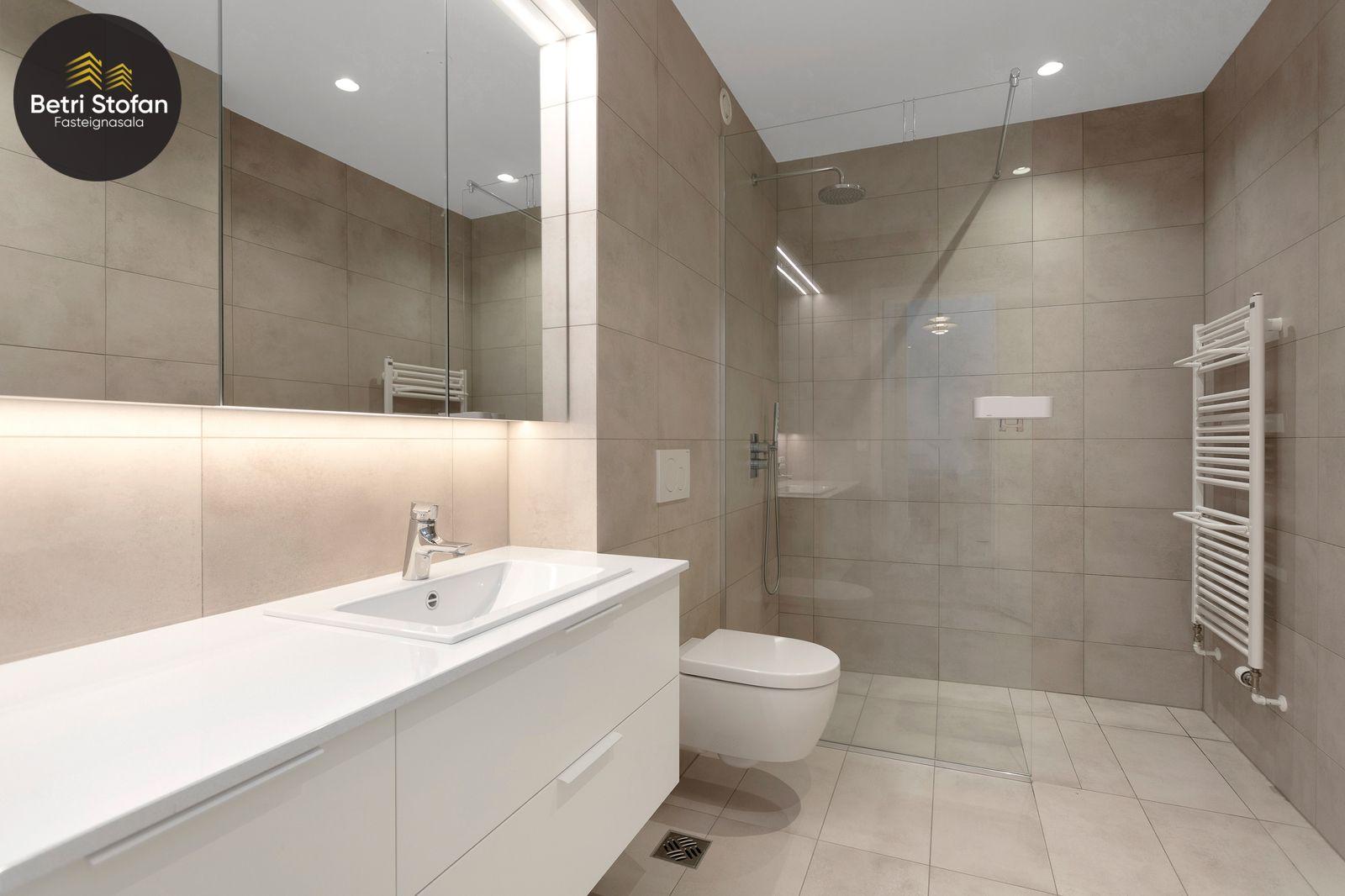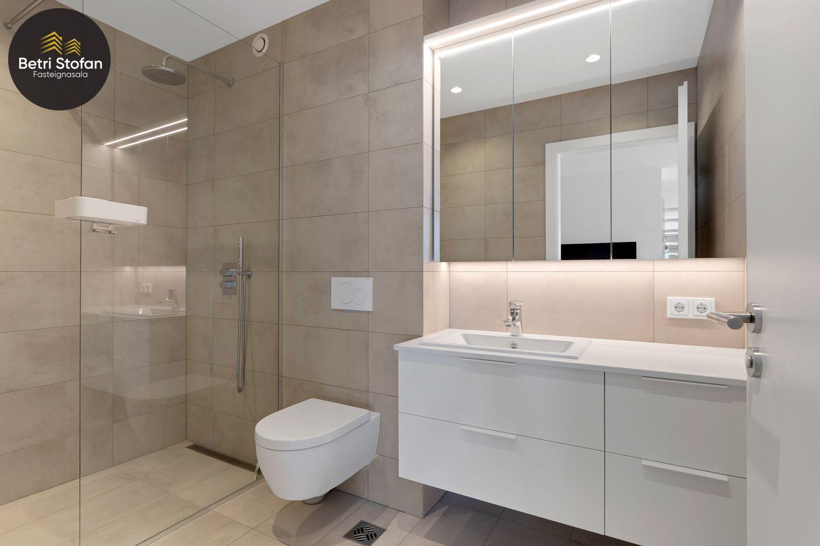 Baðherbergi: Inn af holi, flísalagt gólf og veggir. Sturta með glerþili og innbyggðum blöndunartækjum frá Tengi. Innrétting frá Brúnás.