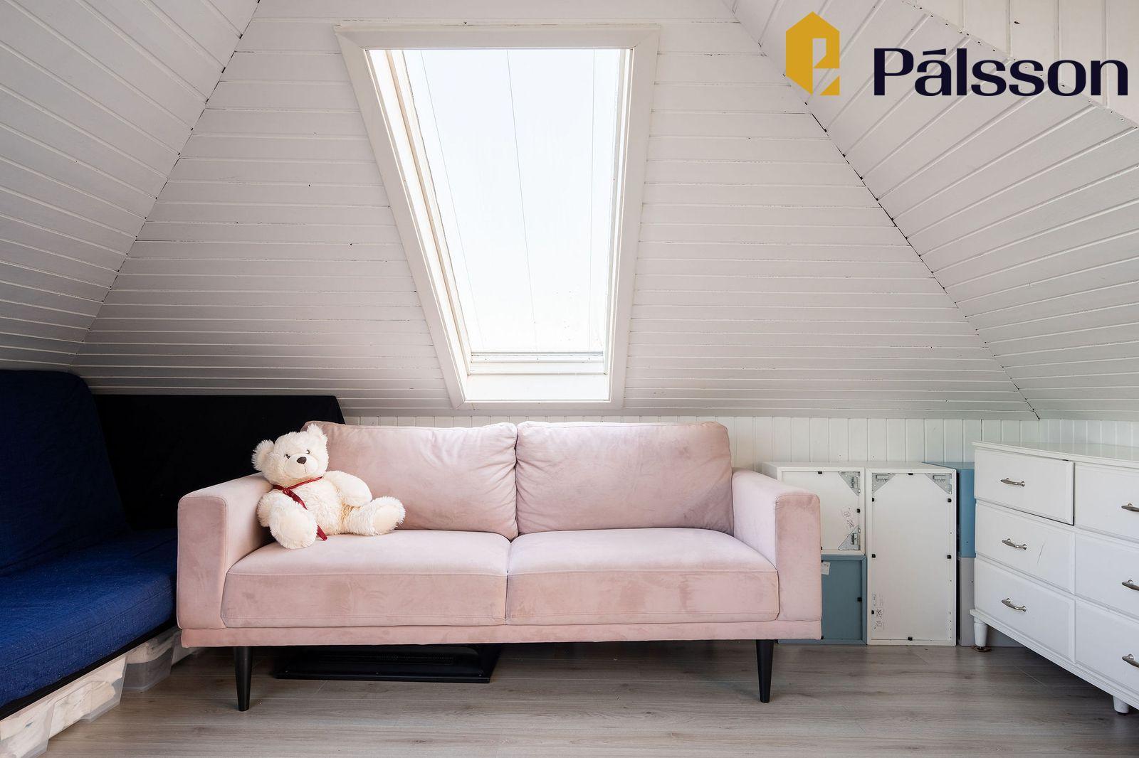 Opið bjart rými undir súð með þakgluggum. Hægt að nota sem stofu eða svefnloft. Parket á gólfi.