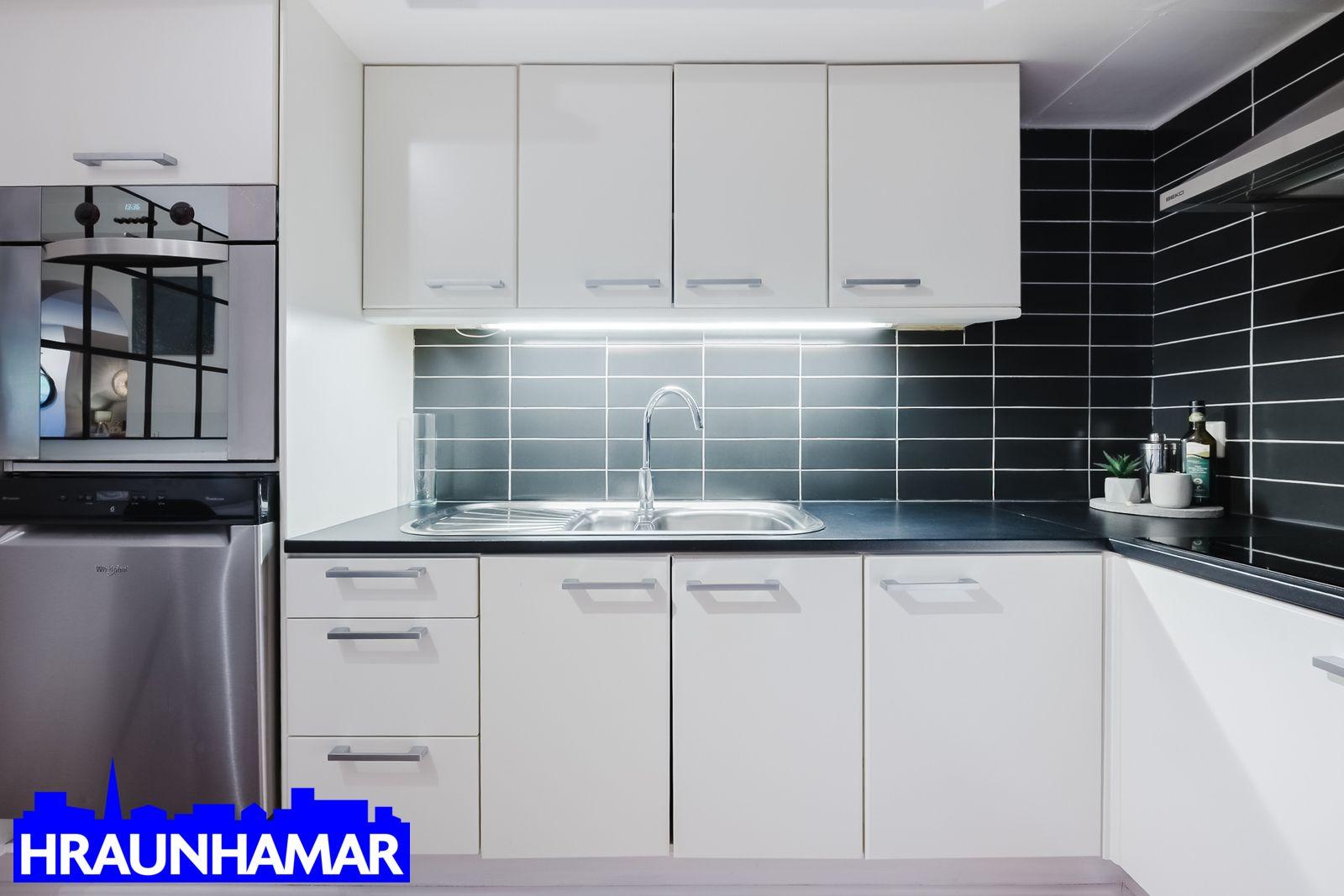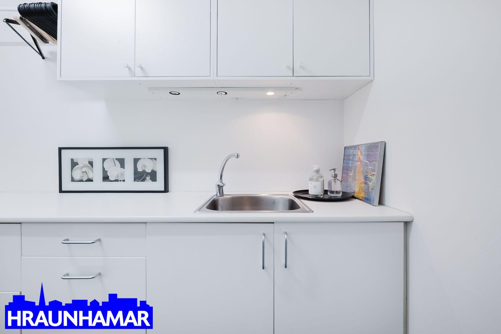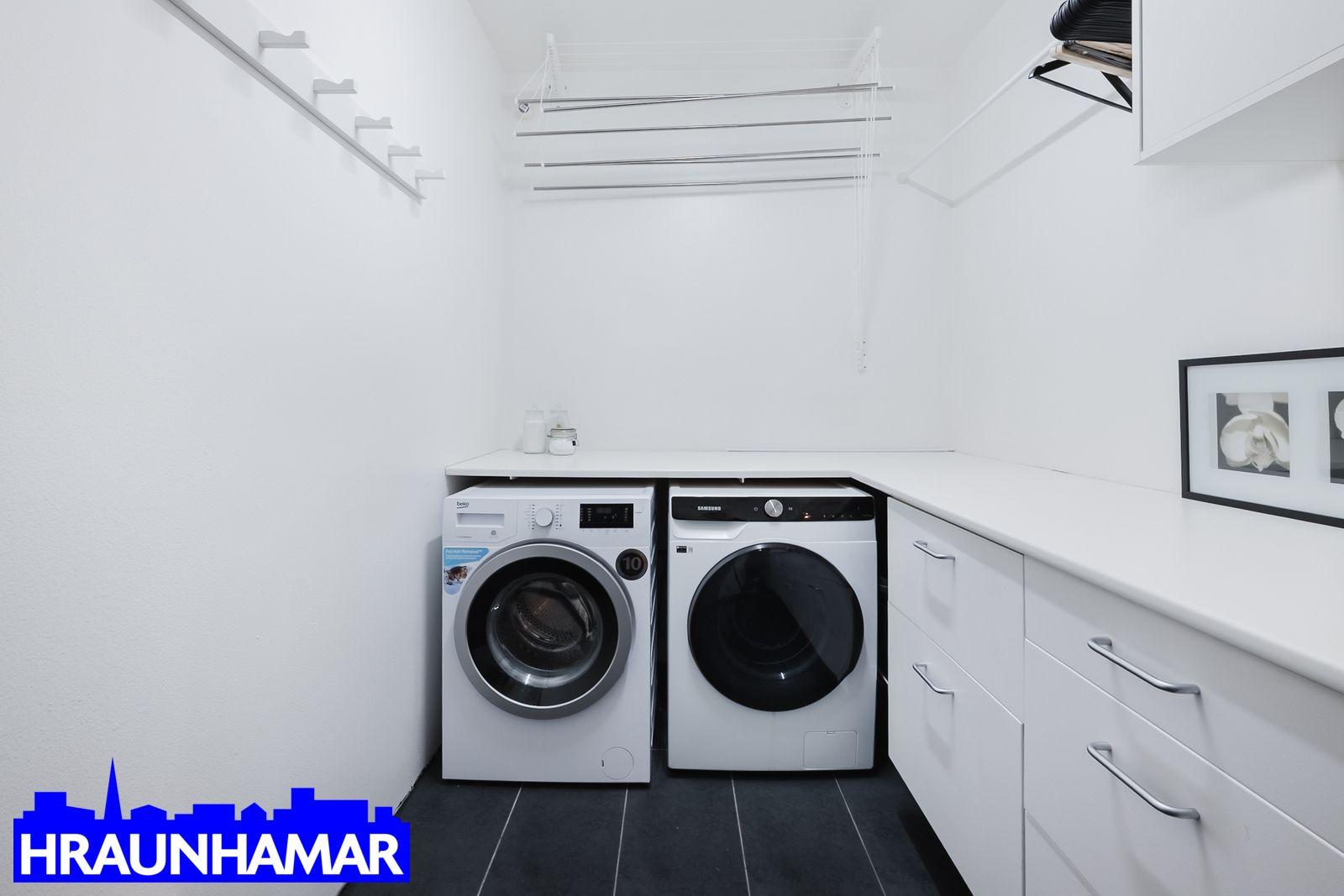 Þvottahús er inn af svefnherbergi II. Innrétting með efri skápum, vask og góðu borðplássi. ( er stærra en uppgefnir fm.)
