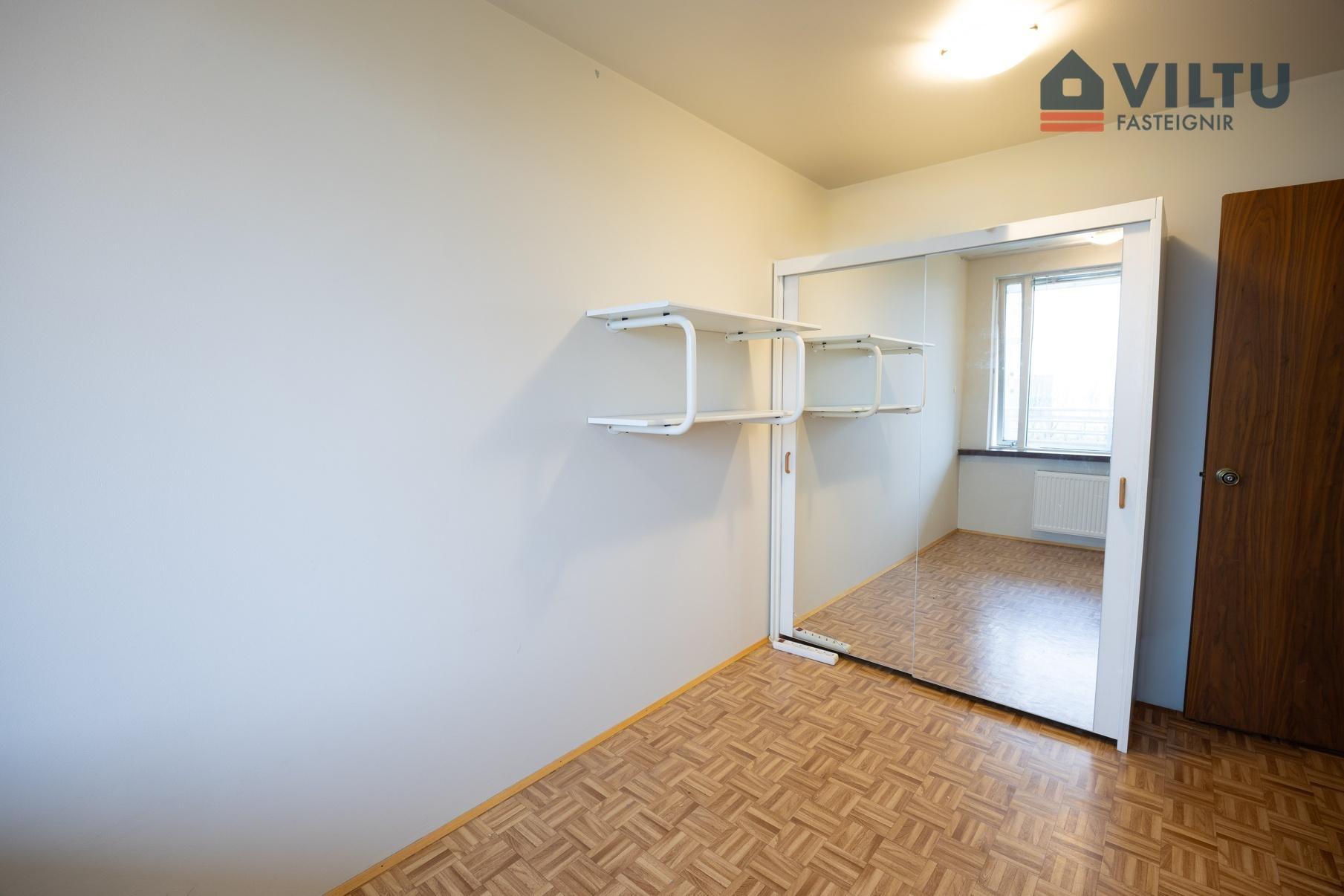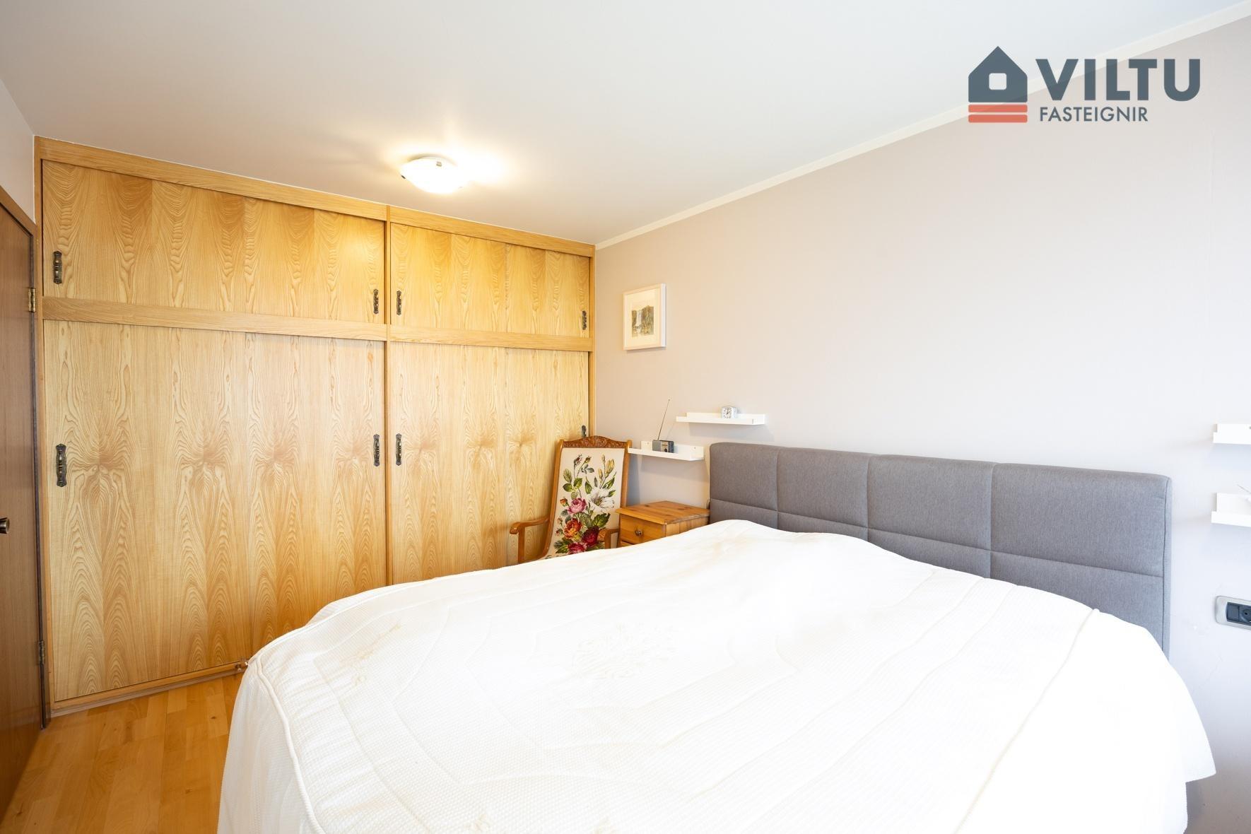 Hjónaherbergi rúmgott með góðum skápum útgengt á svalir.