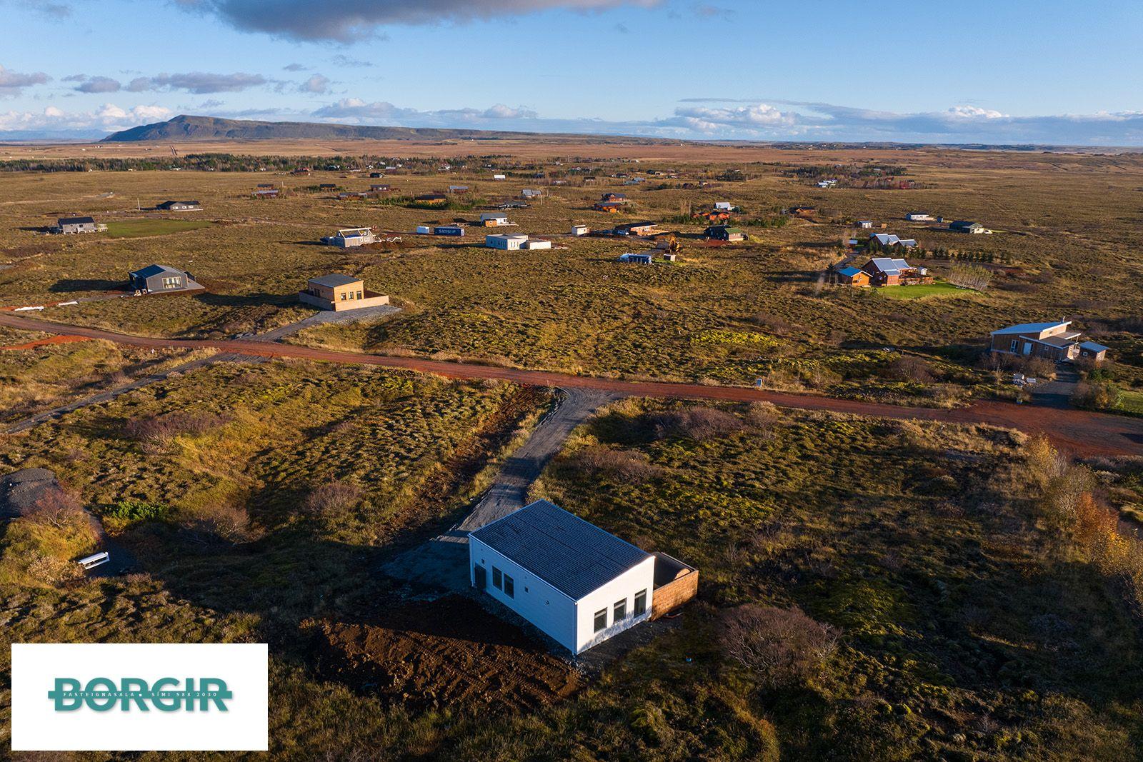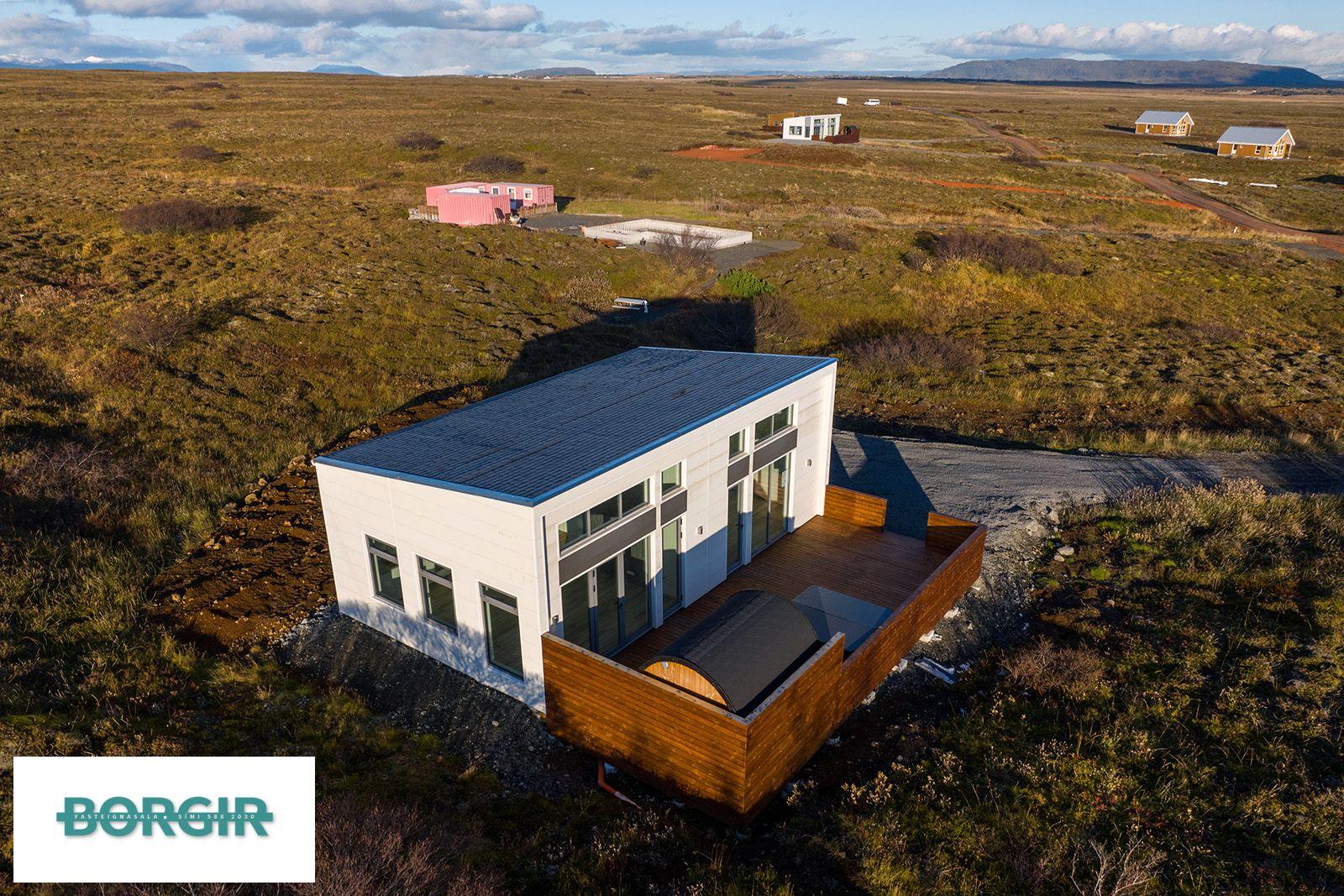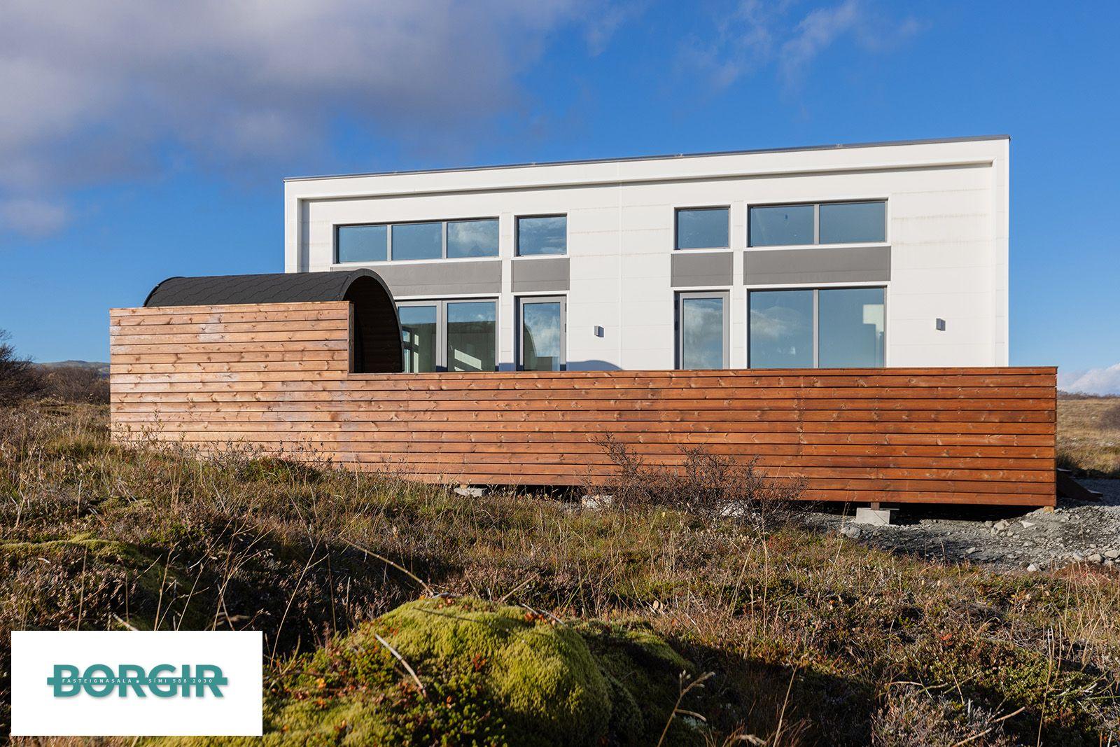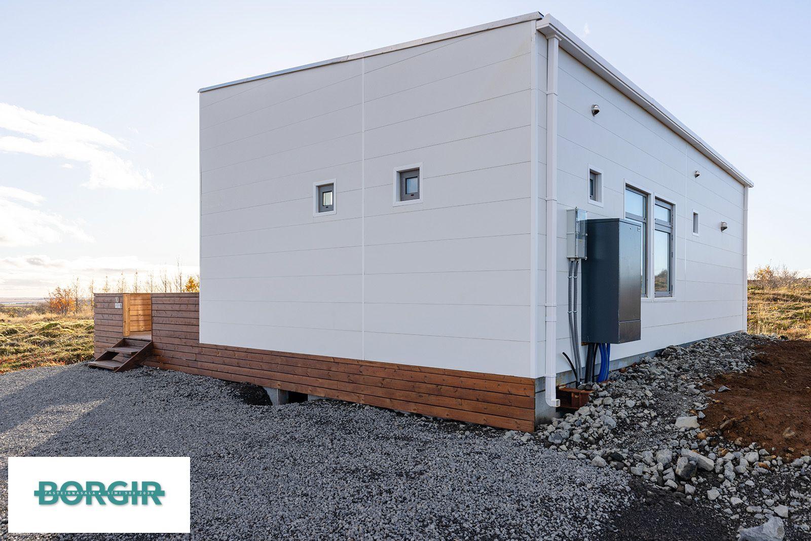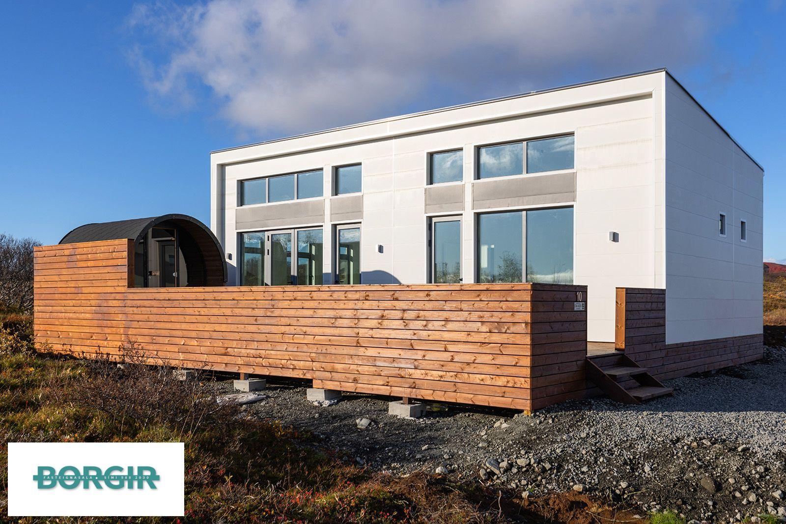 Um er að ræða hús sem er framleidd af Citic Construction sem er einn af stæðstu framleiðendum á húsum í heimi og er stálgrindar einingahús með tveimur svefnherbergjum, tveimur baðherbergjum, eldhúsi/borðstofu/stofu, mikilli lofthæð og gólfsíðum gluggum og fallegu útsýni. Hiti í gólfi frá Danfoss. Halogen ljós í loftinu. Pallur með skjólvegg. Öryggisgler er í öllu húsinu. Rafmagns heitur pottur og sauna. Húsið er sett saman af Gunnarsfell verktakar.