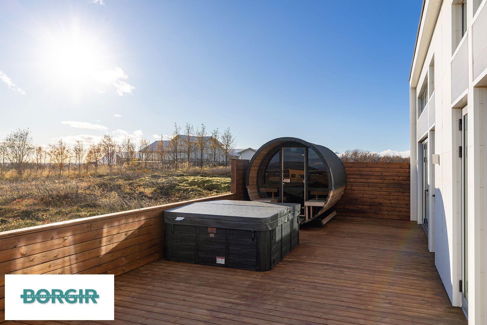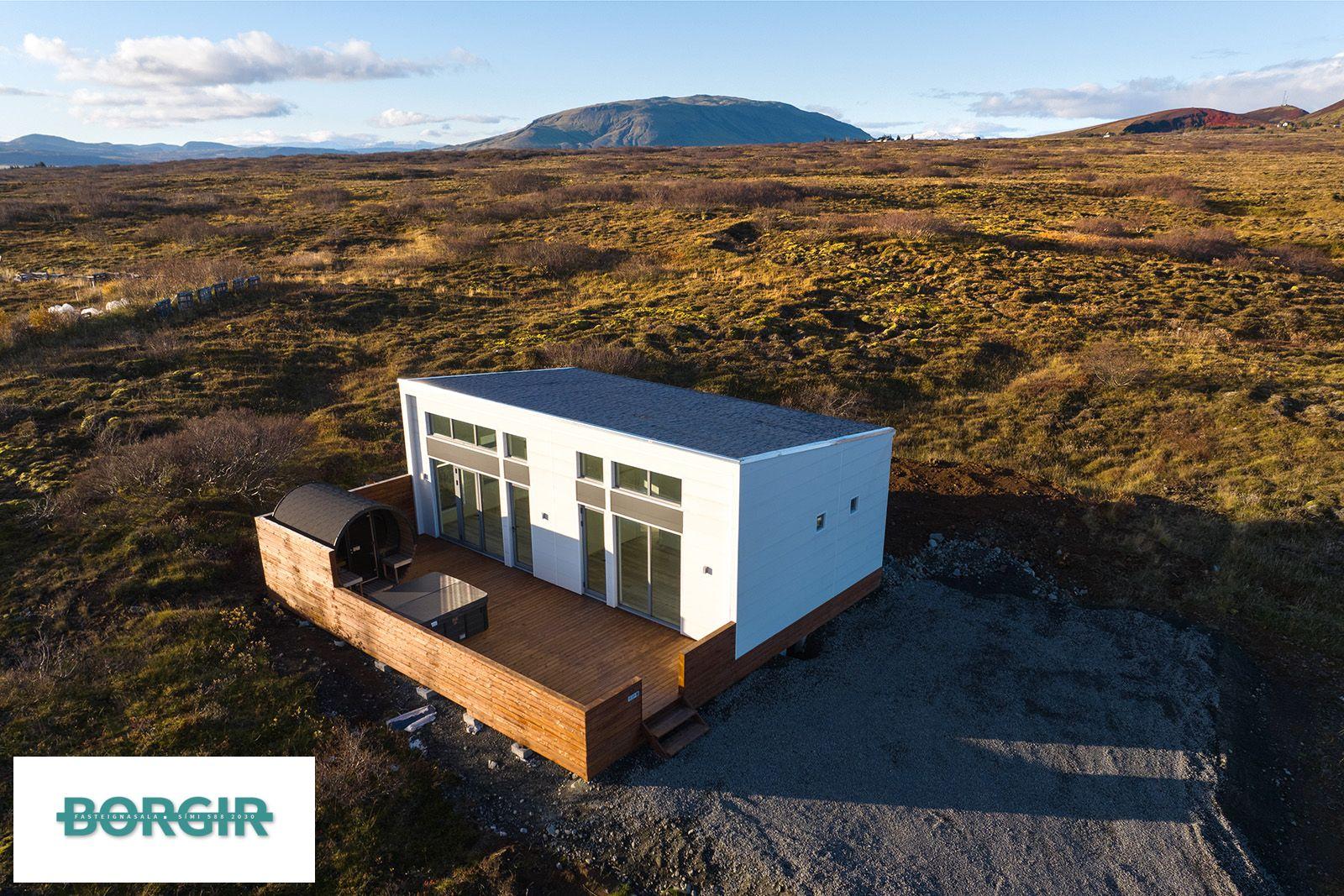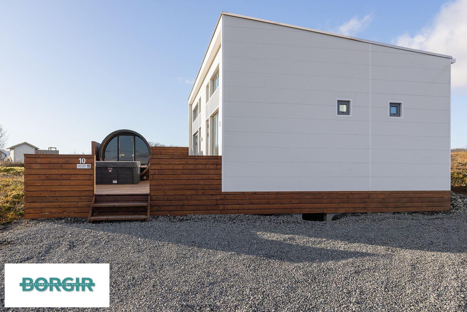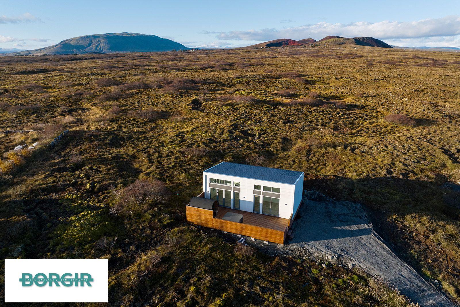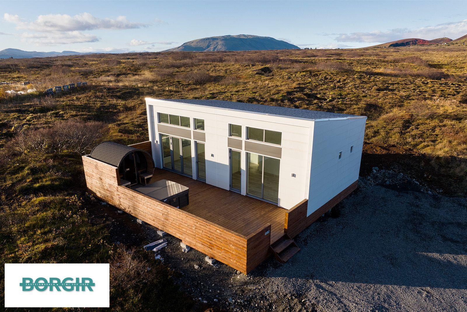Um er að ræða hús sem er framleidd af Citic Construction sem er einn af stæðstu framleiðendum á húsum í heimi og er stálgrindar einingahús með tveimur svefnherbergjum, tveimur baðherbergjum, eldhúsi/borðstofu/stofu, mikilli lofthæð og gólfsíðum gluggum og fallegu útsýni. Hiti í gólfi frá Danfoss. Halogen ljós í loftinu. Pallur með skjólvegg. Öryggisgler er í öllu húsinu. Rafmagns heitur pottur og sauna. Húsið er sett saman af Gunnarsfell verktakar.