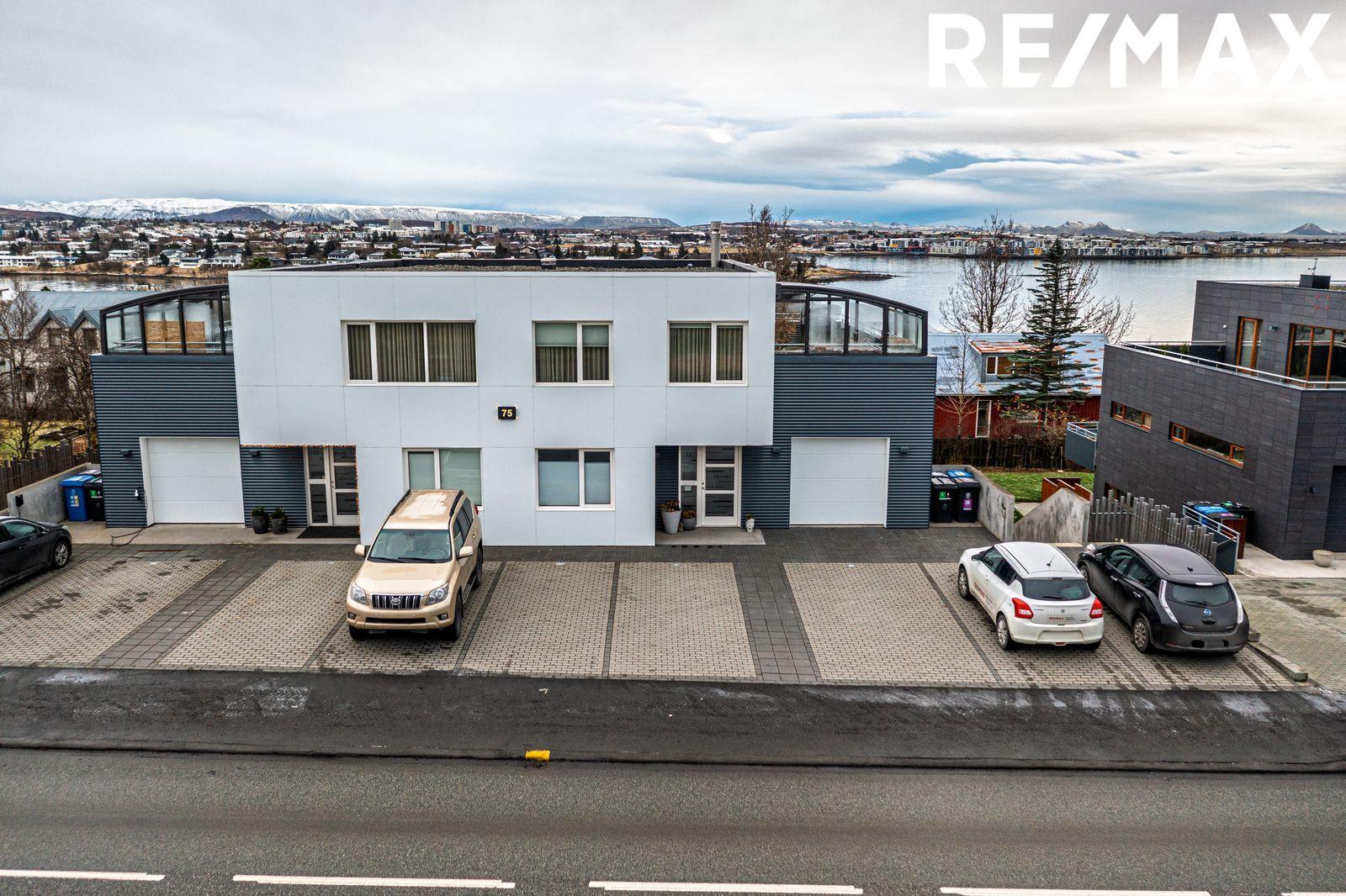 RE/MAX og Oddur fasteignasali kynna í einkasölu: Glæsilega þriggja herbergja íbúð í nýlegu fjórbýli í Kársnesinu. Íbúðin er 133,5fm með sérinngangi og verönd sem snýr í suður. Vegleg og vönduð eign þar sem öll rými eru rúmgóð og glæsileg. Gengið er niður stiga hægra megin við húsið.