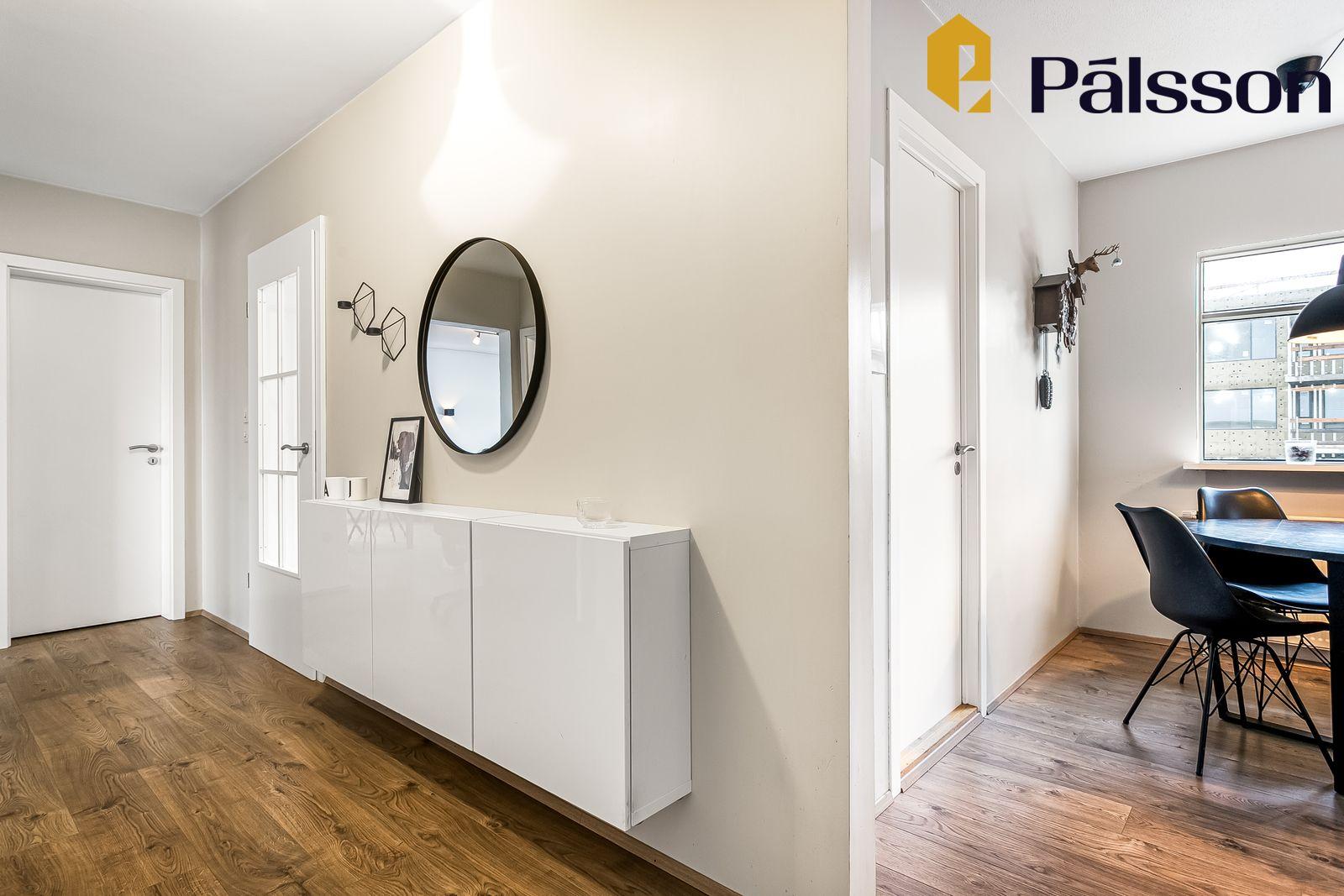 Þvottahús: rúmgott þvottahús með innréttingu er innan íbúðar. Þaðan er aðgengi að geymslu lofti yfir íbúðinni.