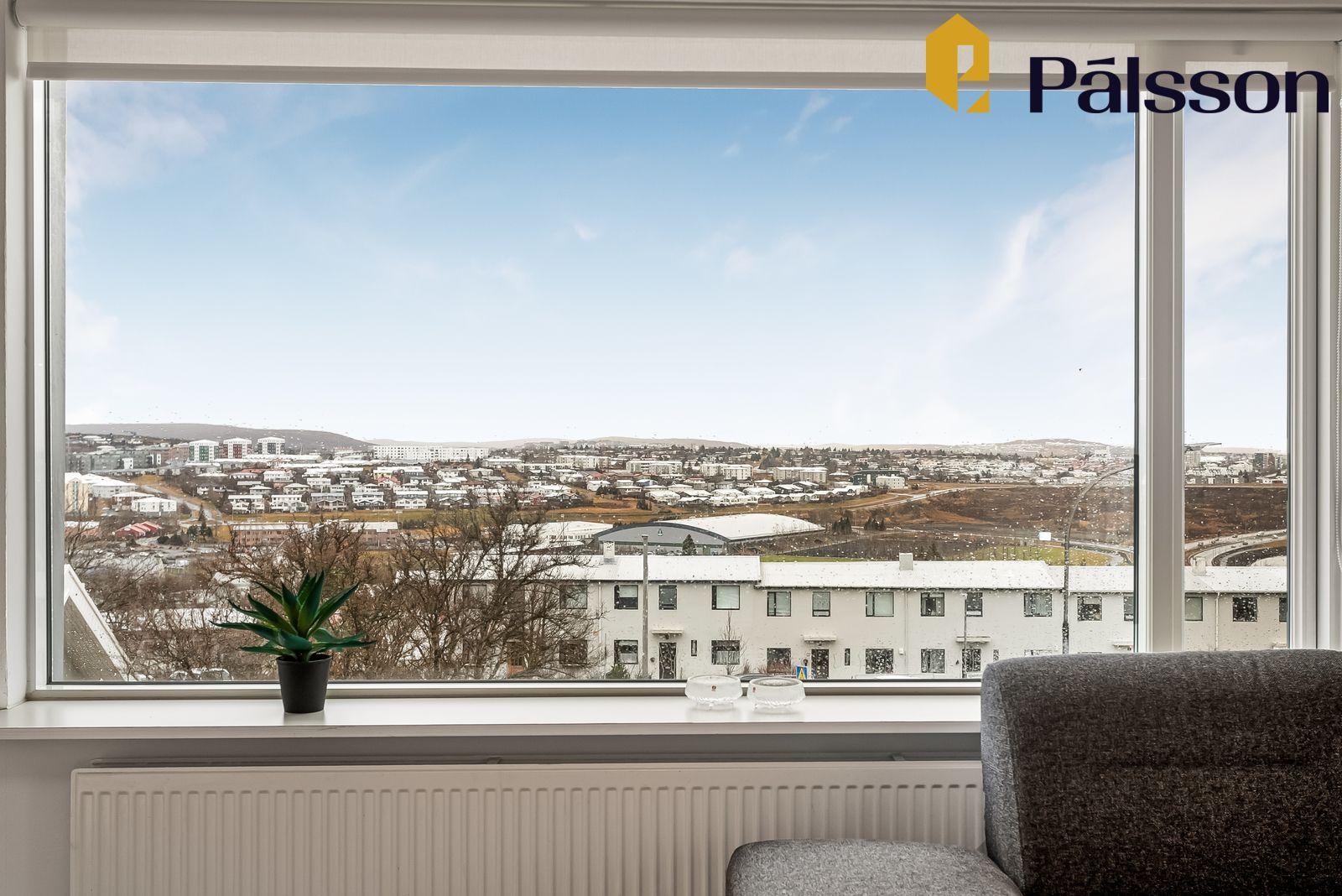 og með góðu útsýni úr stórum suðurglugga. Útgengi er út á suðursvalir frá stofu.