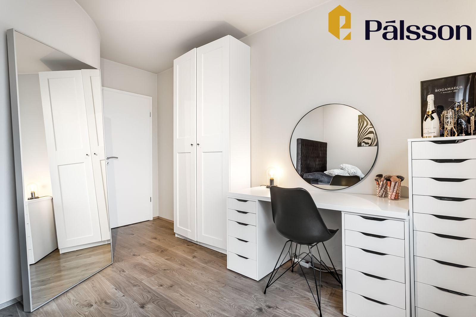 Hjónaherbergi: rúmgott hjónaherbergi með góðu skápaplássi.