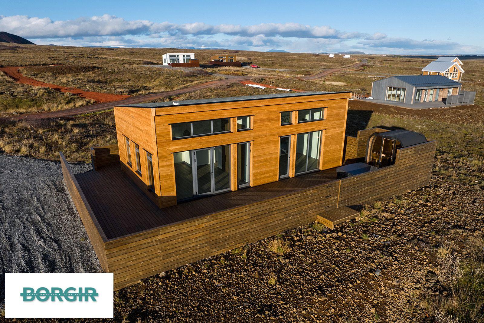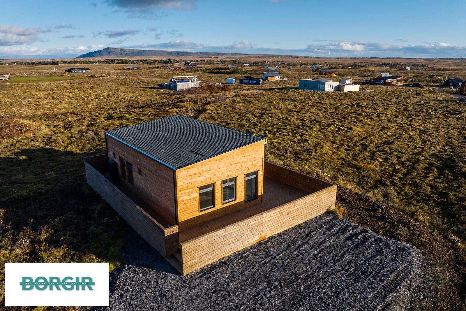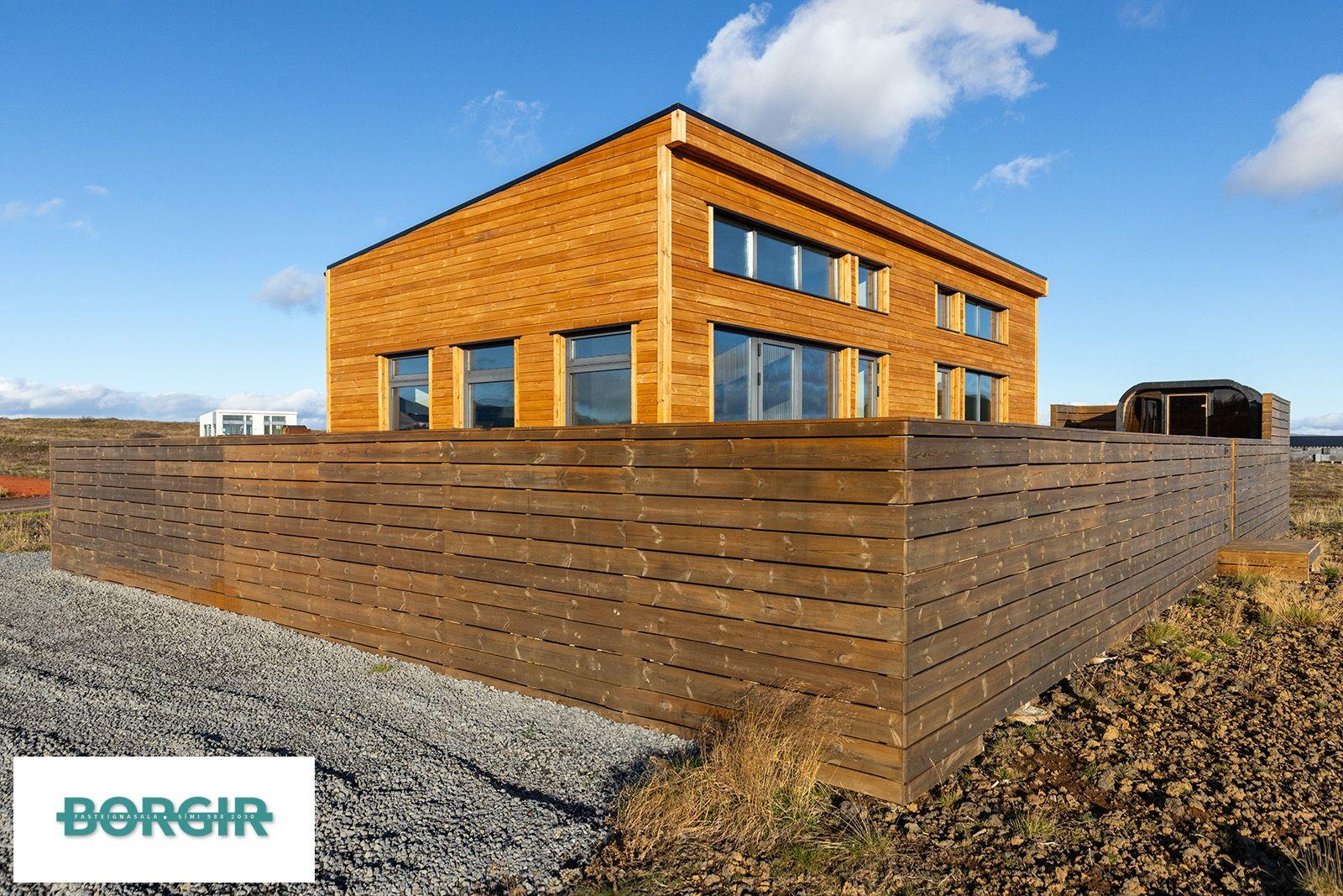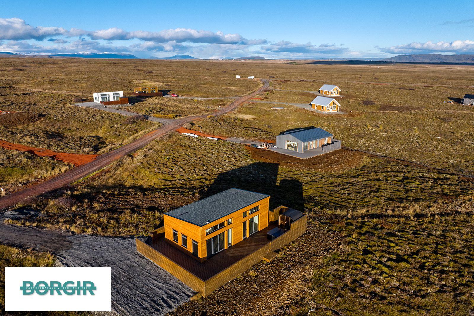 Um er að ræða hús sem er framleidd af Citic Construction sem er einn af stæðstu framleiðendum á húsum í heimi og er stálgrindar einingahús með tveimur svefnherbergjum, tveimur baðherbergjum, eldhúsi/borðstofu/stofu, mikilli lofthæð og gólfsíðum gluggum og fallegu útsýni. Hiti í gólfi frá Danfoss. Halogen ljós í loftinu. Pallur með skjólvegg. Öryggisgler er í öllu húsinu. Húsið er sett saman af Gunnarsfell Verktakar. Rafmagns heitur pottur og sauna.