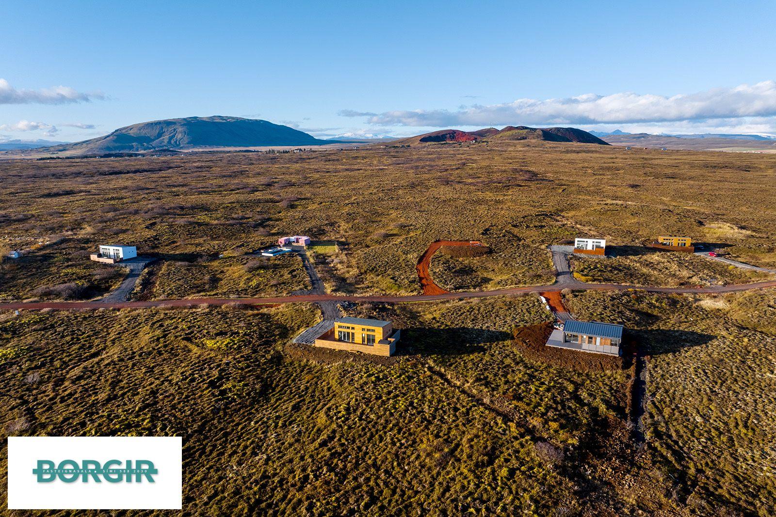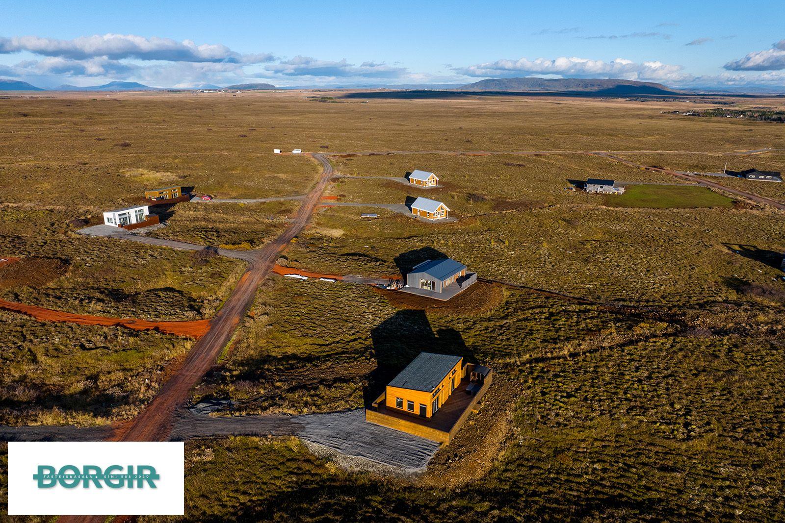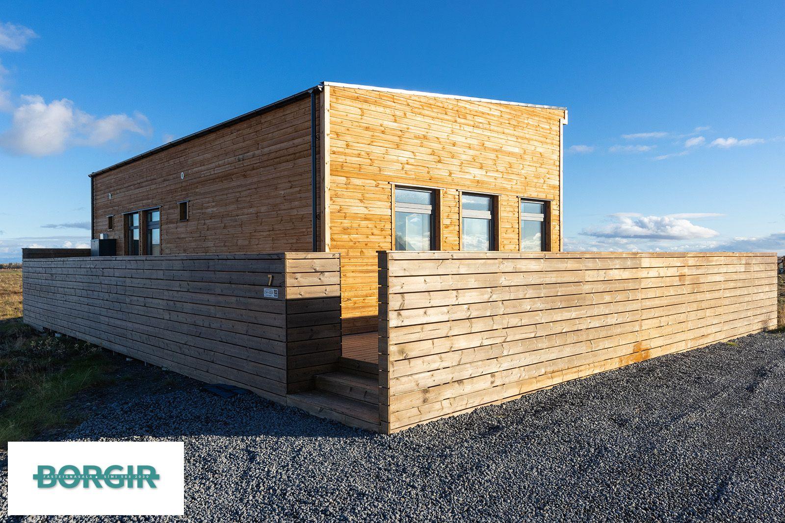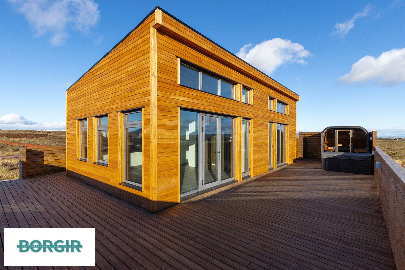 Um er að ræða hús sem er framleidd af Citic Construction sem er einn af stæðstu framleiðendum á húsum í heimi og er stálgrindar einingahús með tveimur svefnherbergjum, tveimur baðherbergjum, eldhúsi/borðstofu/stofu, mikilli lofthæð og gólfsíðum gluggum og fallegu útsýni. Hiti í gólfi frá Danfoss. Halogen ljós í loftinu. Pallur með skjólvegg. Öryggisgler er í öllu húsinu. Húsið er sett saman af Gunnarsfell Verktakar. Rafmagns heitur pottur og sauna.