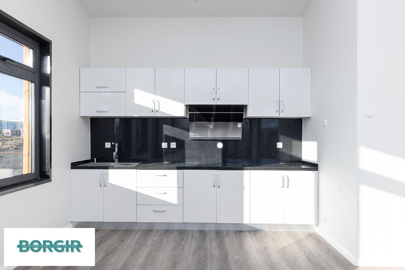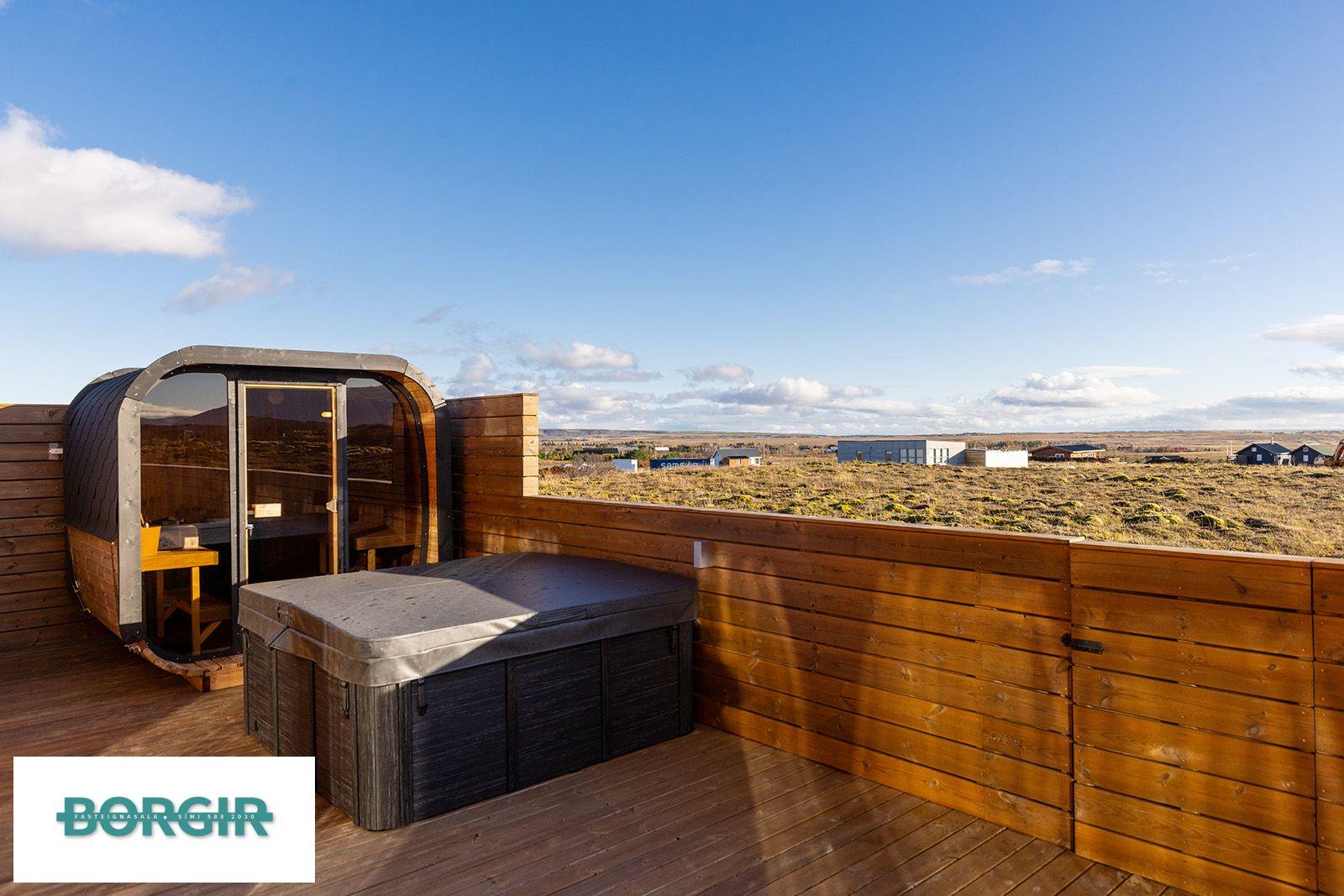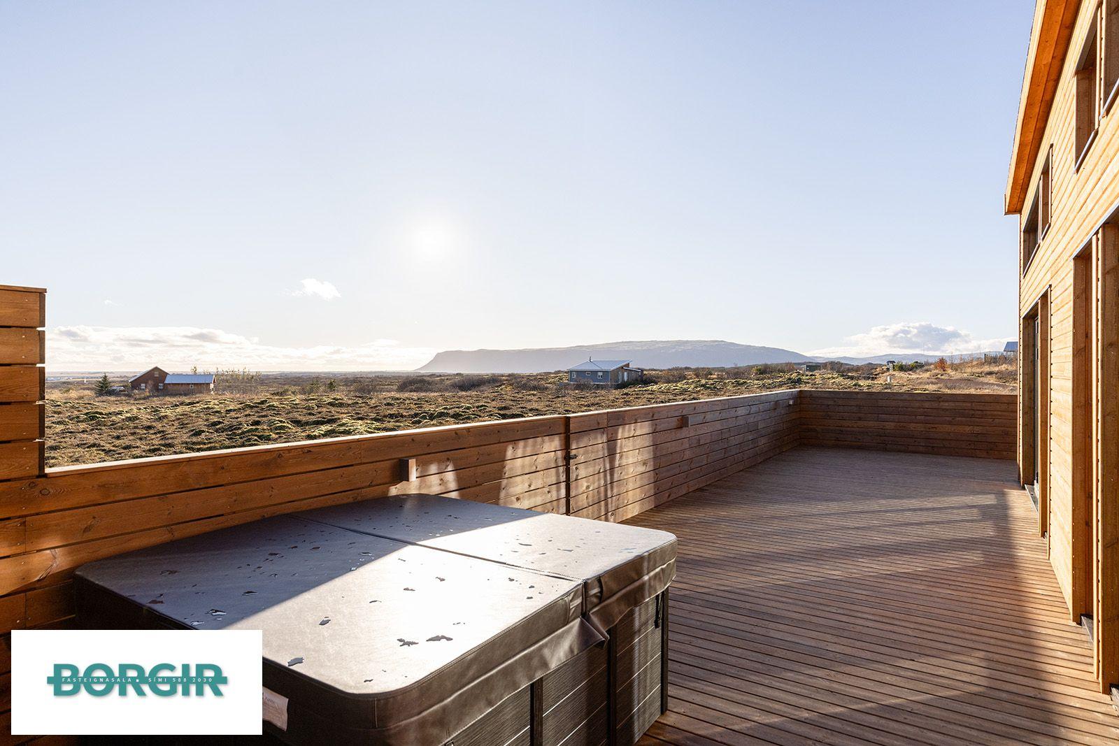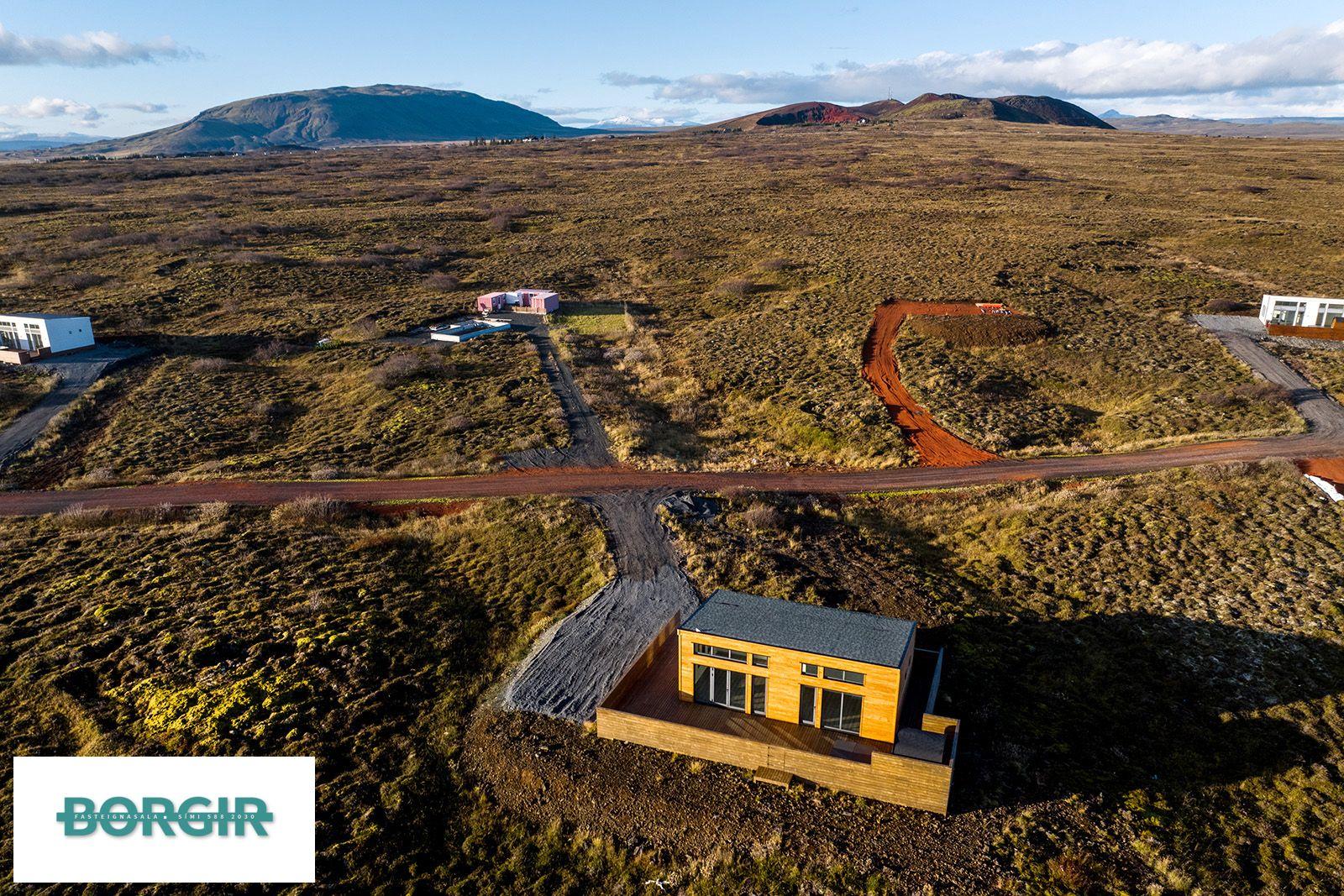 Um er að ræða hús sem er framleidd af Citic Construction sem er einn af stæðstu framleiðendum á húsum í heimi og er stálgrindar einingahús með tveimur svefnherbergjum, tveimur baðherbergjum, eldhúsi/borðstofu/stofu, mikilli lofthæð og gólfsíðum gluggum og fallegu útsýni. Hiti í gólfi frá Danfoss. Halogen ljós í loftinu. Pallur með skjólvegg. Öryggisgler er í öllu húsinu. Húsið er sett saman af Gunnarsfell Verktakar. Rafmagns heitur pottur og sauna.