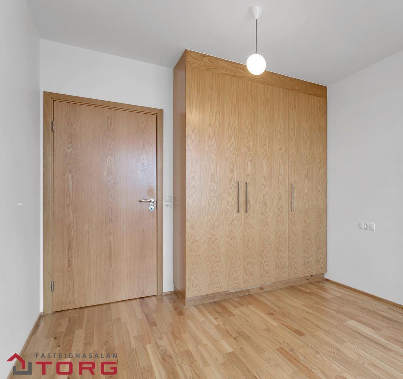 Svefnherbergi. Tvö rúmgóð svefnherbergi með parketi á gólfi og fataskápum.