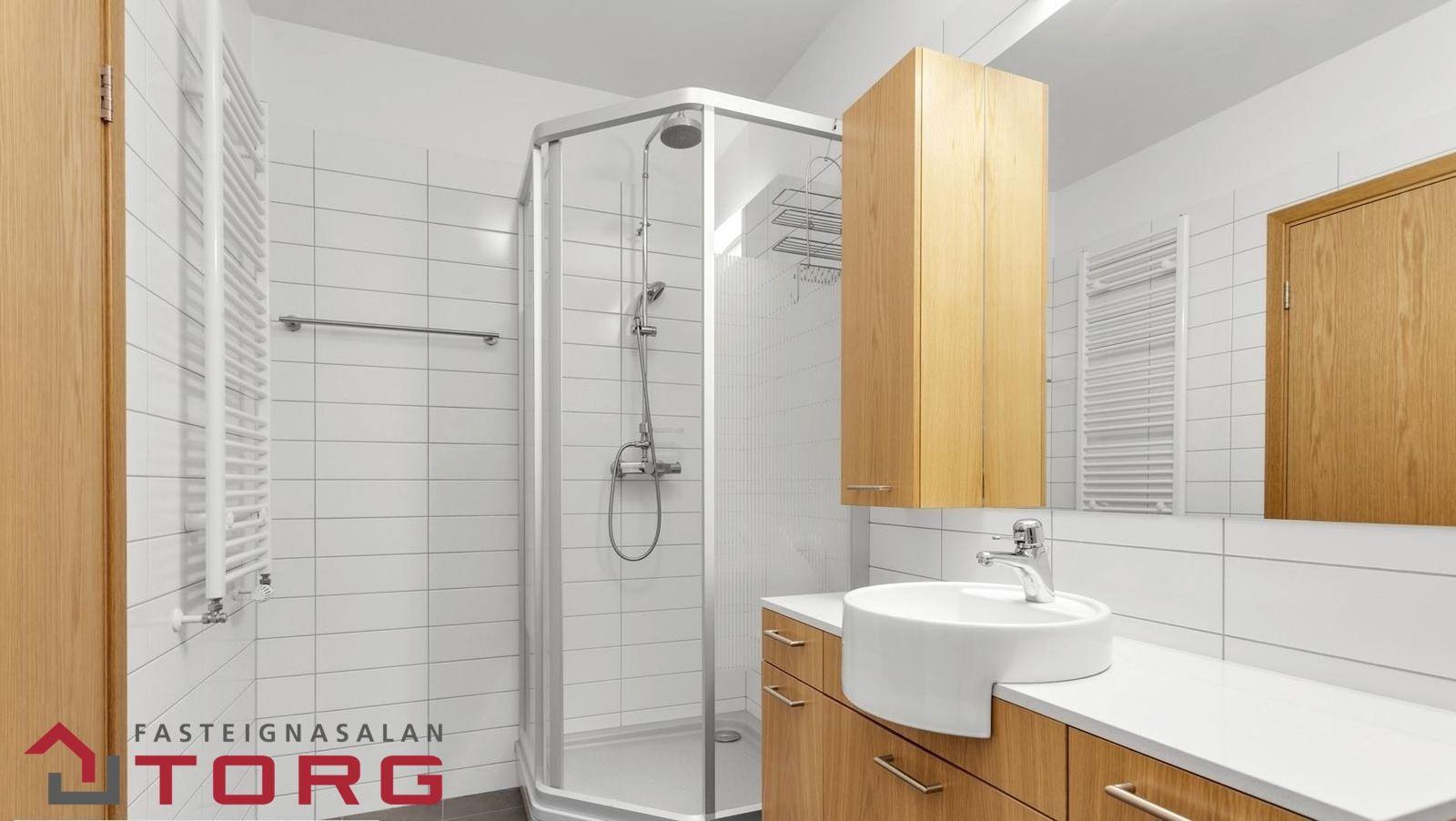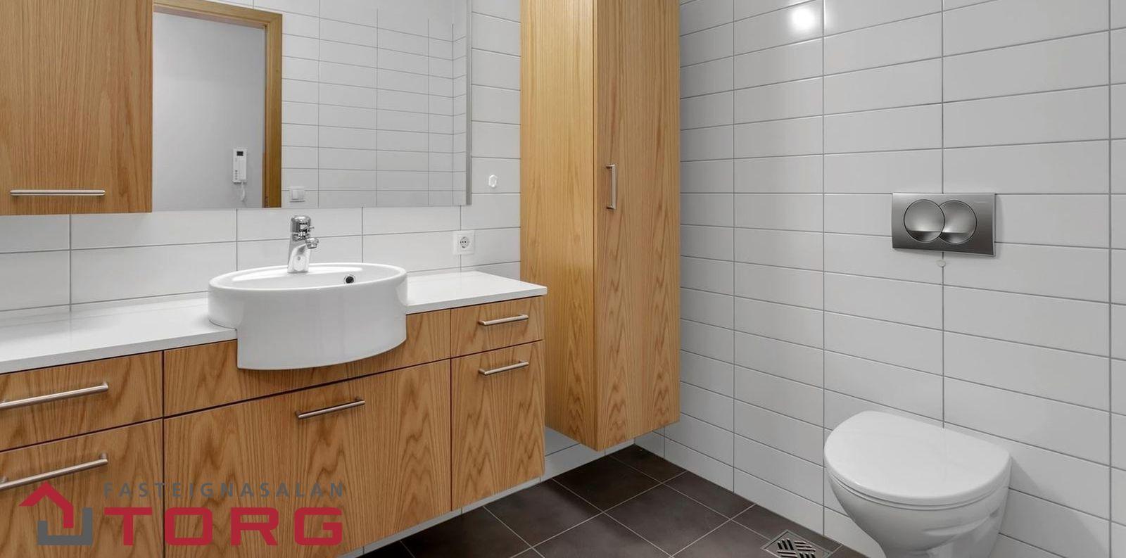 Þvottahús. Sérþvottahús er innan íbúðar. Flísar á gólfi, gott skápapláss og skolvaskur.