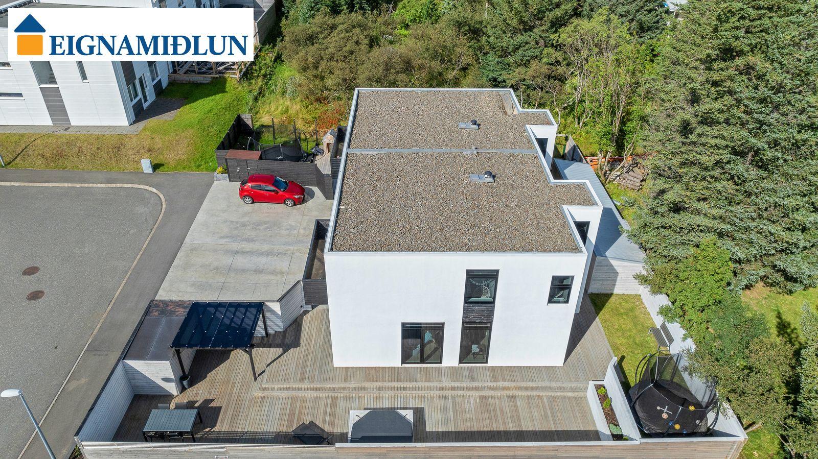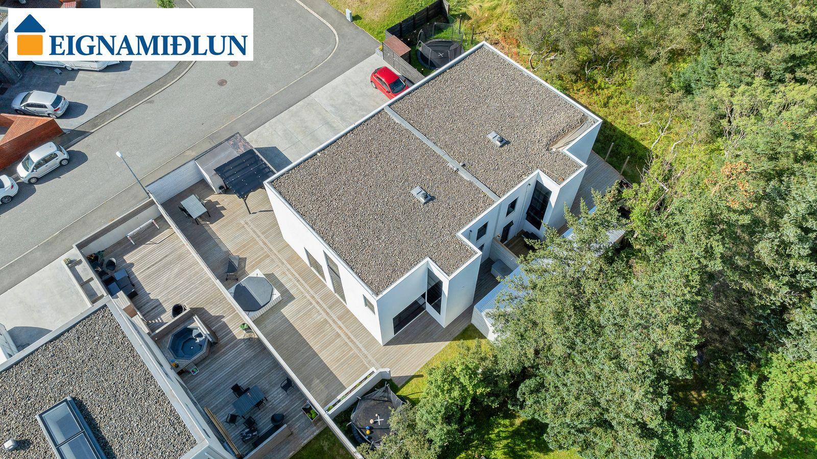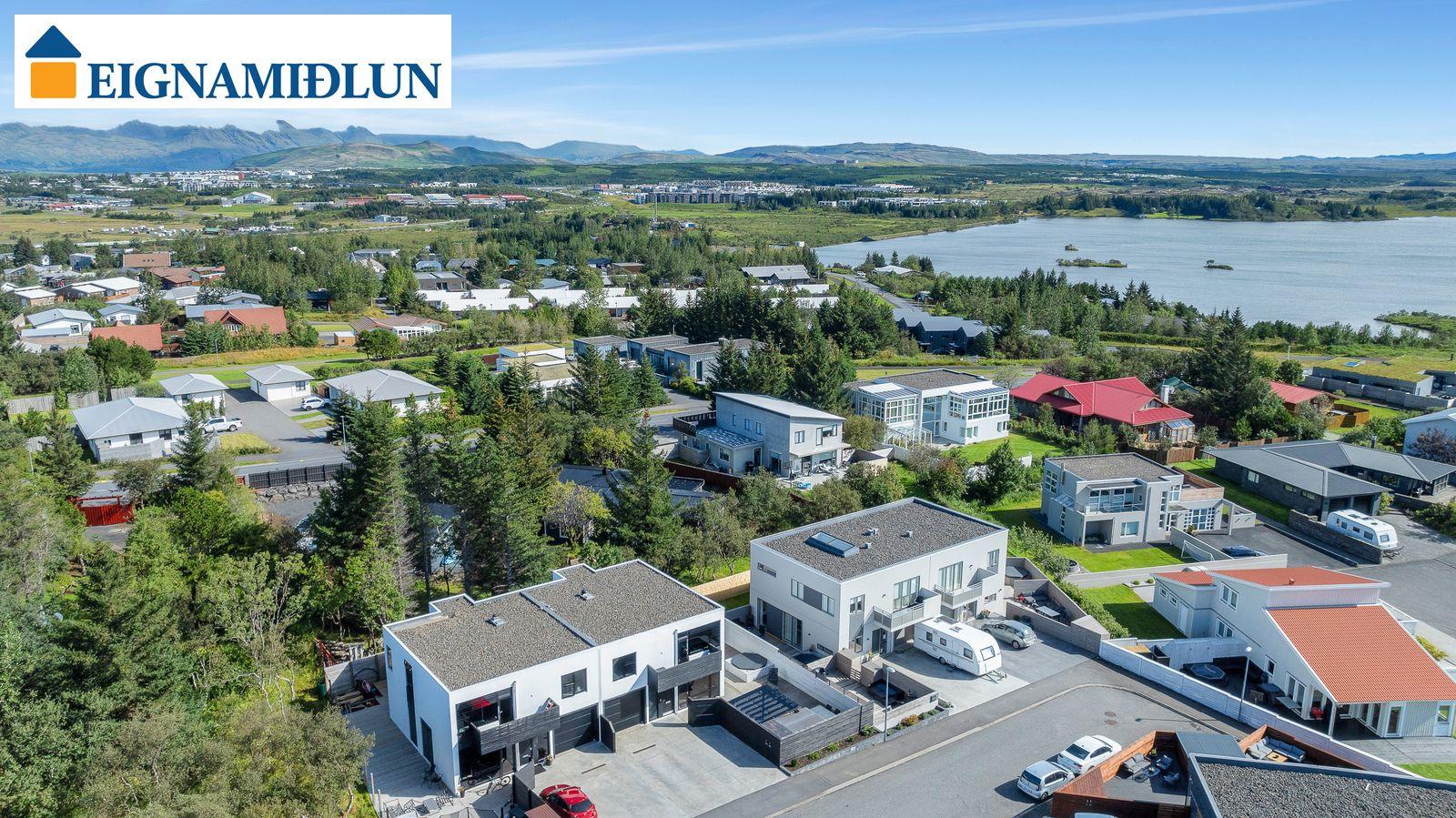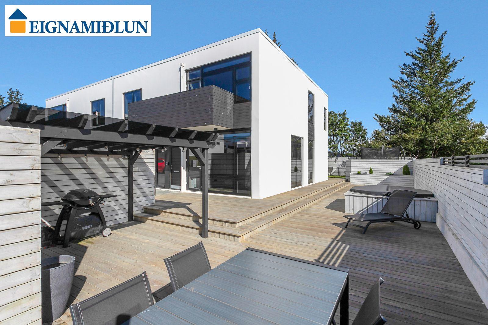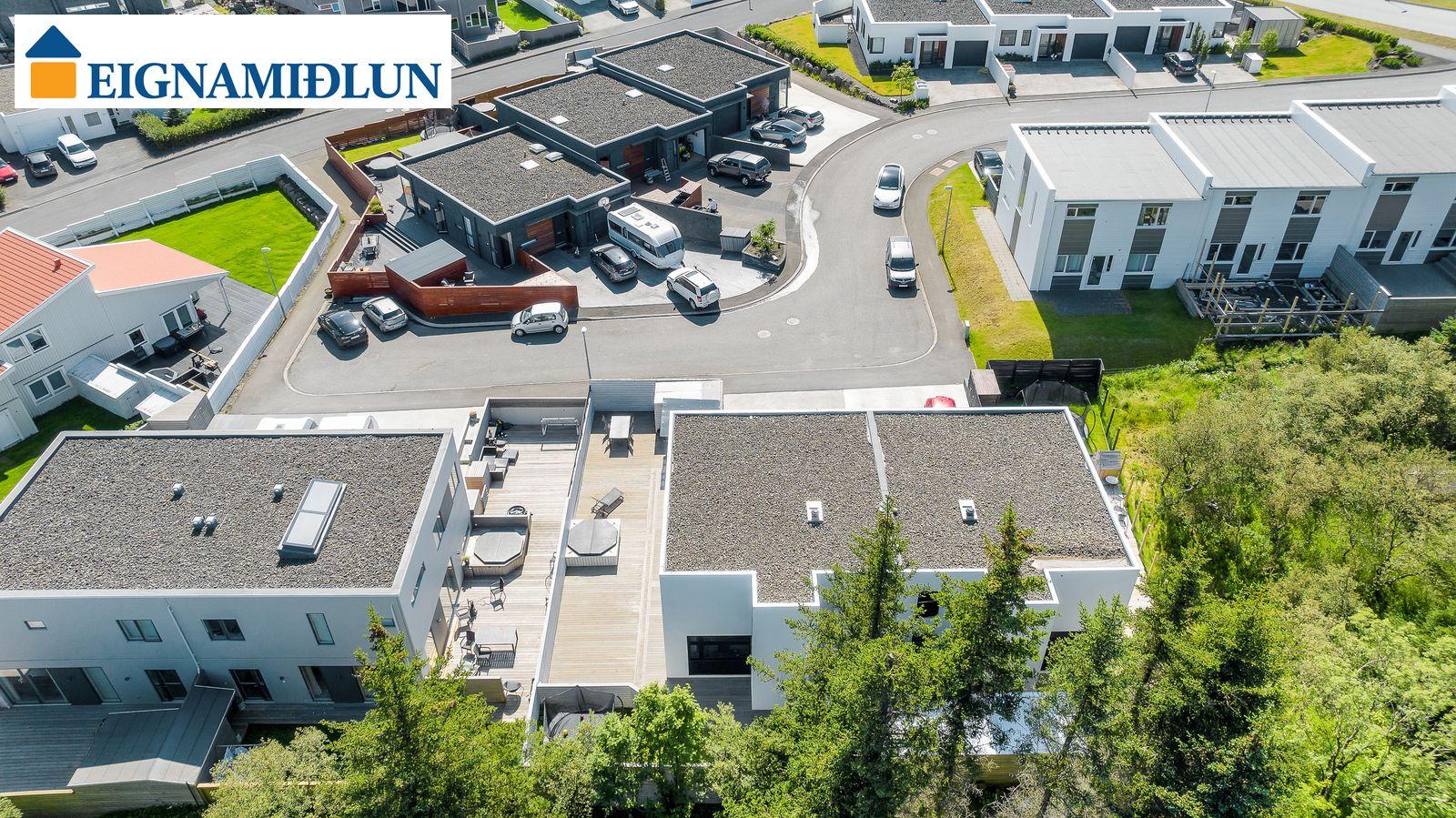 Fallegt og vel skipulagt 181m² parhús á tveimur hæðum. Fimm svefnherbergi, stór timburpallur með heitum potti. Steypt upphitað bílaplan þar sem pláss er fyrir tvo bíla, þriggja fasa rafhleðslustöð. Örstutt er í alla þjónustu, skóla, leikskóla og frábærar gönguleiðir allt í kring. Góð eign á þessum eftirsótta og fallega stað.Samkvæmt skráningu HMS er birt flatarmál eignarinnar 181m², flatarmál íbúðarrýmis er 163,3m² og flatarmál bílskúrs er 17,7m². Fyrirhugað fasteignamat 2026 kr. 148.750.000.