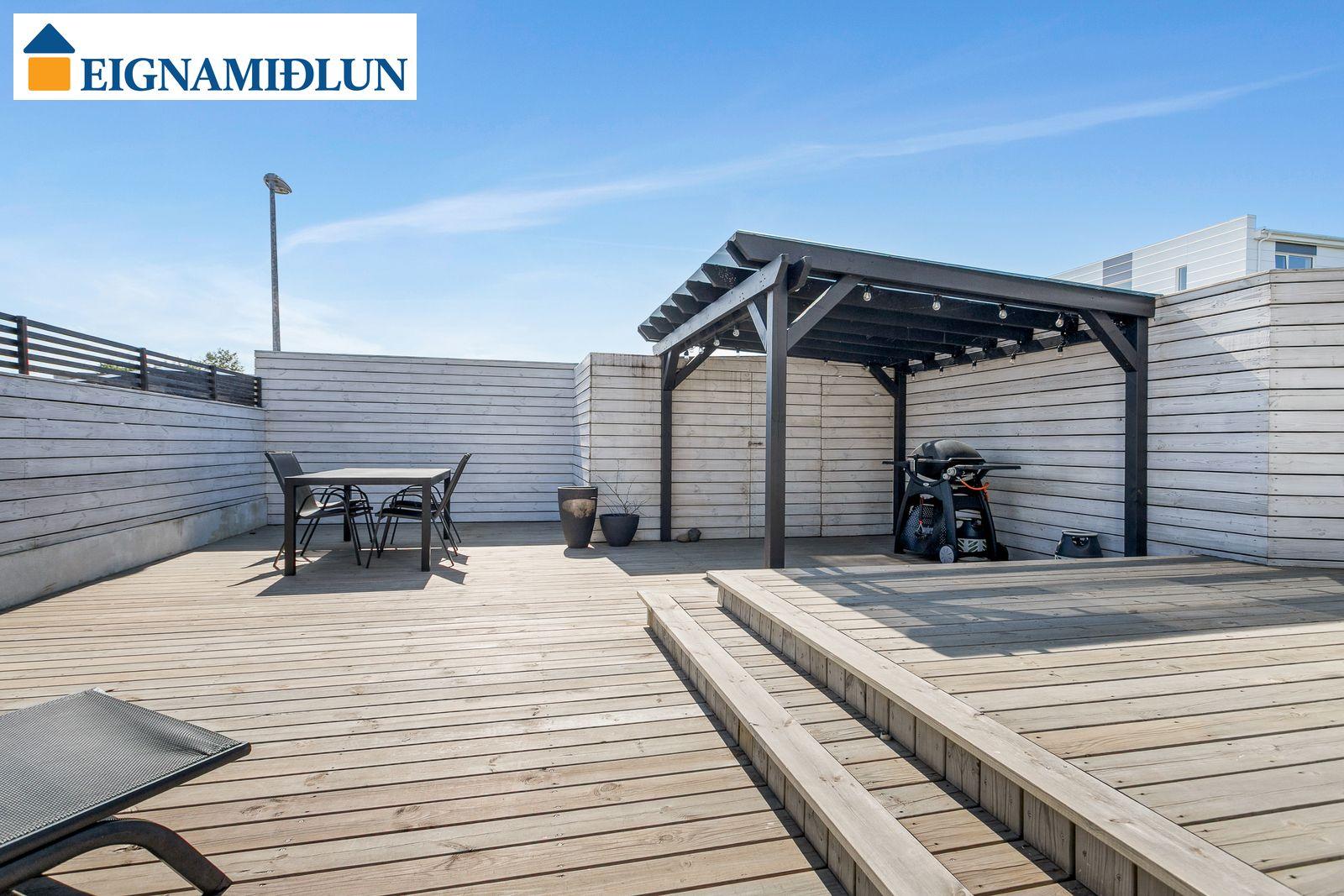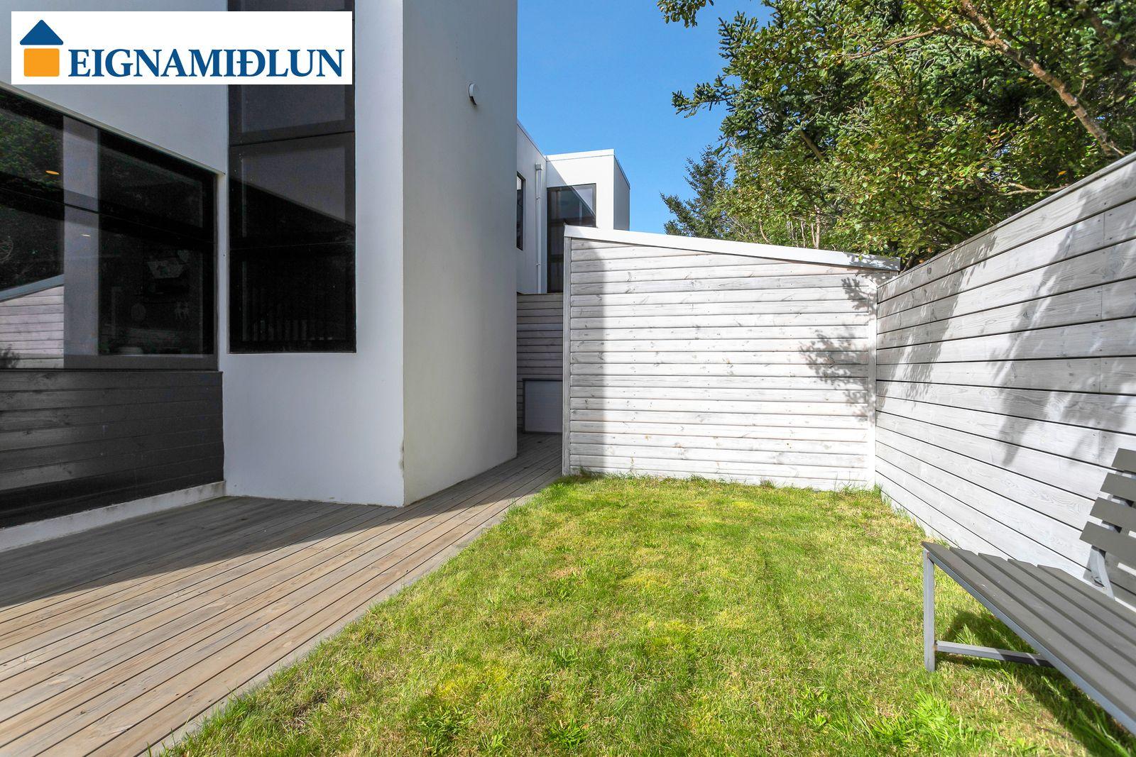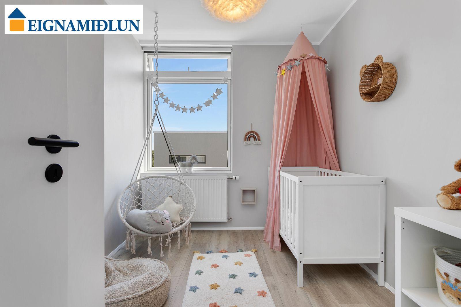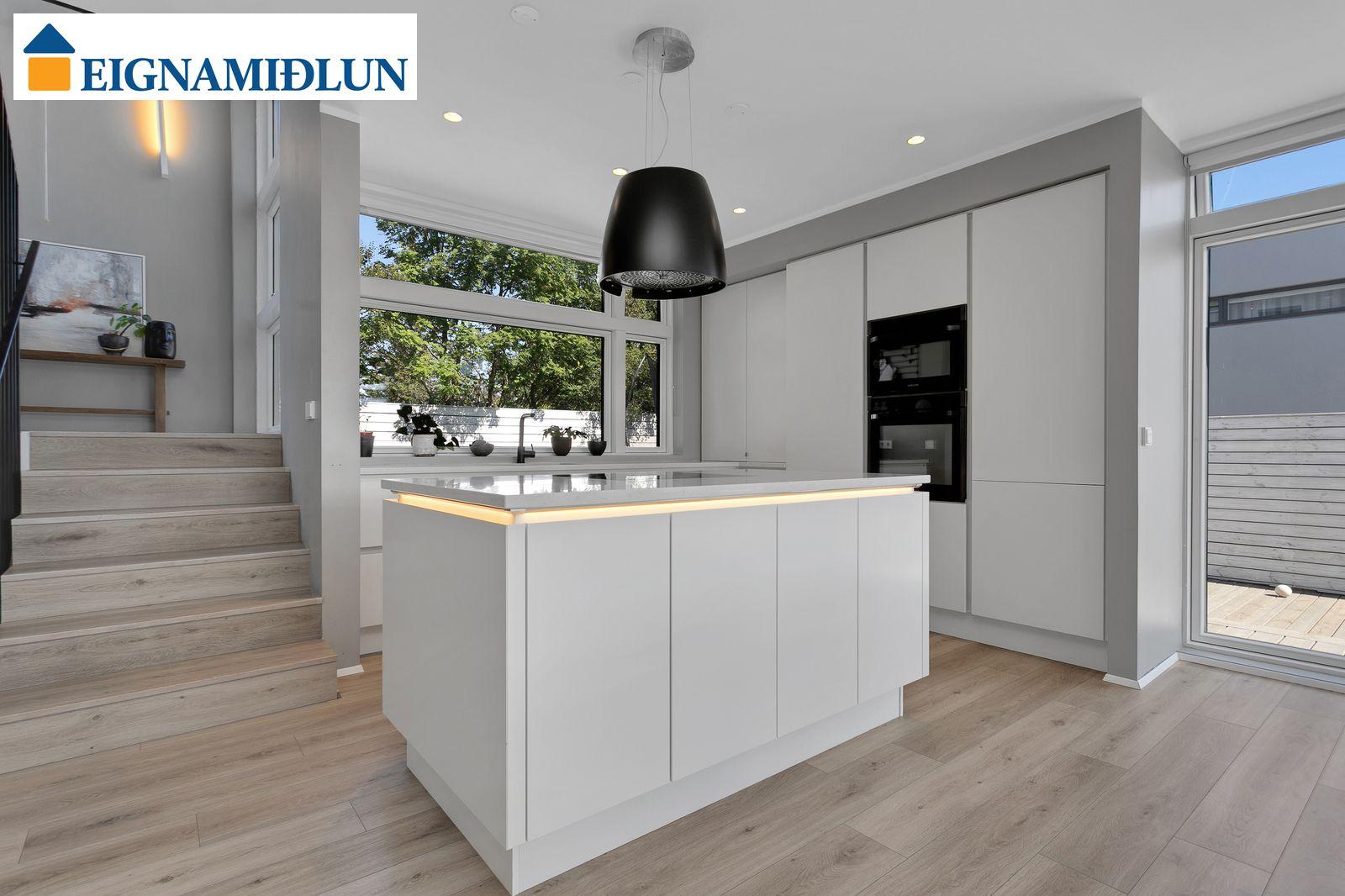 Fallegt og vel skipulagt 181m² parhús á tveimur hæðum. Fimm svefnherbergi, stór timburpallur með heitum potti. Steypt upphitað bílaplan þar sem pláss er fyrir tvo bíla, þriggja fasa rafhleðslustöð. Örstutt er í alla þjónustu, skóla, leikskóla og frábærar gönguleiðir allt í kring. Góð eign á þessum eftirsótta og fallega stað.Samkvæmt skráningu HMS er birt flatarmál eignarinnar 181m², flatarmál íbúðarrýmis er 163,3m² og flatarmál bílskúrs er 17,7m². Fyrirhugað fasteignamat 2026 kr. 148.750.000.