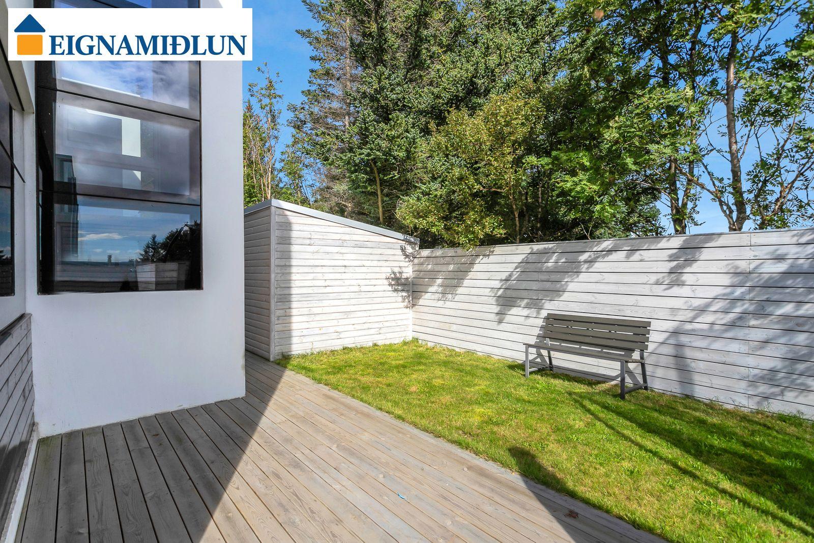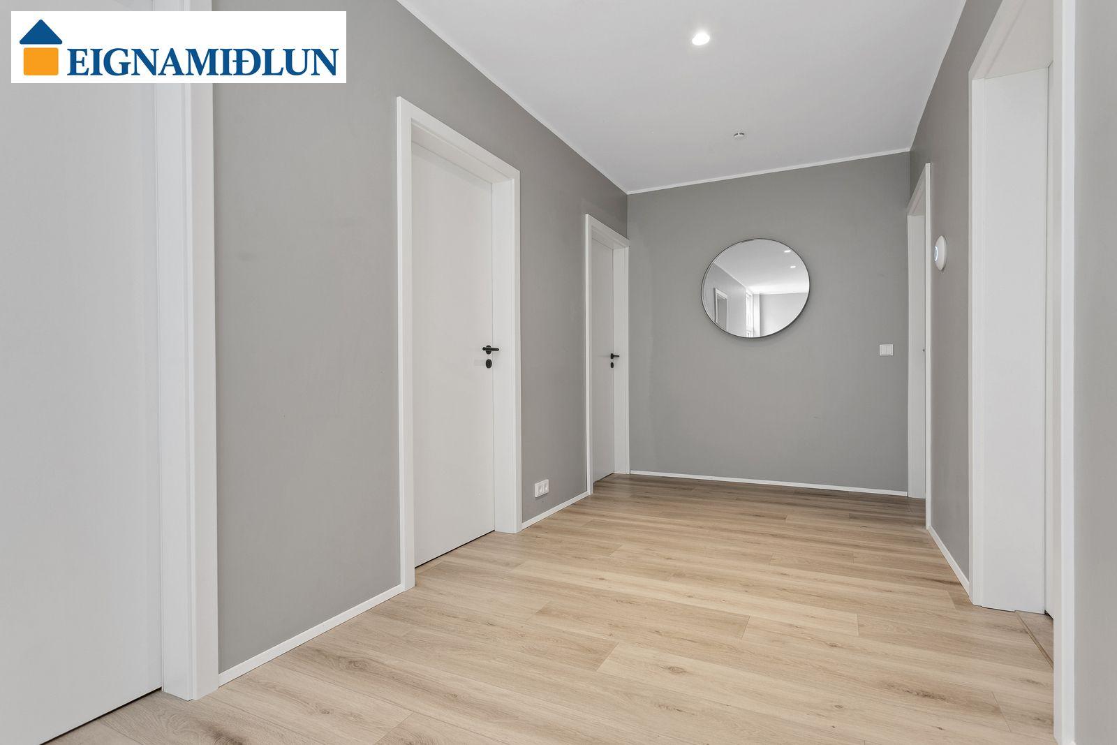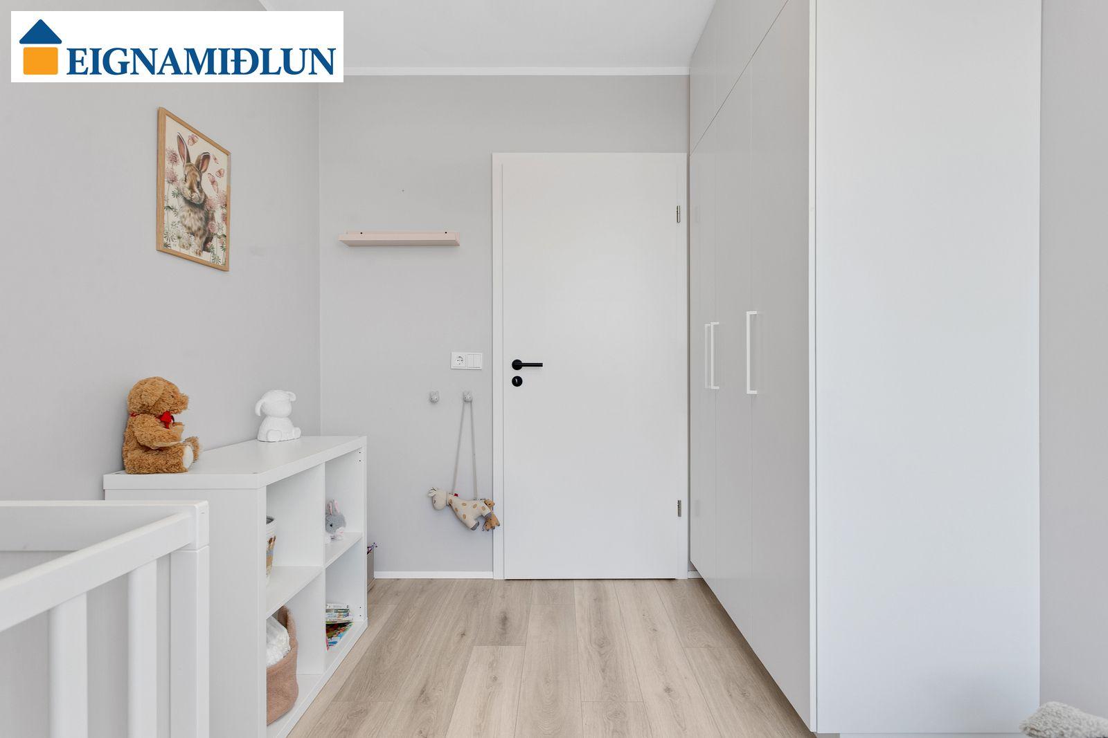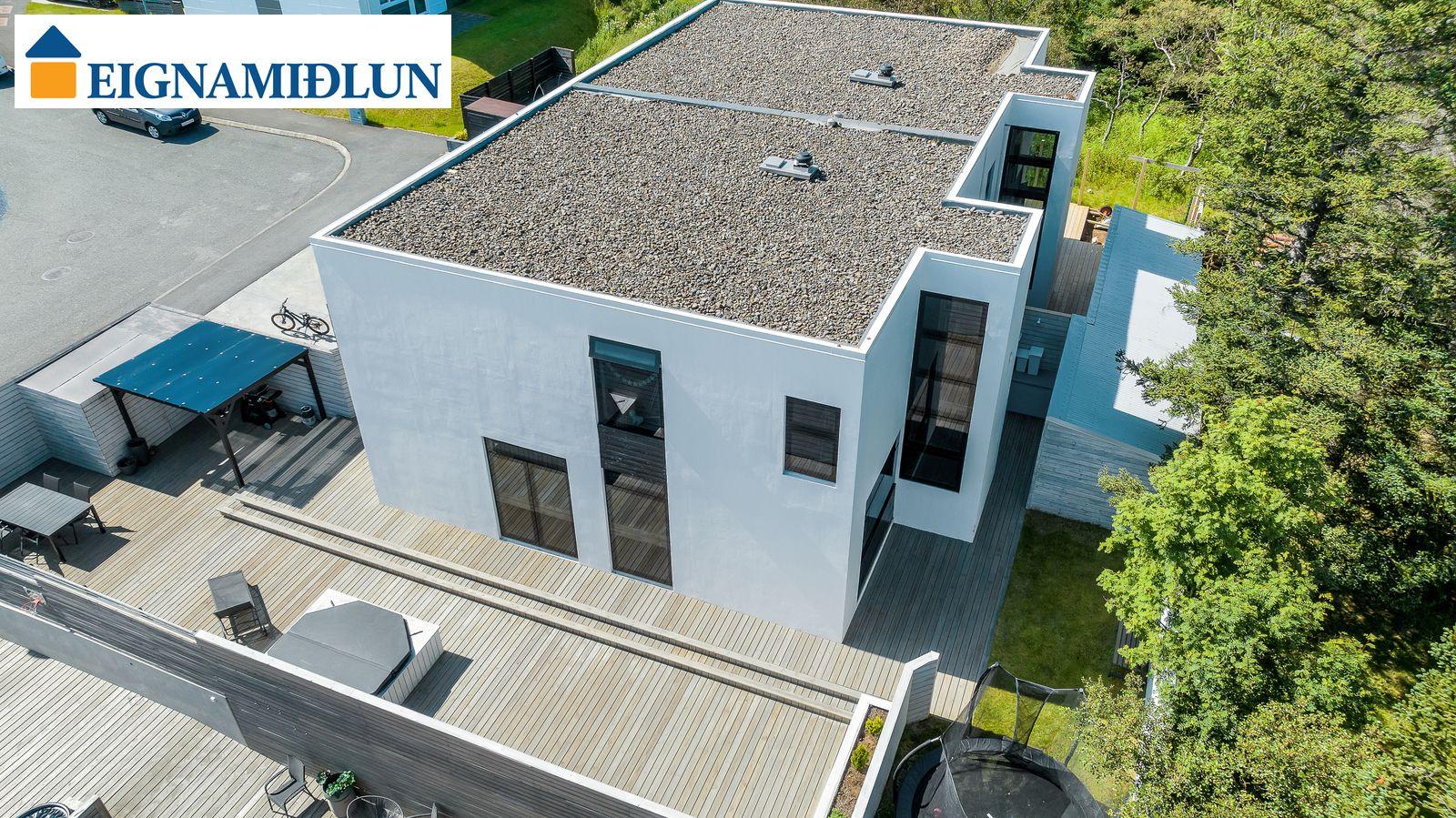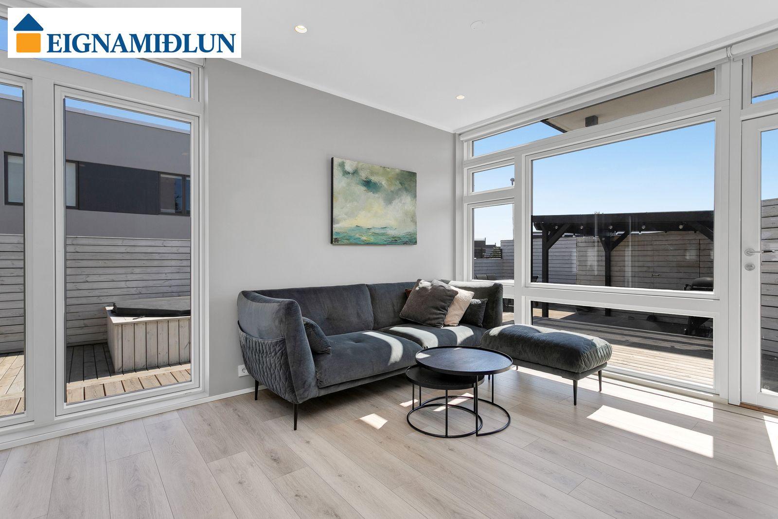 Fallegt og vel skipulagt 181m² parhús á tveimur hæðum. Fimm svefnherbergi, stór timburpallur með heitum potti. Steypt upphitað bílaplan þar sem pláss er fyrir tvo bíla, þriggja fasa rafhleðslustöð. Örstutt er í alla þjónustu, skóla, leikskóla og frábærar gönguleiðir allt í kring. Góð eign á þessum eftirsótta og fallega stað.Samkvæmt skráningu HMS er birt flatarmál eignarinnar 181m², flatarmál íbúðarrýmis er 163,3m² og flatarmál bílskúrs er 17,7m². Fyrirhugað fasteignamat 2026 kr. 148.750.000.