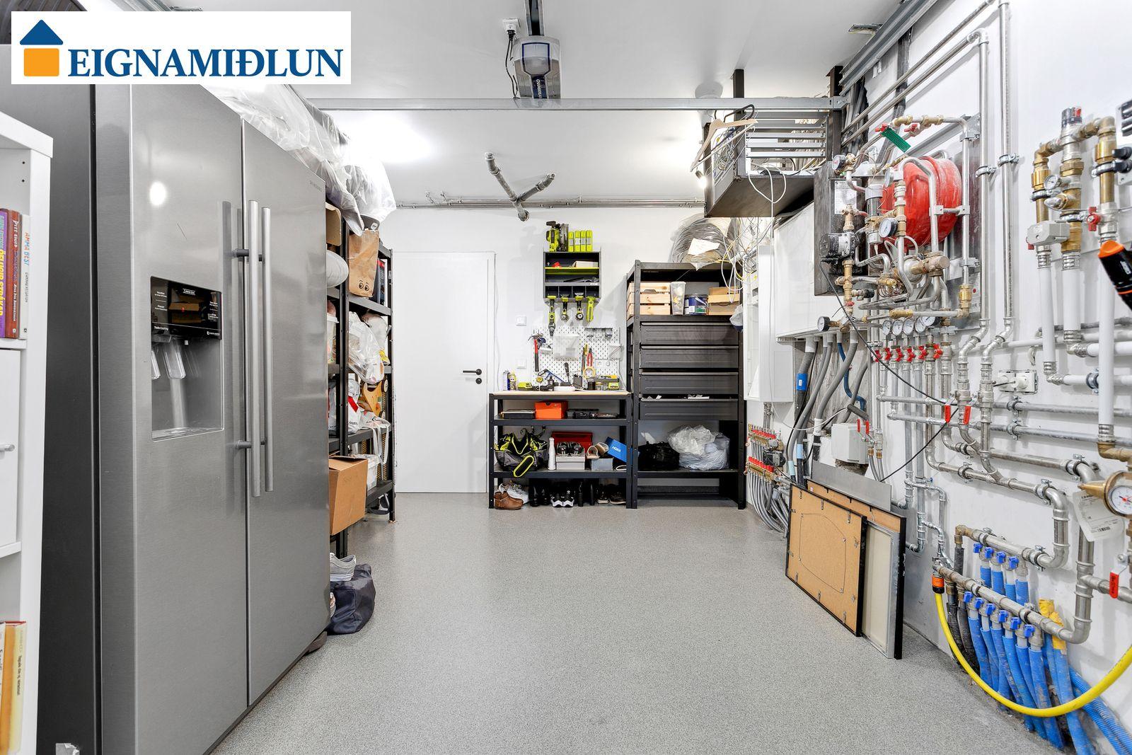 Geymsla er innaf bílskúr við hlið þvottahúss.