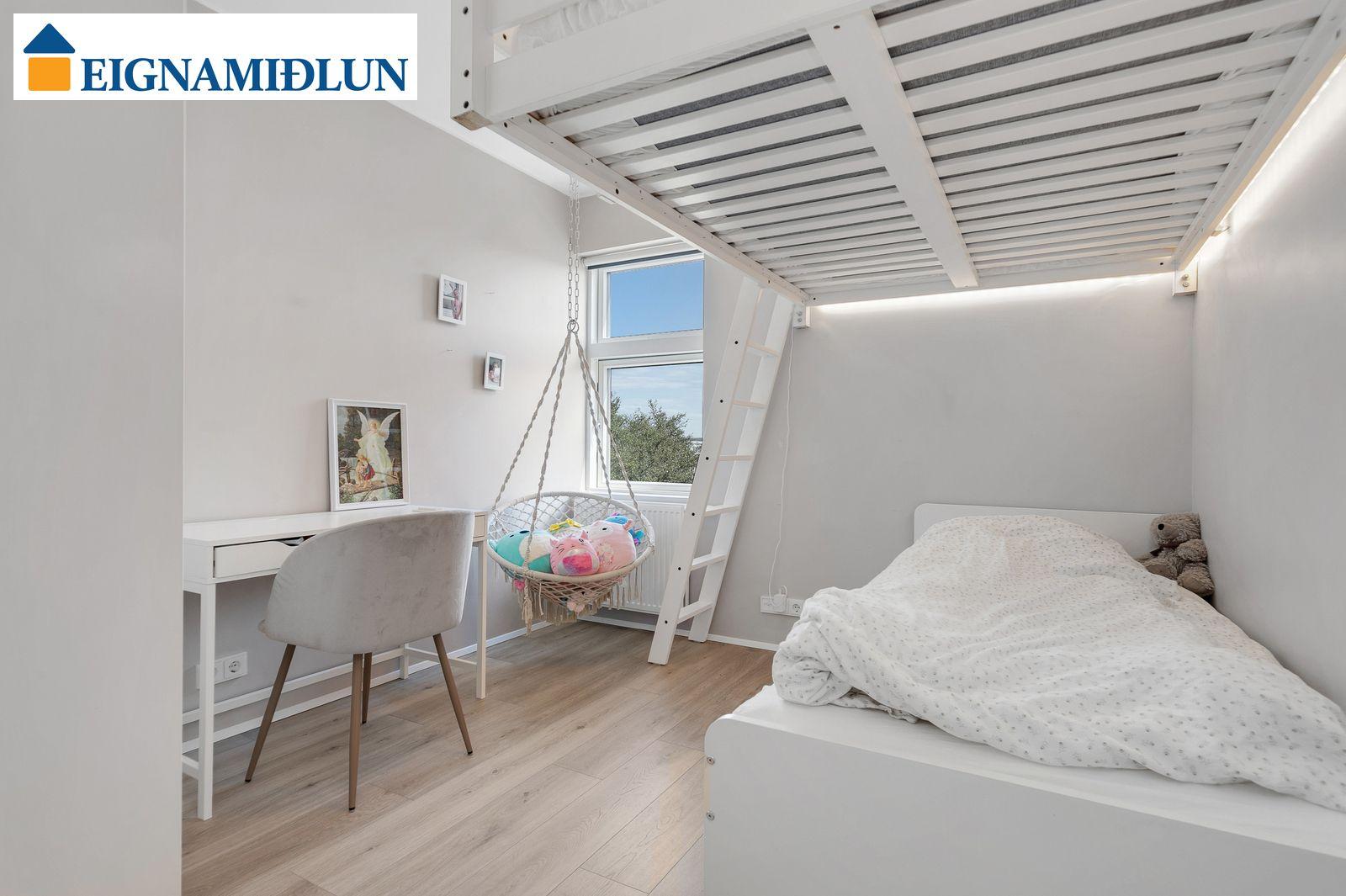 Efri hæð. Gangur og öll herbergi eru með parketi á gólfum.