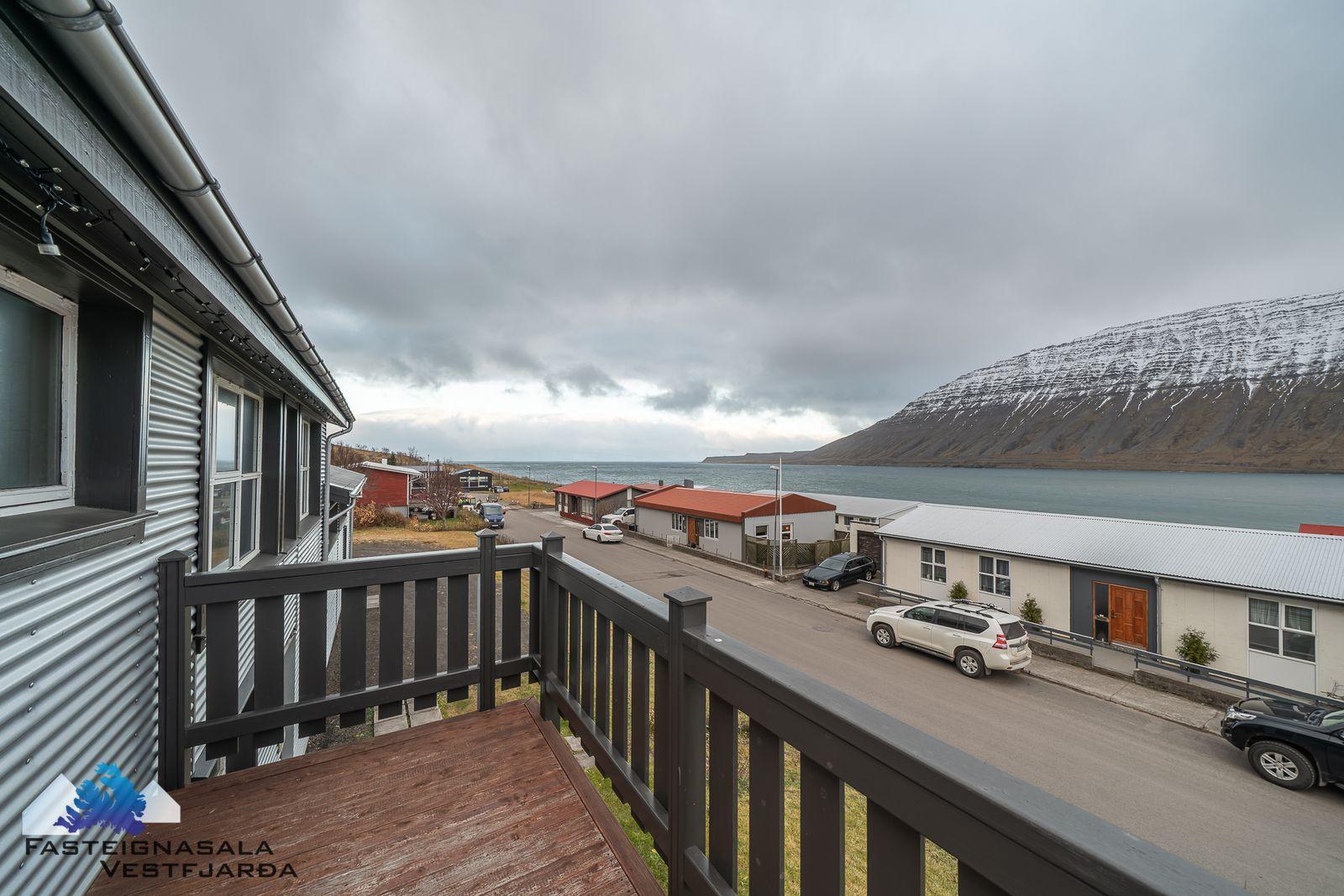 Stór 1500 m² lóð, einstaklega gott útsýni yfir fjörðinn og út á djúp.