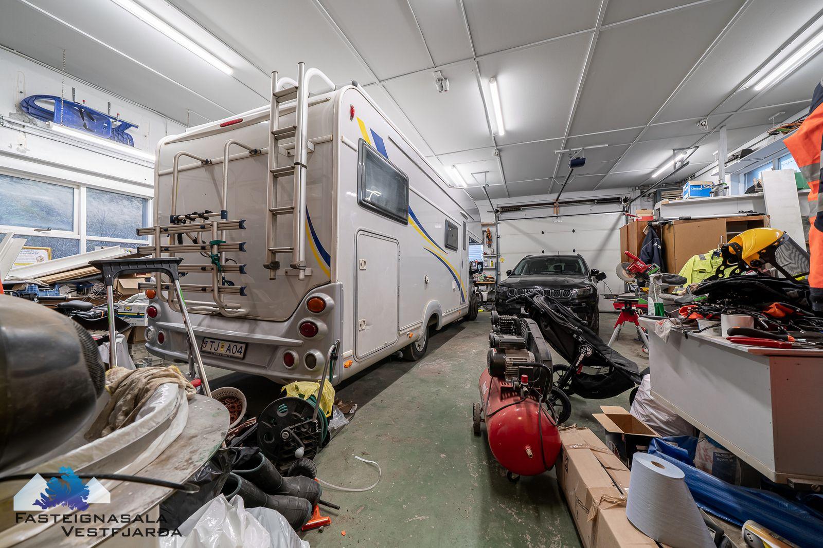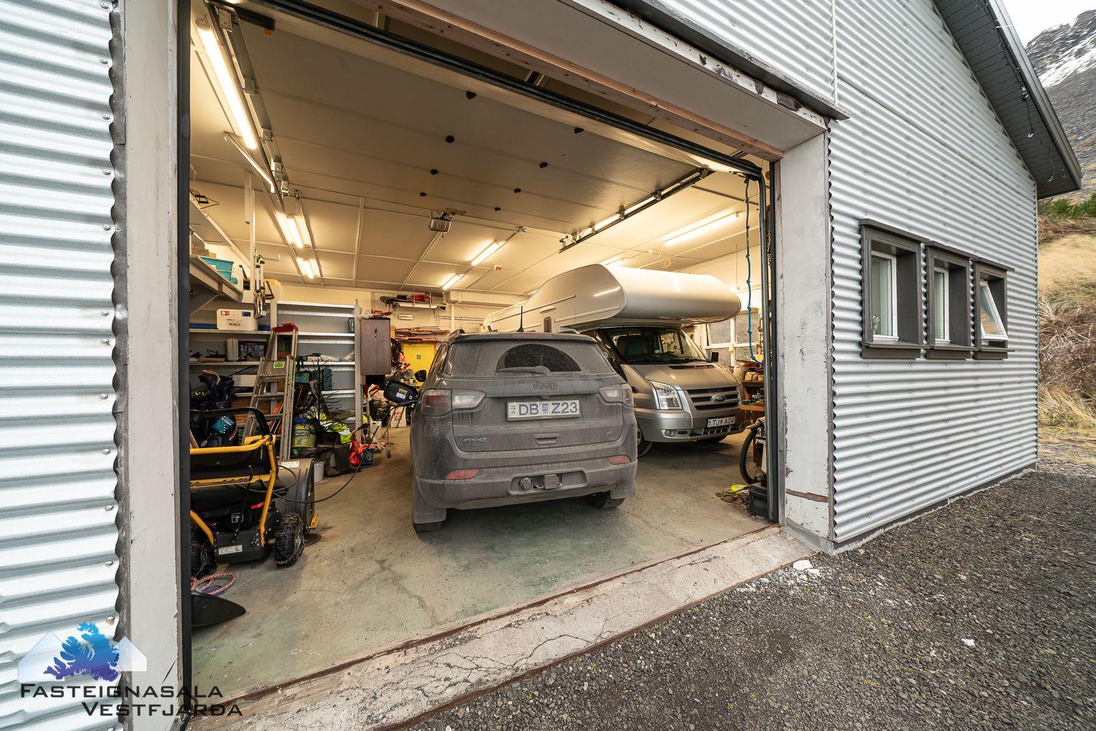 Bílskúrinn er tilvalinn til dæmis fyrir iðnaðarmenn eða handverksfólk sem vill hafa vinnuaðstöðu heima við.