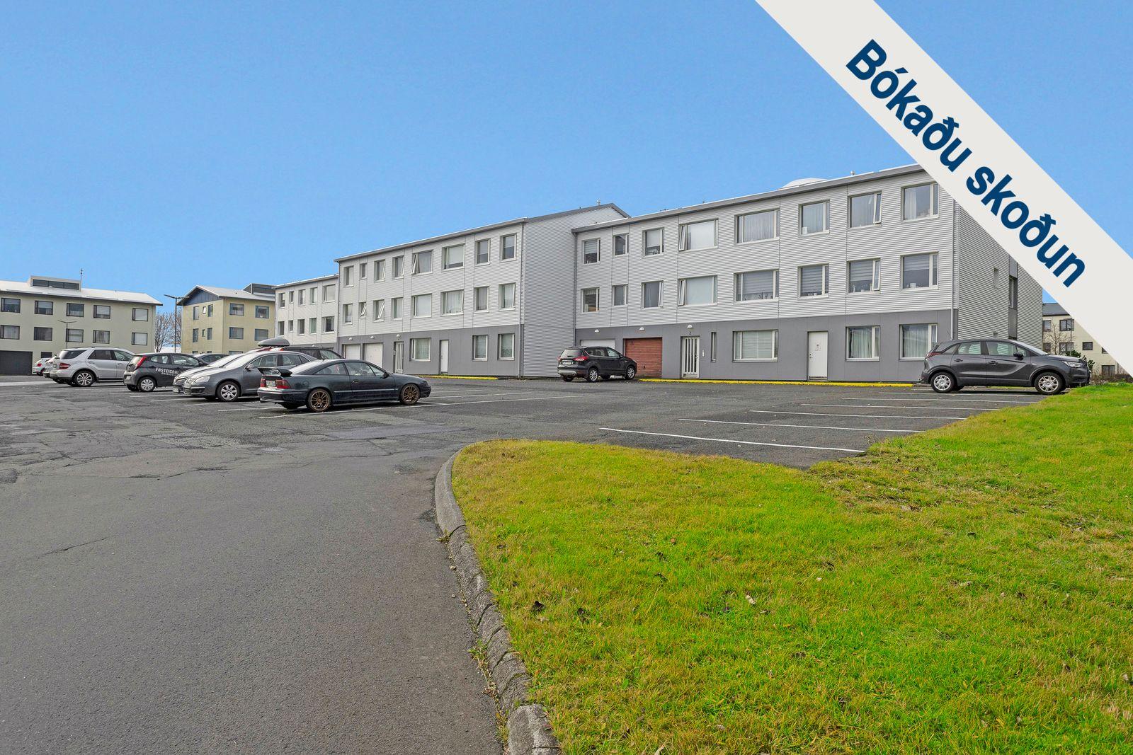 Vel skipulögð 4ra herbergja íbúð á 3. hæð í góðu húsi með bílskúr, húsið er klætt að utan Komið er inn í flísalagða forstofu með fataskápum. Miðsvæðis er parketlagt hol. Þrjú svefnherbergi eru í íbúðinni, tvö barnaherbergi og stórt hjónaherbergi. Baðherbergið er flísalagt í hólf og gólf. Innrétting, baðkar/sturta og opnanlegur gluggi. Eldhús með vandaðri eldri innréttingu með góðu skápaplássi, borðkrókur er í eldhúsi. Inn af eldhúsinu er þvottahús/geymsla. Stofan er mjög rúmgóð og er hún parketlögð. gegnt er út á stórar s/v svalir úr stofu. Sér geymsla er á jarðhæðinni sem og hjólageymsla. Íbúðinni fylgir góður bílskúr og er hann með hita, rafmagni og vatni ásamt nýrri hurð og mótor. Sameigninlega þvottaahús.