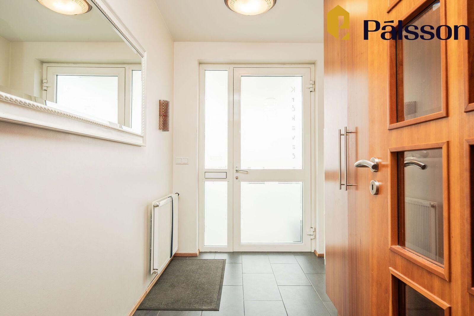 Anddyri er með góðum fataskápum. Flísar á gófli.