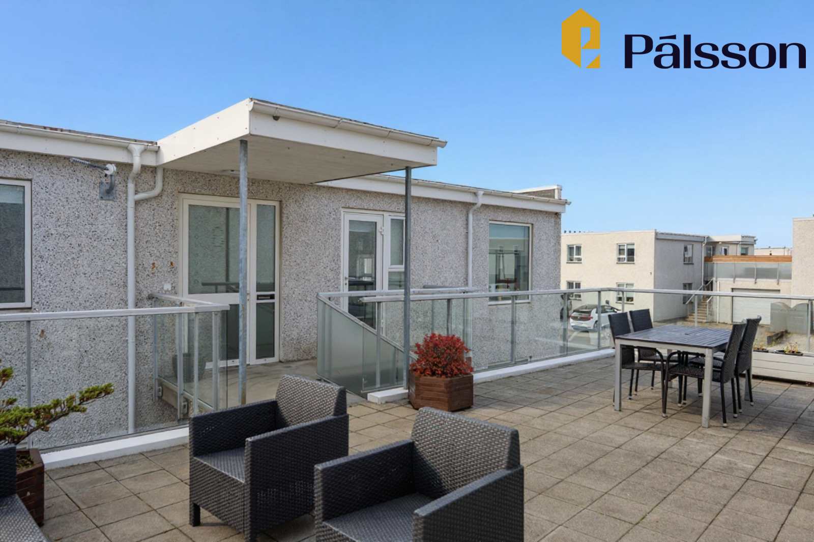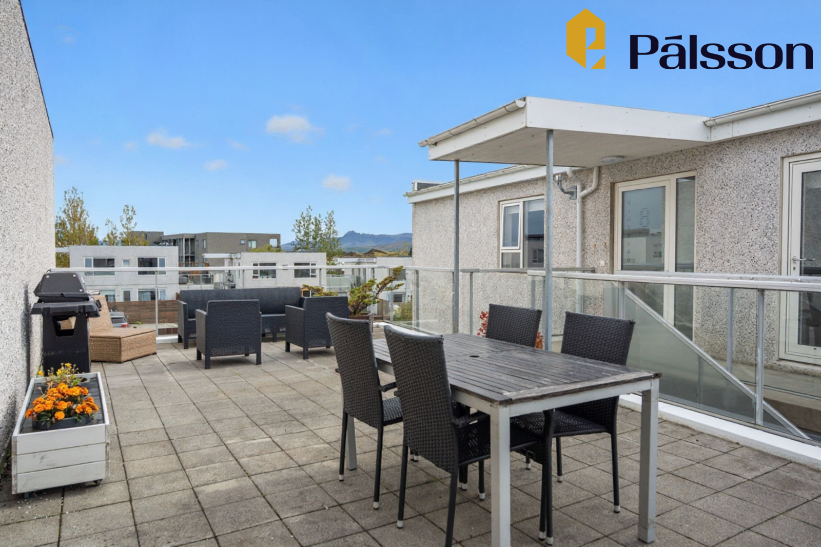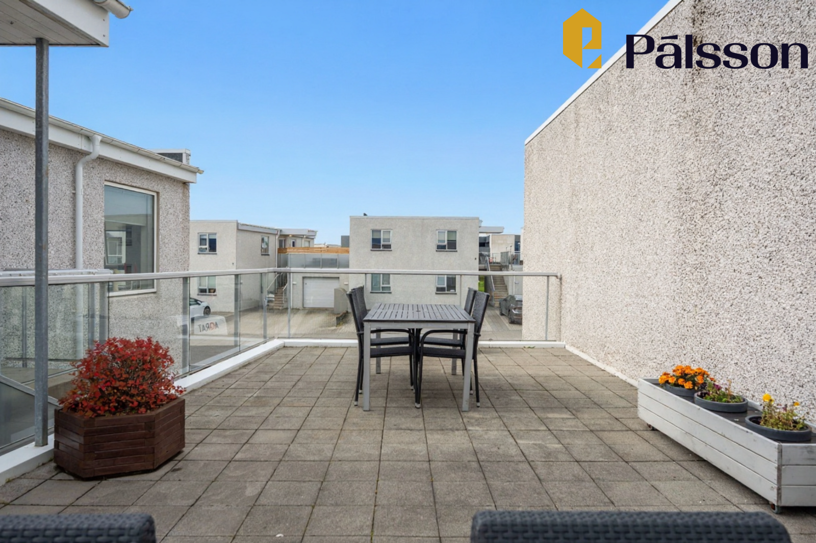 Þaksvalir sem tilheyra eigninni eru ofan á bílskúr.