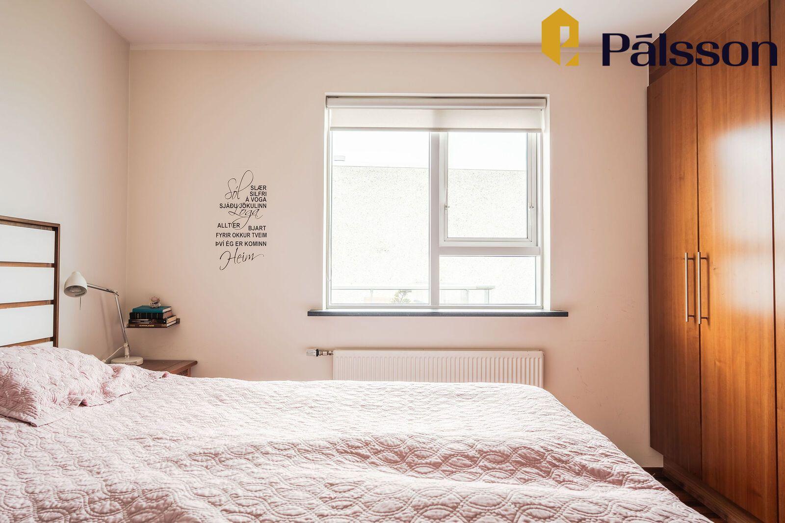 Svefnherbergi I er rúmgott með góðum fataskápum. Parket á gólfi.