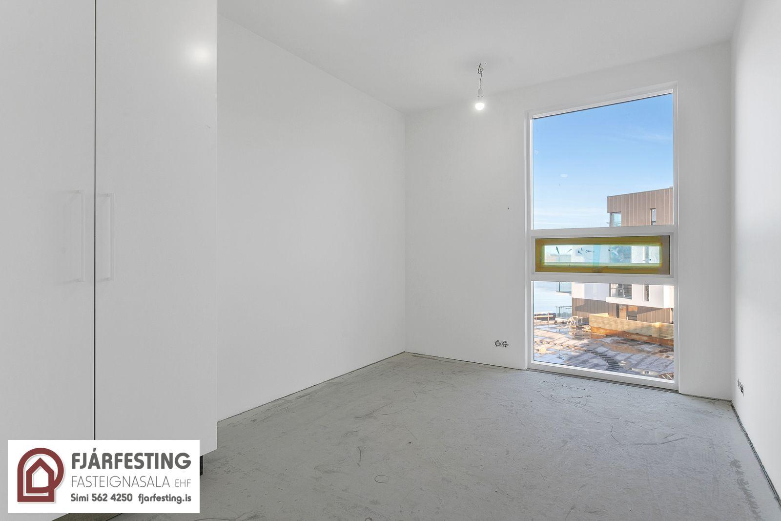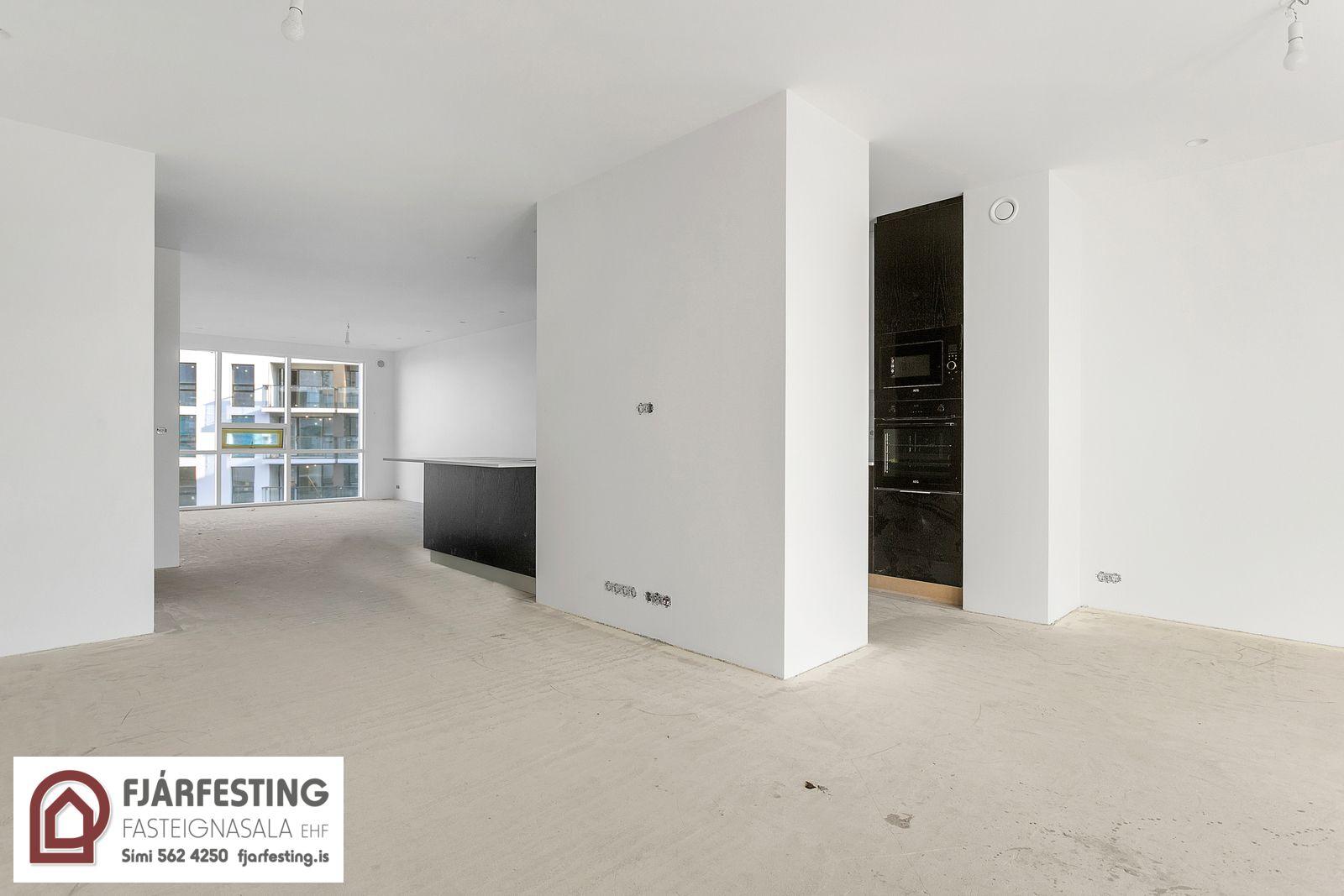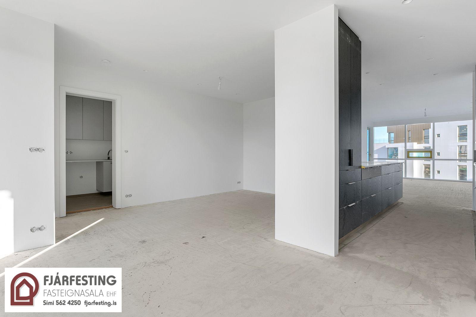 FJÁRFESTING FASTEIGNASALA, SÍMI 562-4250, ER MEÐ TIL SÖLU GLÆSILEGA 3JA HERB. ÍBÚÐ Á 4. HÆÐ Í NÝJU LYFTUHÚSI VIÐ NAUSTAVÖR 64 Í KÓPAVOGI. Glæsileg og vel skipulögð 3ja herbergja íbúð á 4. hæð, merkt 0405 í fallegu nýju álklæddu lyftuhúsi. Íbúðin sjálf er 134,8 fm. Sérgeymsla í kjallara er 16,2. fm. Samtals er eignin því skráð 151 fm. Sjávarútsýni. Suðursvalir. Hátt til lofts í stofu Stæði í lokaðri bílageymslu fylgir. Íbúðin er öll hin glæsilegasta með fallegum innréttingum og fataskápum frá Brúnás. Blöndunartæki frá Tengi og AEG eldhústæki. Hiti er í gólfum. Naustavör 60-66 er nýtt 4ra hæða fjölbýlishús sem er í nýju bryggjuhverfi við Kársnes í Kópavogi.
