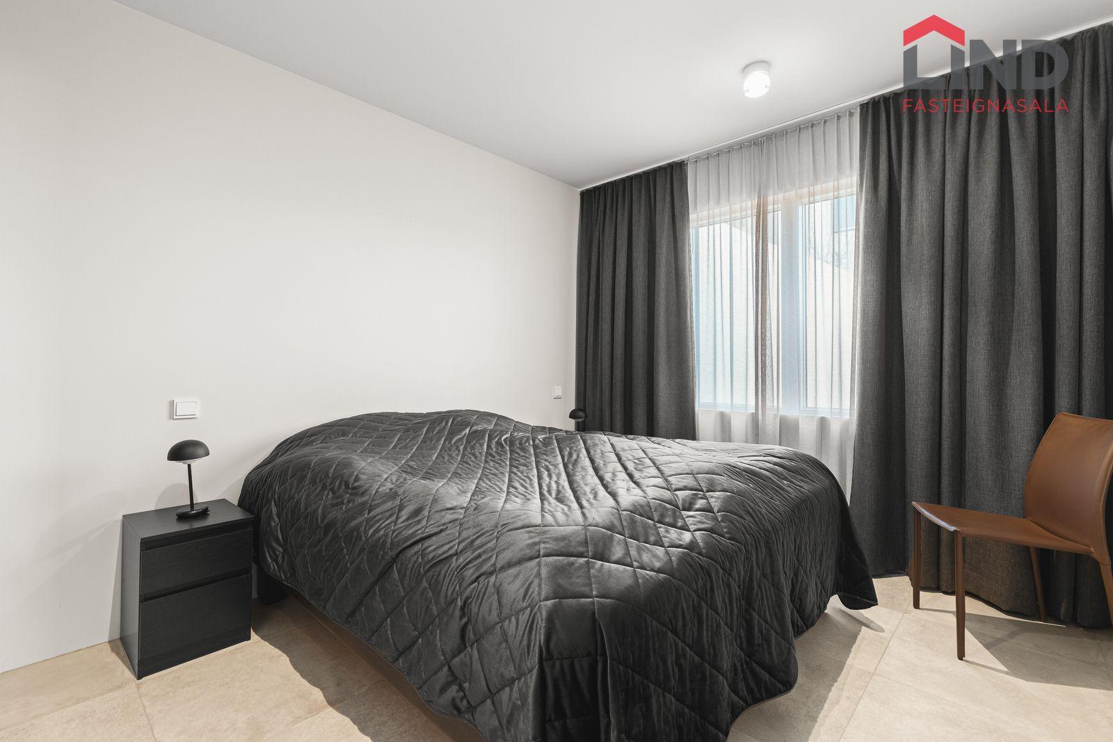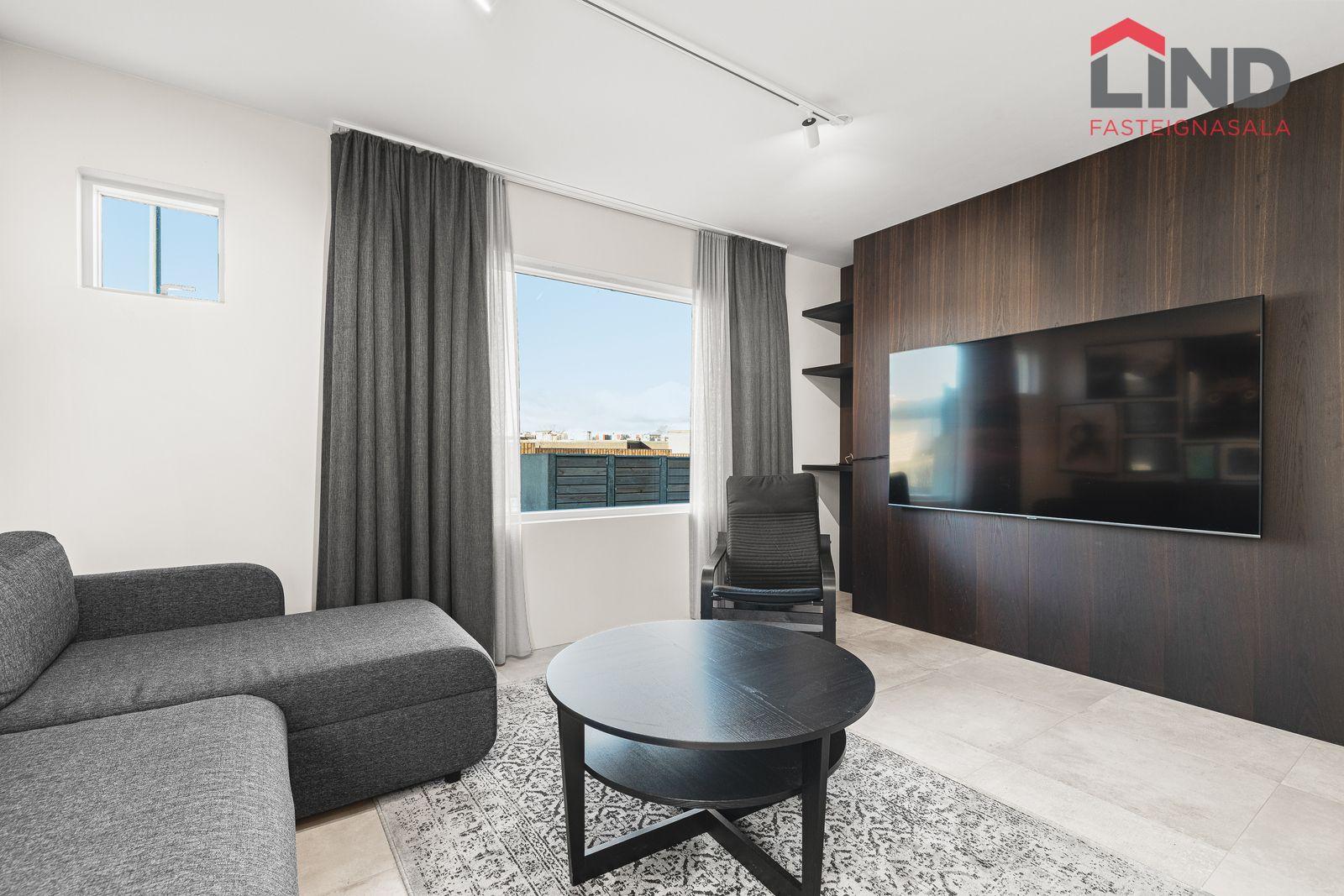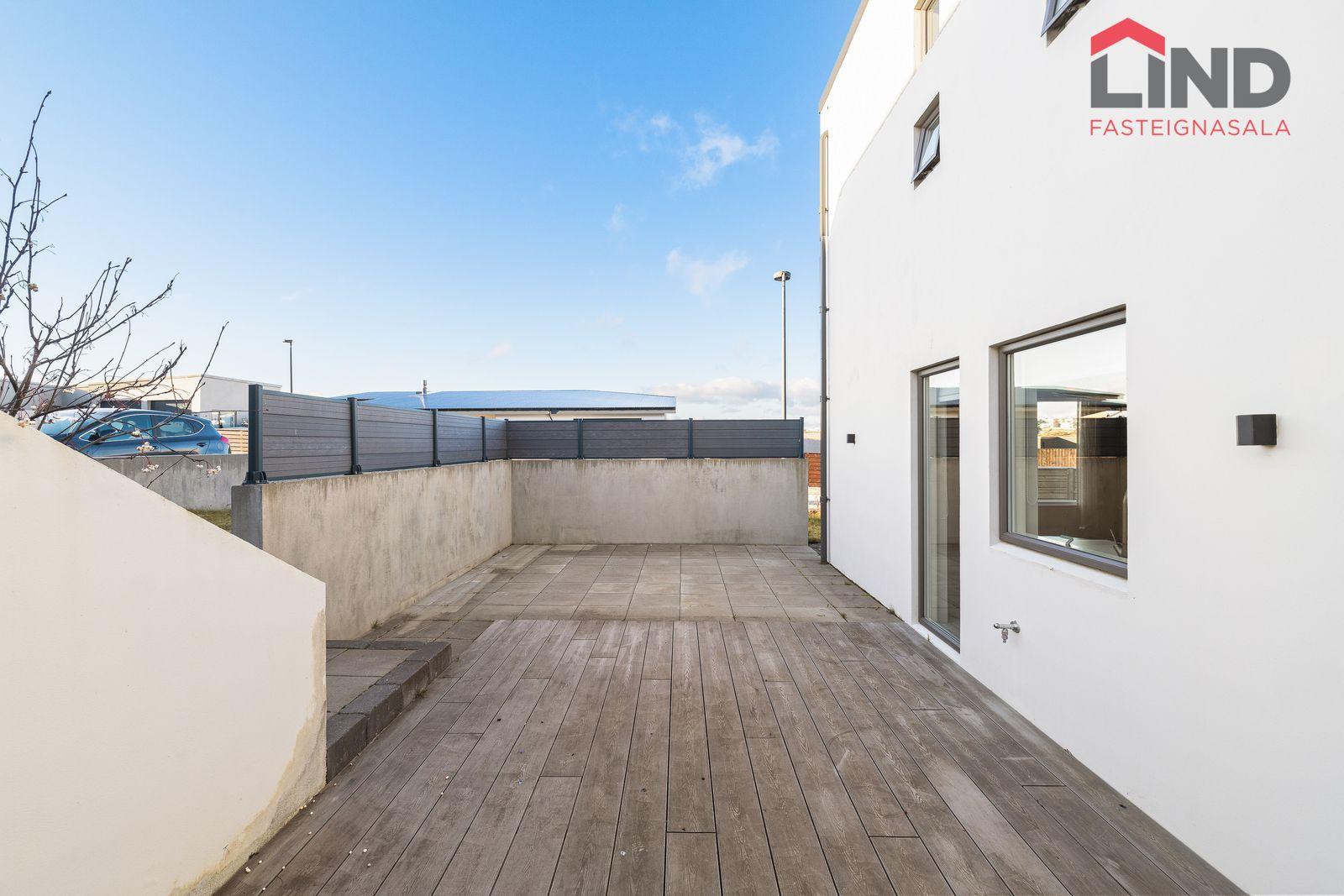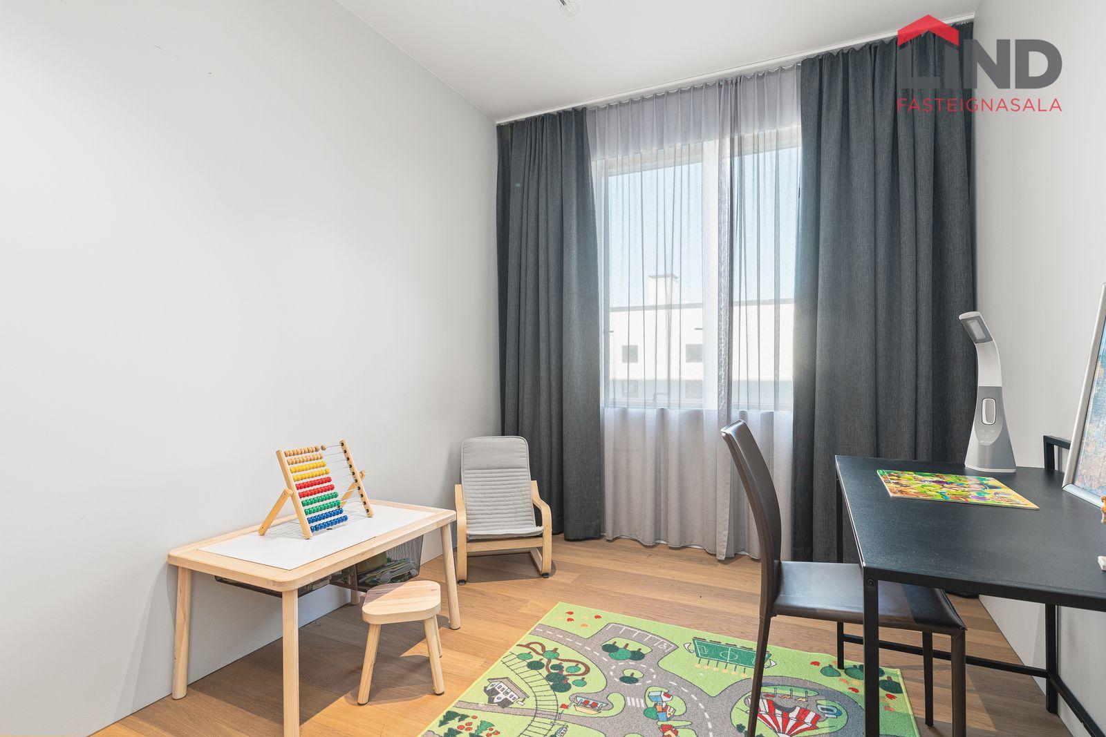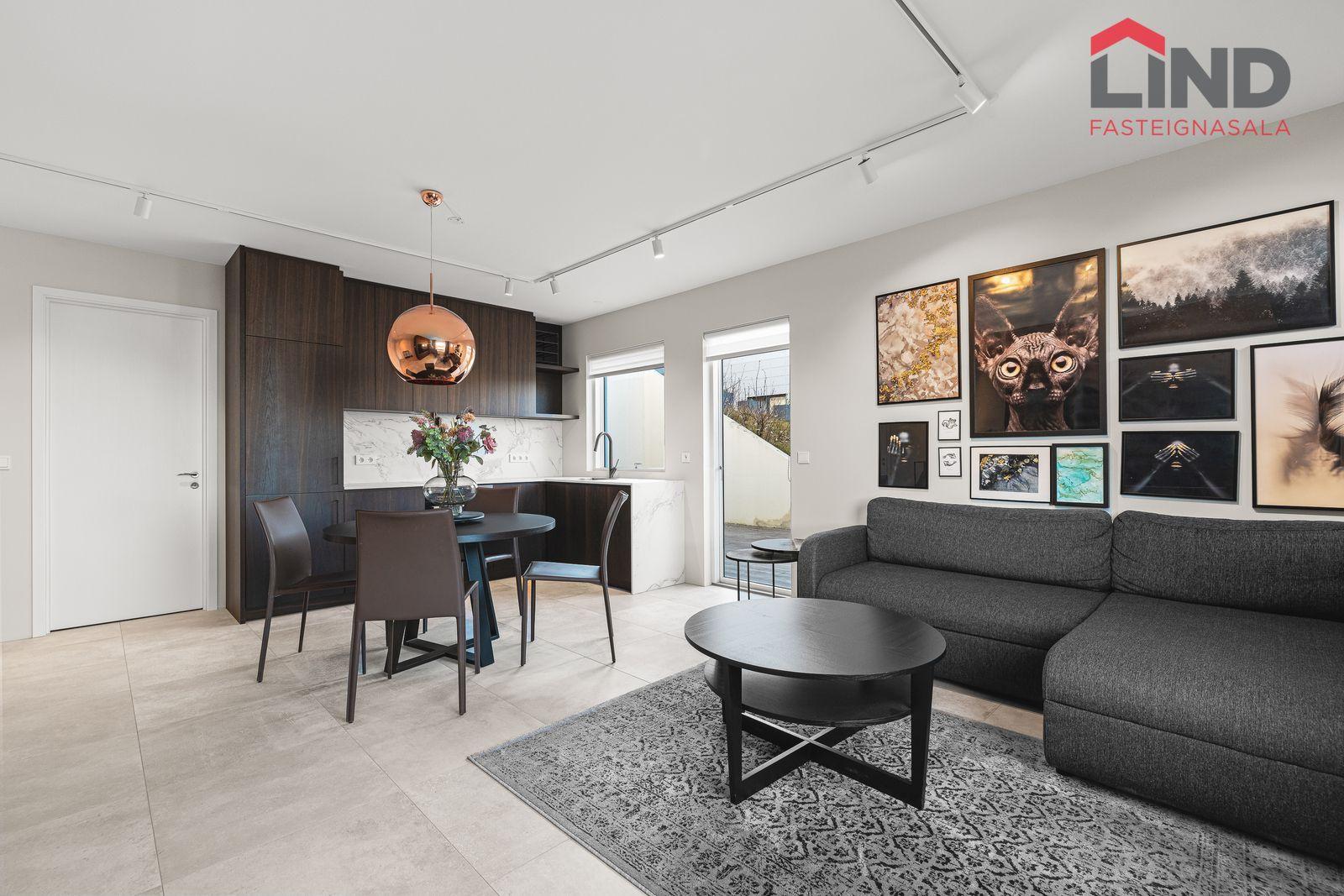 Aðalhæðin (efri hæð): Er vel skipulögð með stórum alrýmum og útgengi á rúmgóðar svalir með afar fallegu útsýni og stóra verönd til suðvesturs. Niðurtekin loft að hluta og innfelld lýsing í loftum. Fallegt útsýni er úr alrými efri hæðar. Glæsileg eldhúsinnrétting úr reyktri eik og steinn á borðum og eldhúseyju. Hjónasvíta með stóru fataherbergi og baðherbergi, 2 svefnherbergi, sjónvarpsstofa og baðherbergi.