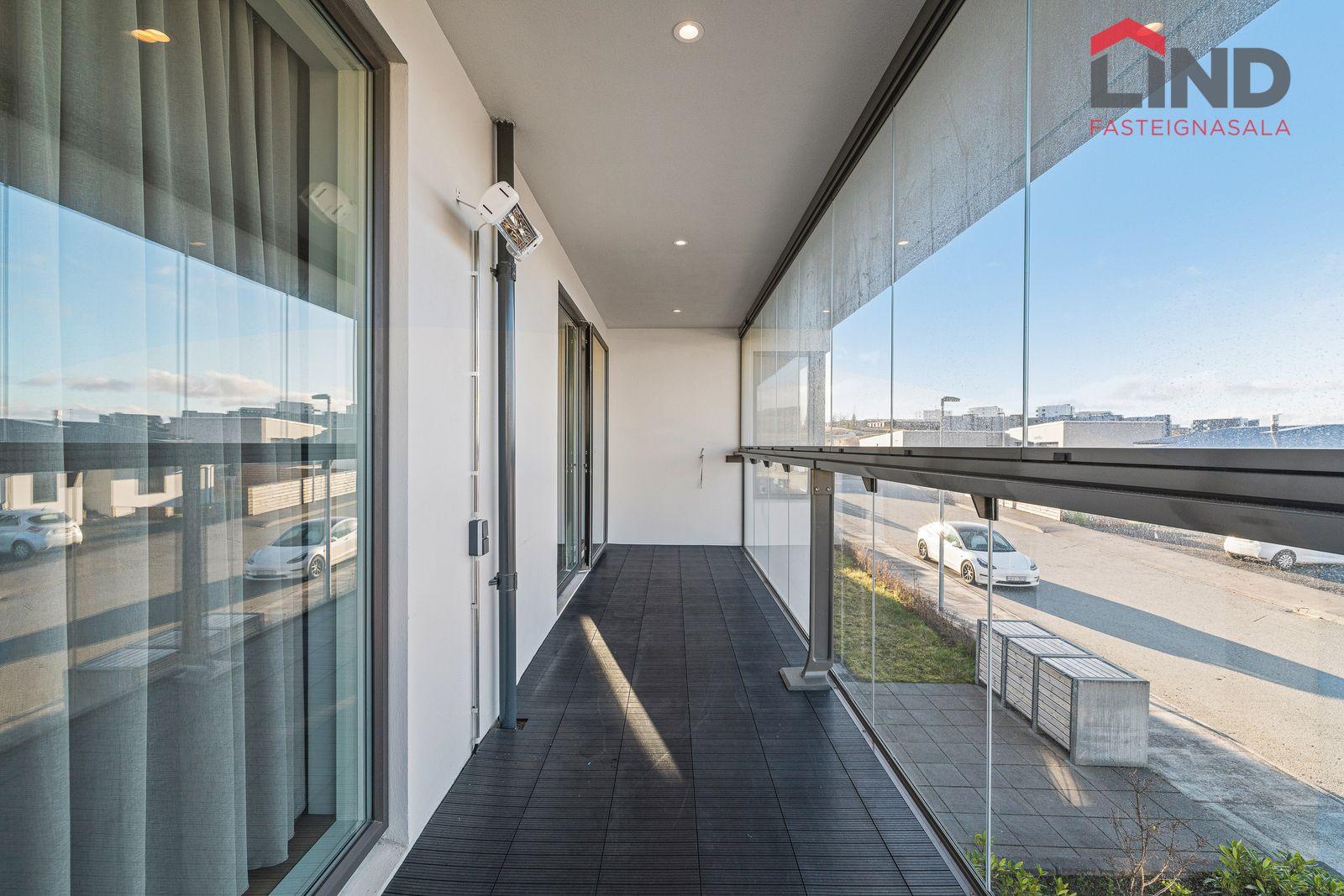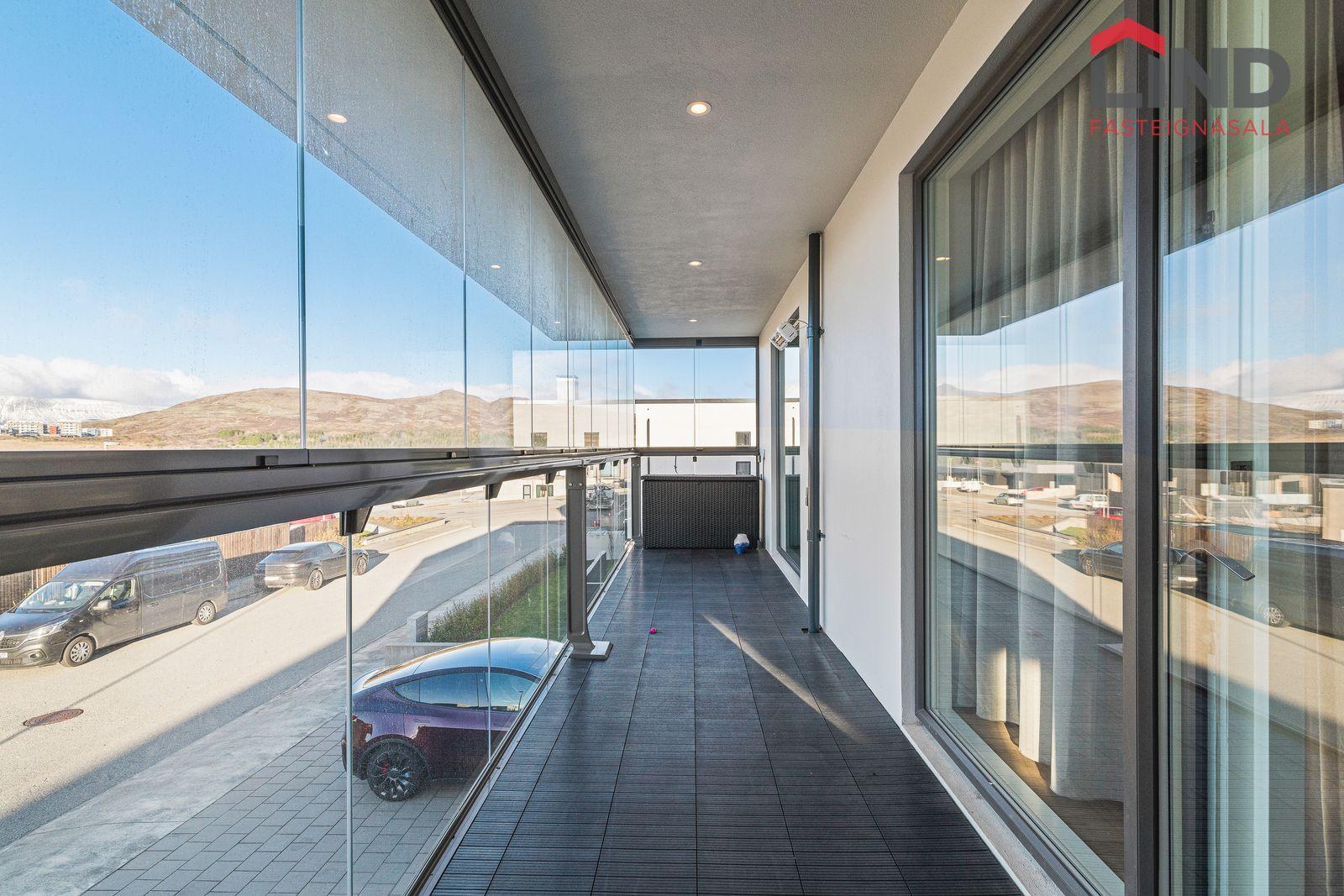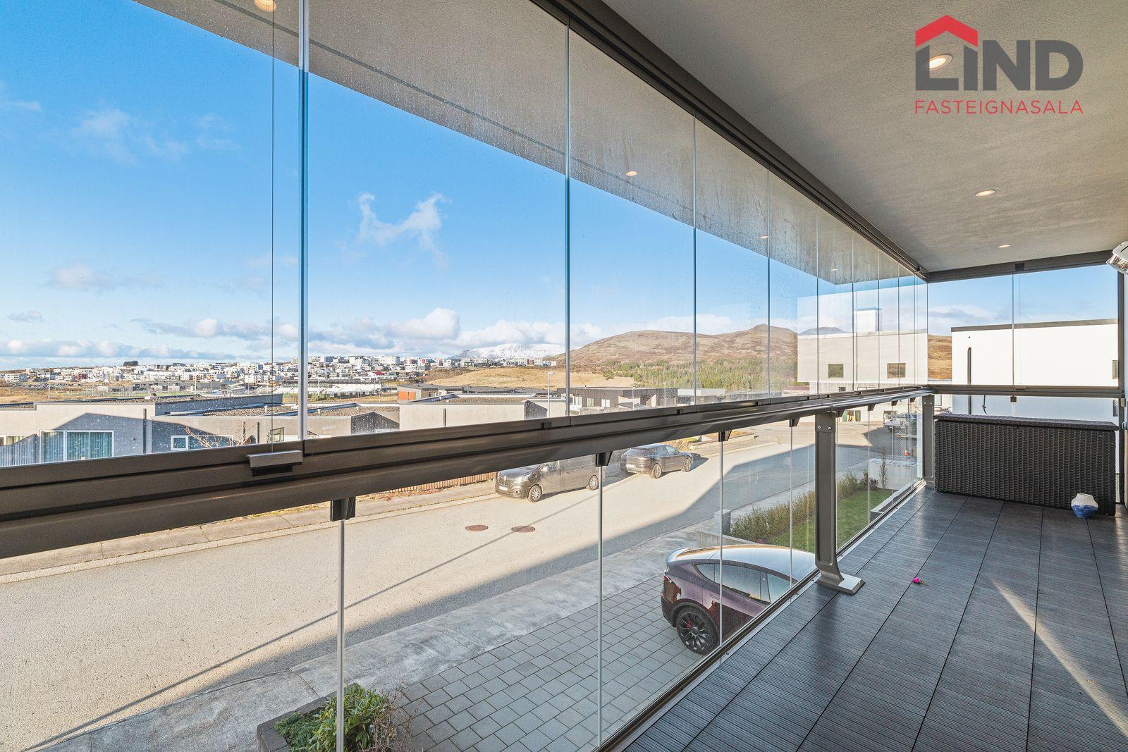 Svalir: Eru stórar og yfirbyggðar með glæsilegu útsýni. Innf. ljós í svalalofti og rafmagnshitun.