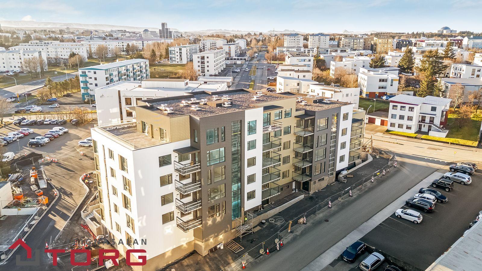 Sameign, lóð og bílageymsla verður afhent samhliða afhendingu síðustu íbúða í Bolholti 7.