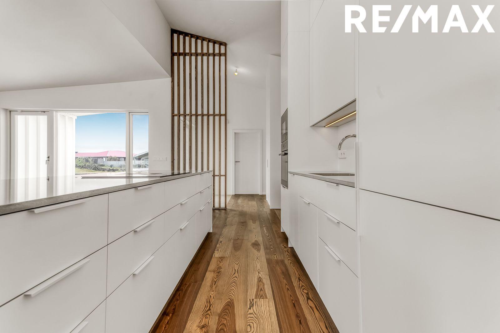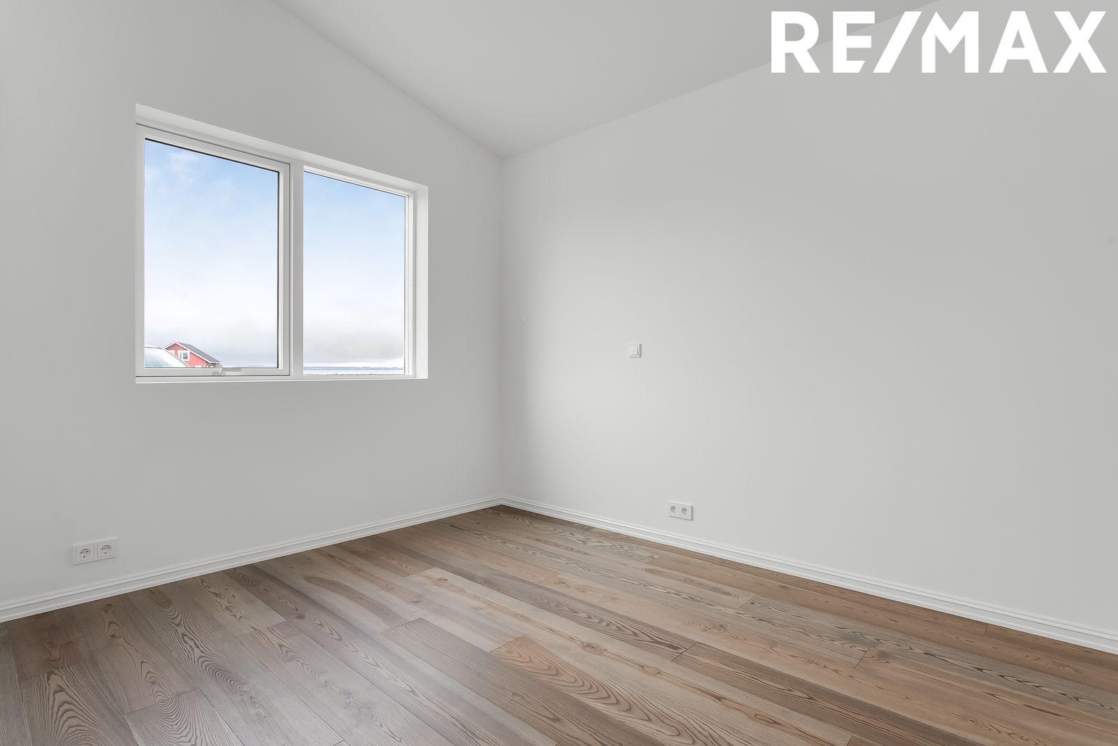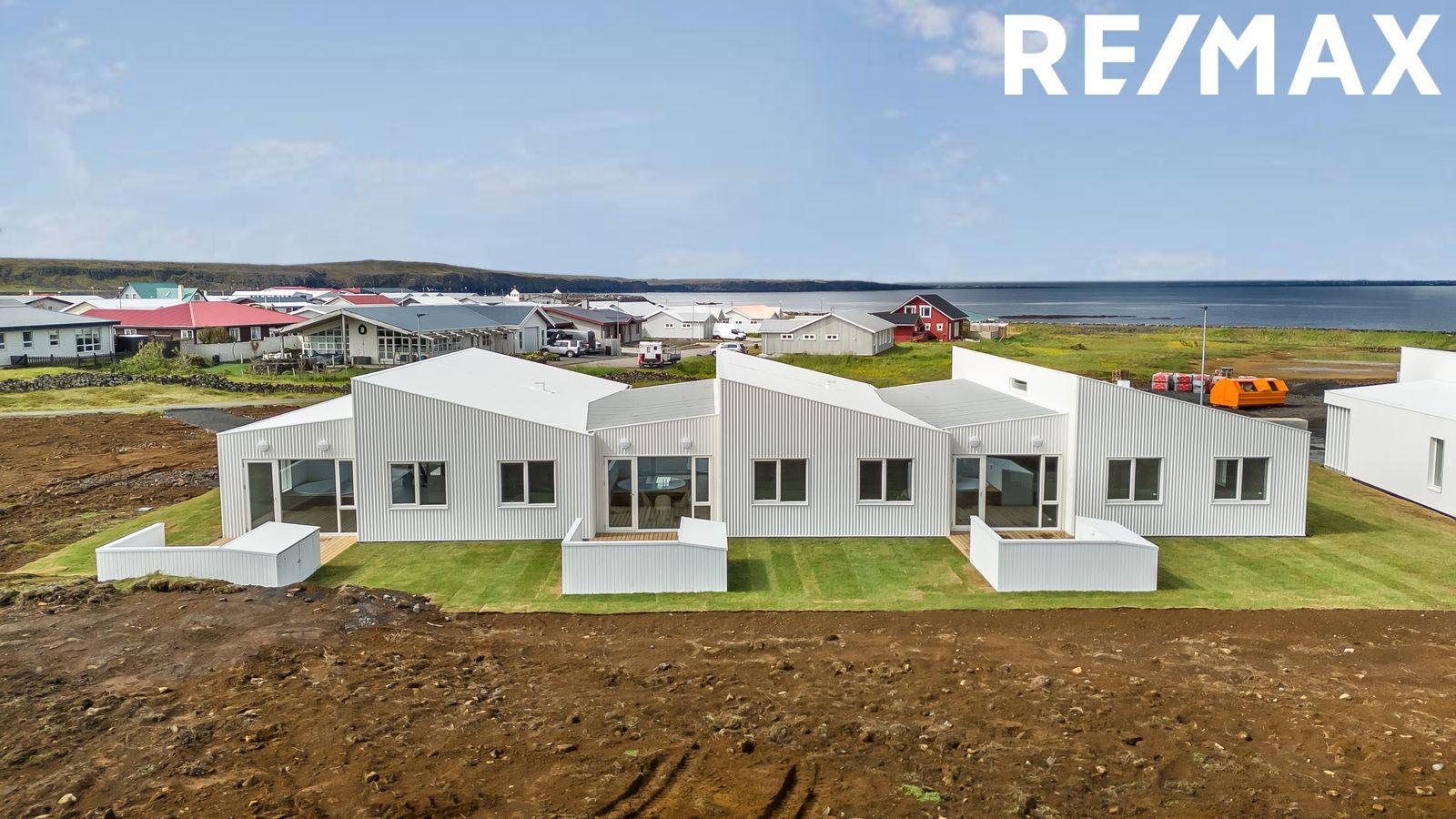 Nánari lýsing eignar: Forstofa: Er með flísum á gólfum og rúmgóðum fataskápum. Stofa og borðstofa er í opnu alrými með eldhúsi, rúmgóð stofa með útgengi á sólpall sem klæddur er með fallegu lerki, búið er að koma fyrir heitum pott, lofthæð innan eignarinnar á hæsta punkt eru um fjórir metrar og setur það mikinn svip á stofuna. Innfelld lýsing þar sem á við. Eldhús: er opið við stofu. Eldhúsinnrétting er hvít melamine með ljósri Quartz borðplötu. Með hverri íbúð fylgir span helluborð með gufugleypi, bakarofn, örbylguofn, innbyggð uppþvottavél og ísskápur með frysti. Svefnherbergi eru fjögur talsins þeim fylgja fataskápar í sama lit og efni og er á eldhúsinnréttingu. Parket á gólfum. Baðherbergi: Er flísalagt í hólf og gólf með 60x60 flísum, upphengt salerni, sturtuklefi og innrétting við vask með ljúflokun á skúffum, tengi fyrir þvottavél og þurrkara. Þvottahús / Geymsla er með flísum á gólfi, innrétting með tengi fyrir þvottavél og þurrkara.