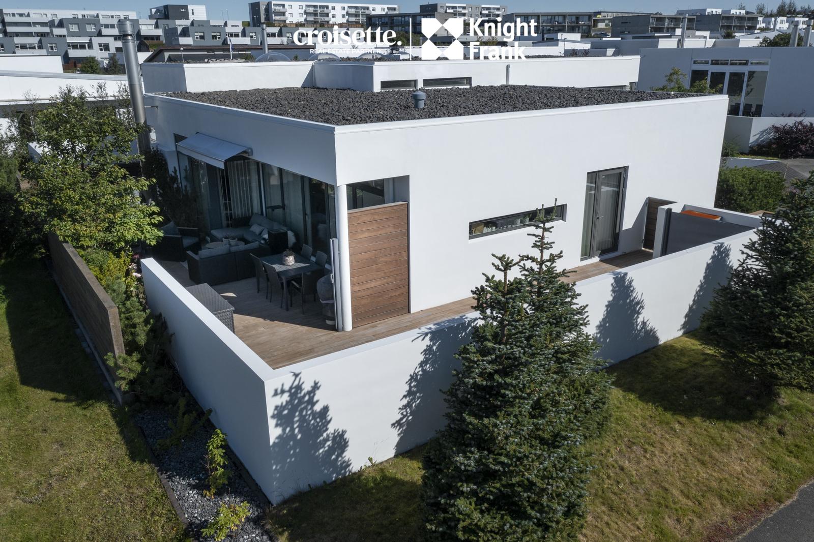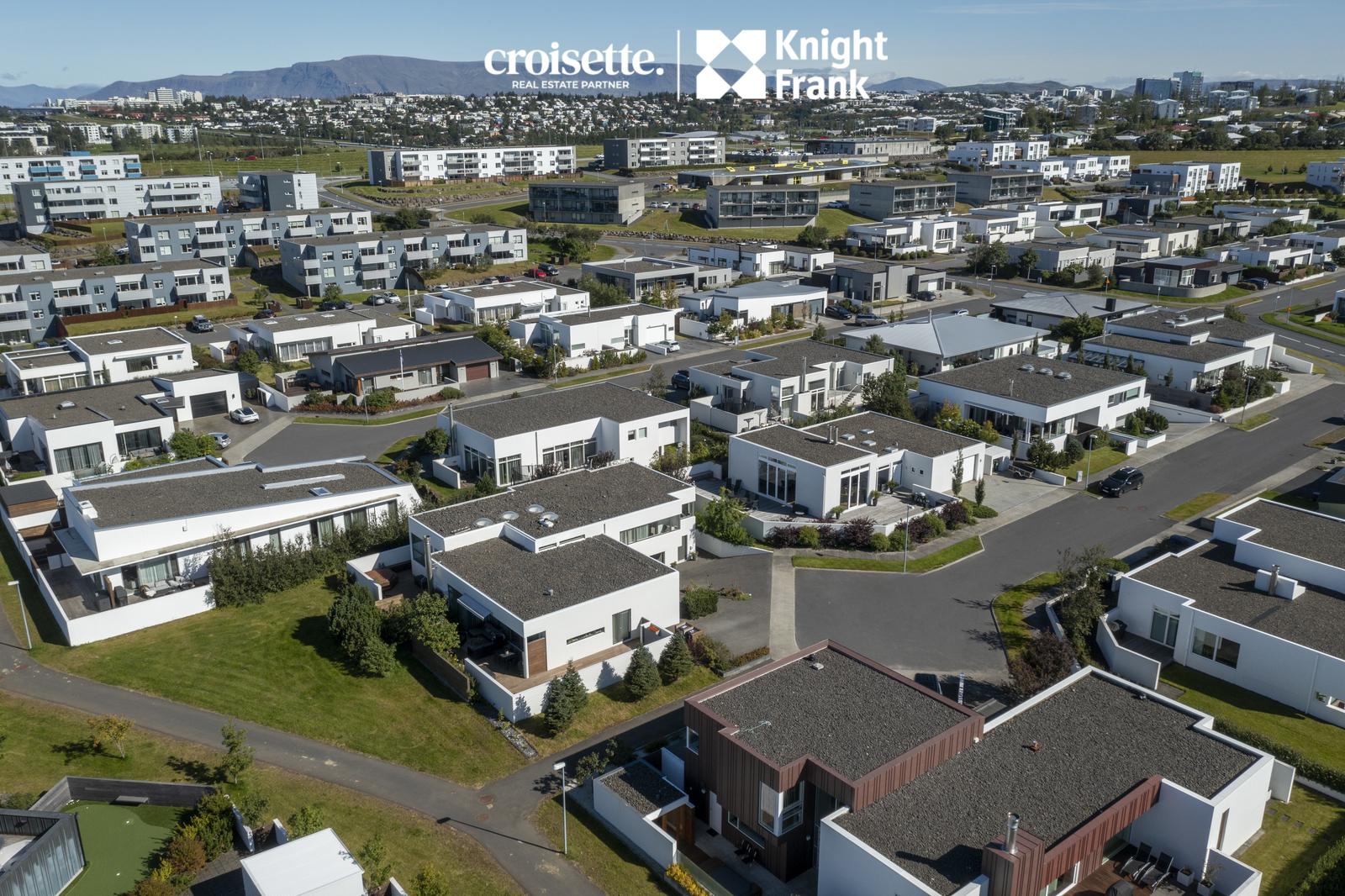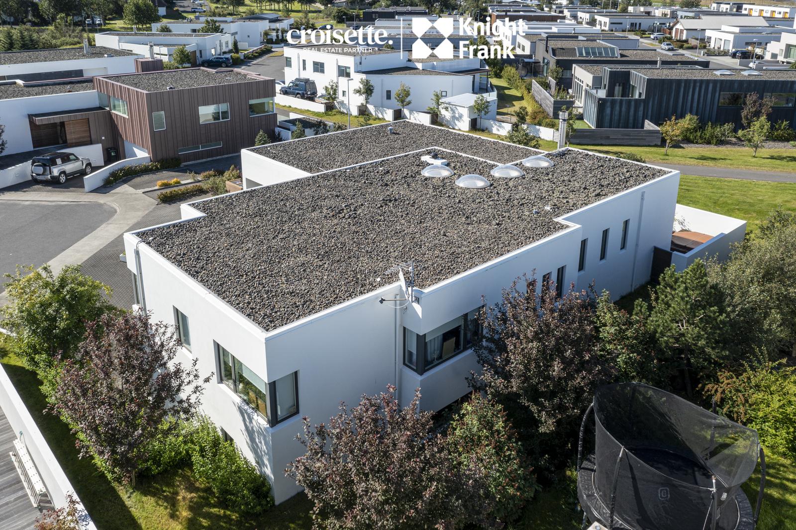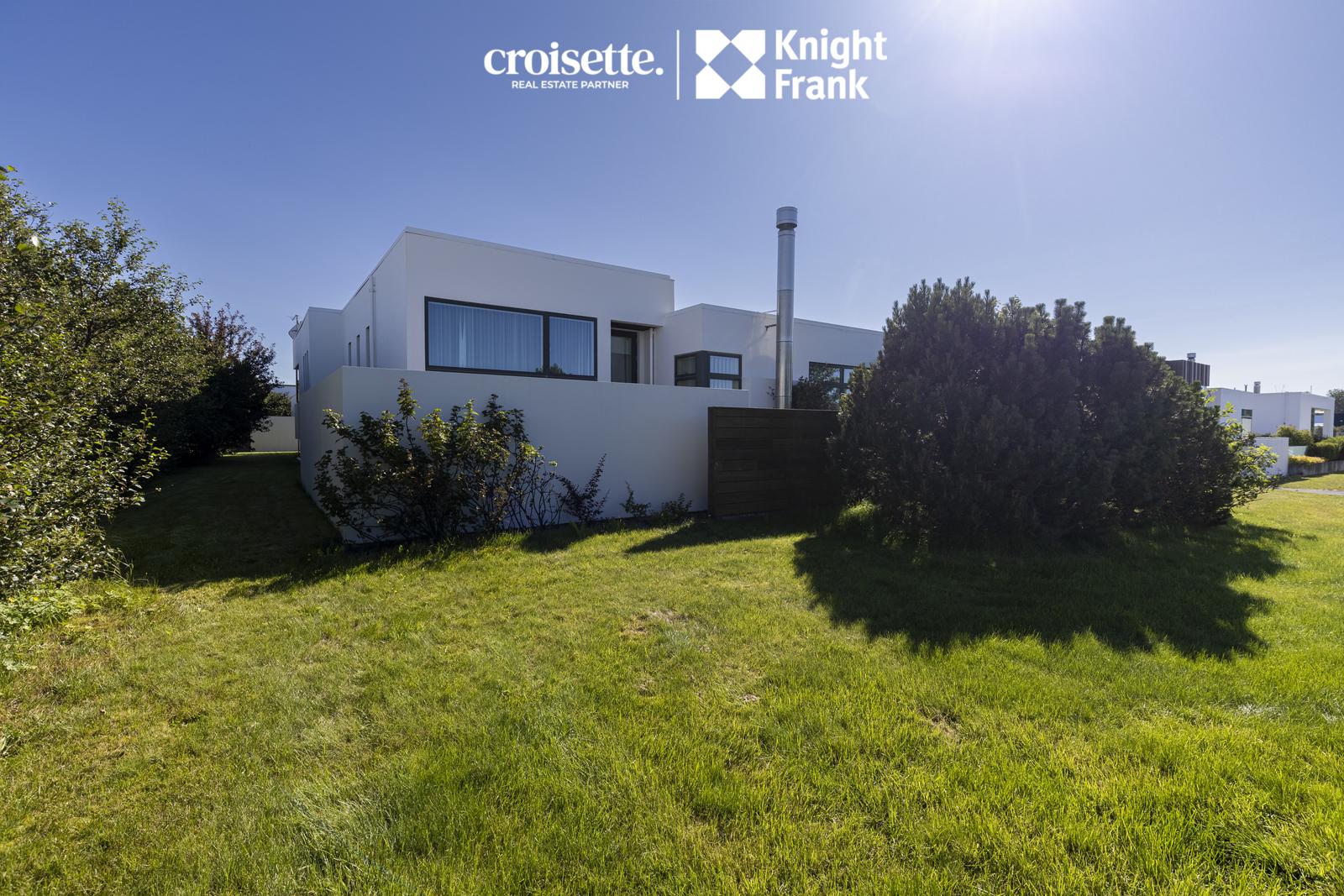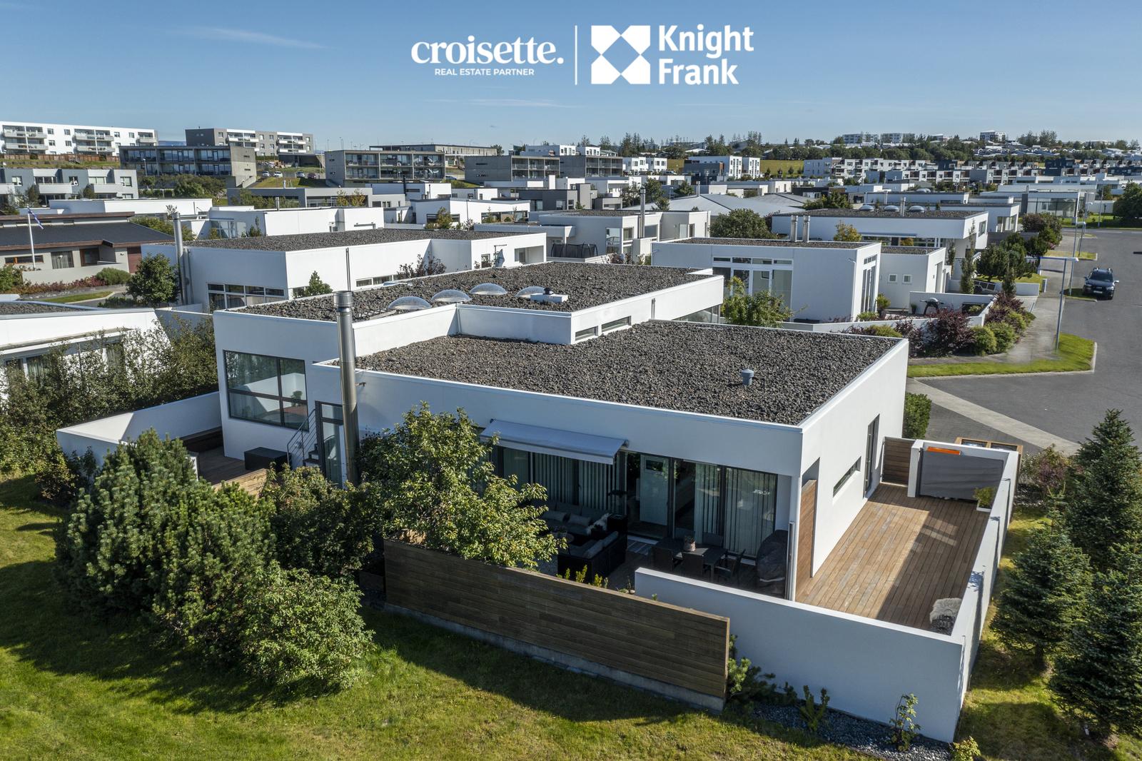CROISETTE - KNIGHT FRANK kynnir í einkasölu einstaklega fallegt og vel staðsett einbýlishús á þremur pöllum með aukinni lofthæð. Eignin er skráð 395 fm en að auki er 60 fm tómstundaherbergi sem er ekki skráð inní heildarfermetratölu. Í skráðum fermetrum er svo 71, 9 fm innbyggð bílageymsla, vínkjallari og hjólageymsla. Staðsett innst í botnlanga í rólegu og fjölskylduvænu umhverfi í Akrahverfinu, Garðabæ. Eignin skiptist í fjögur svefnherbergi, þrjár stofur, þrjú baðherbergi, eldhús, tómstundarherbergi og bílageymslu. Fullfrágenginn fallegur skjólsæll garður með sólpalli og heitum potti. Sigurður Hallgrímsson hannaði húsið og Guðbjörg Magnúsdóttir sá um innanhúshönnun. Húsið er á frábærum stað, stutt í skóla, leikvelli og verslanir. Allar nánari upplýsingar veitir Karl Lúðvíksson Lfs í S: 663-6700 eða kalli@croisette.is
