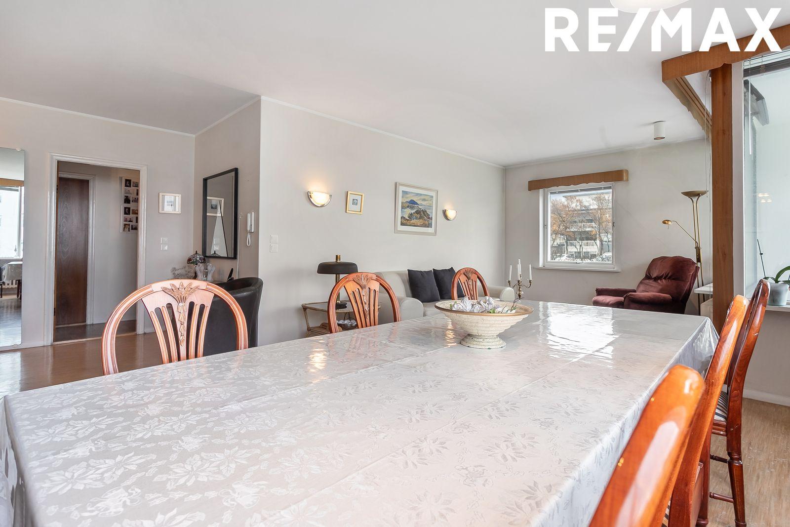 Stofa og borðstofa eru björt rými með gluggum í suður og útgengt er þaðan út á rúmgóðar svalir.