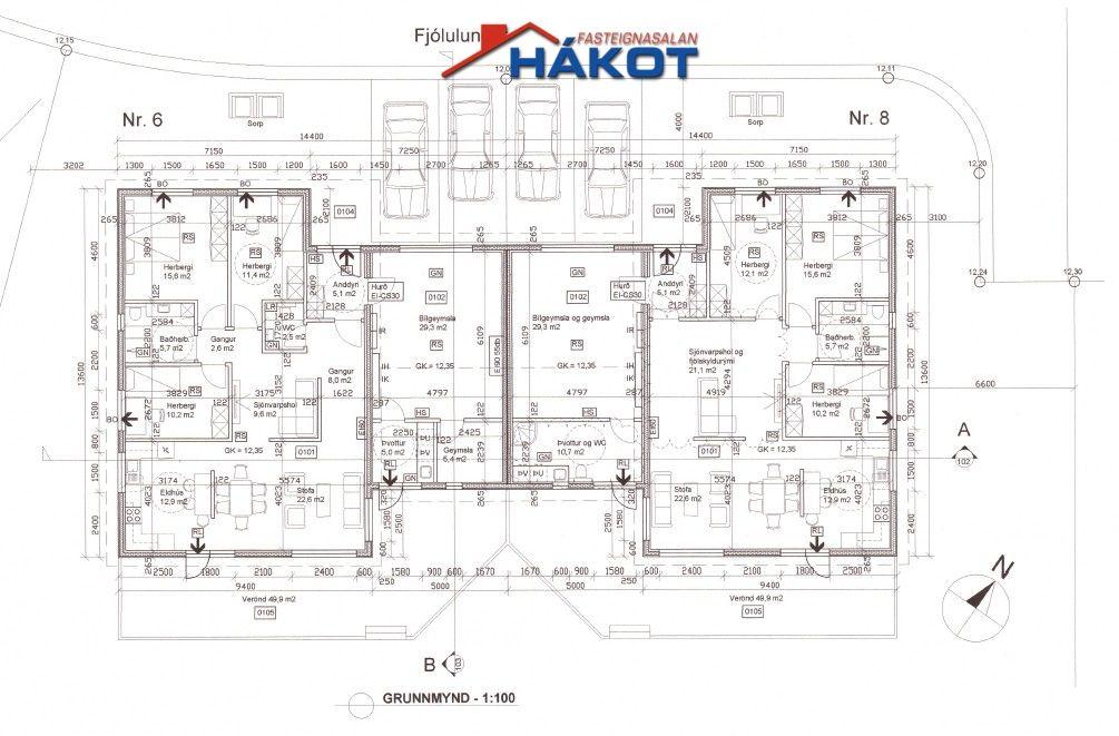 ** FJÓLULUNDUR 8 ** Parhús á einni hæð (135.1 fm) ásamt bílskúr (33 fm) =168.1 fm.