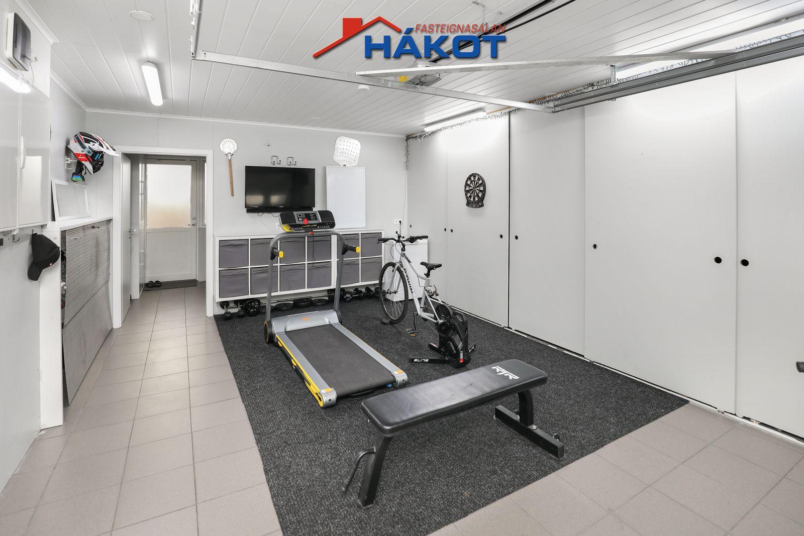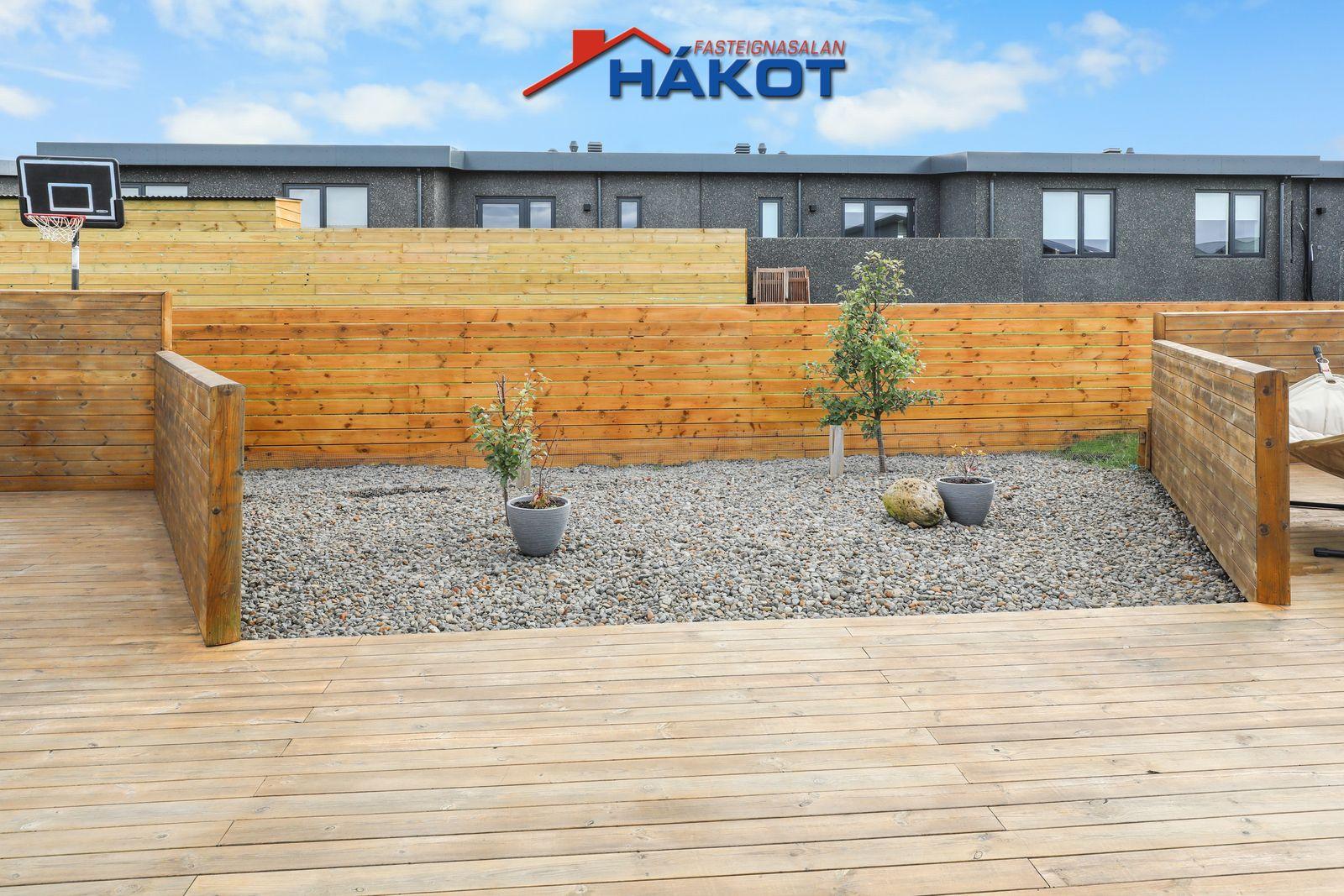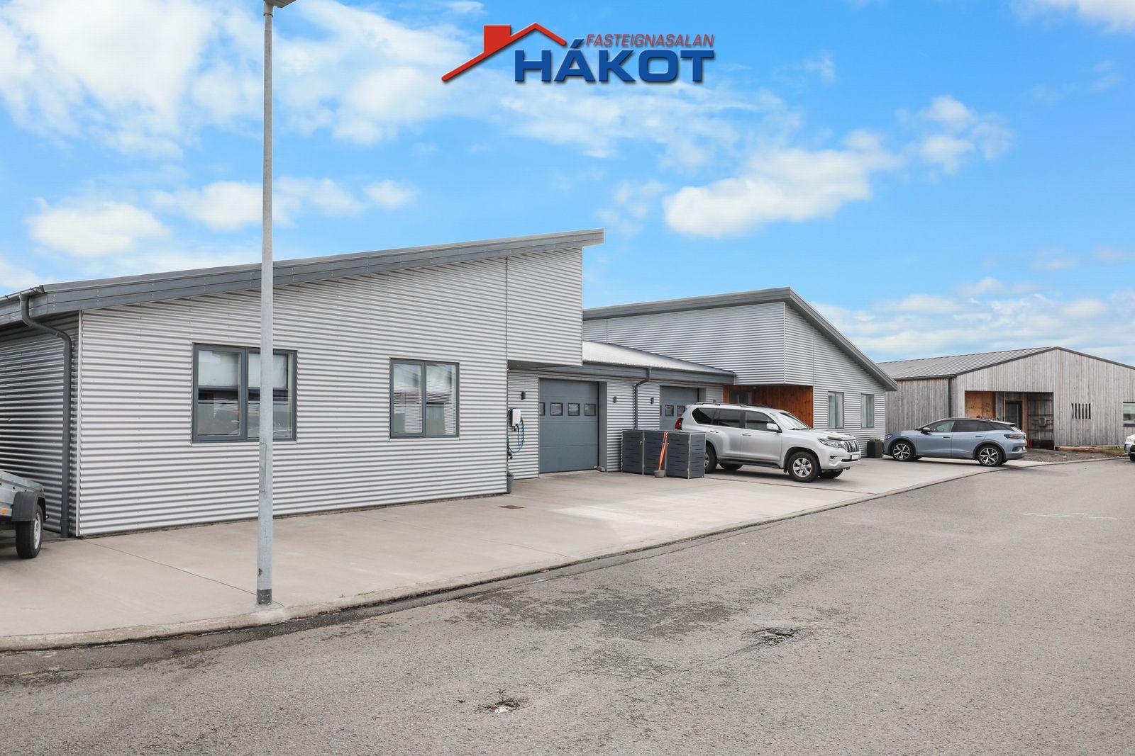 Bílskúr (flísar, flekahurð m/hurðaropnara,skápar, þvottahús í enda).