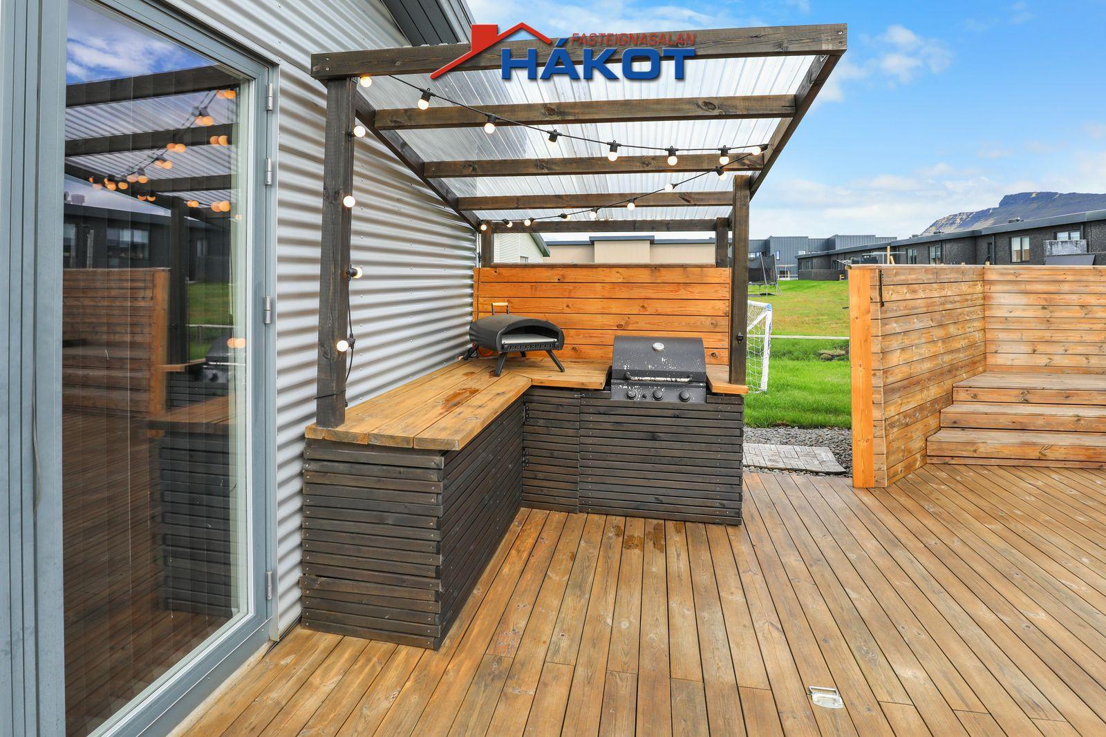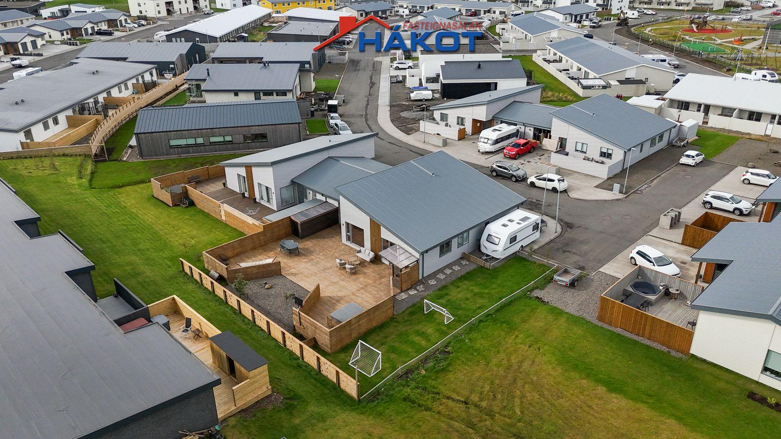 ANNAÐ: Stór afgirt Verönd. Alrými með dúk í lofti. Steypt innkeyrsla með hitalögn (ótengd). Geymsluloft yfir forstofu og herbergi. Klætt að utan með báruáli og timbri. Staðsett í kyrrlátri botnlangagötu. Örstutt á golfvöll.