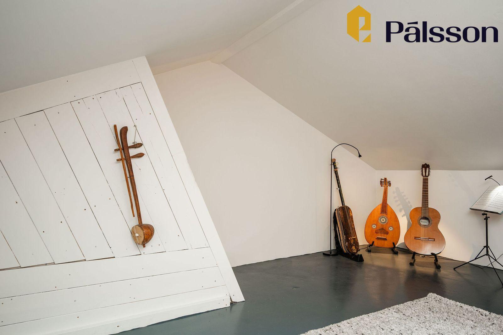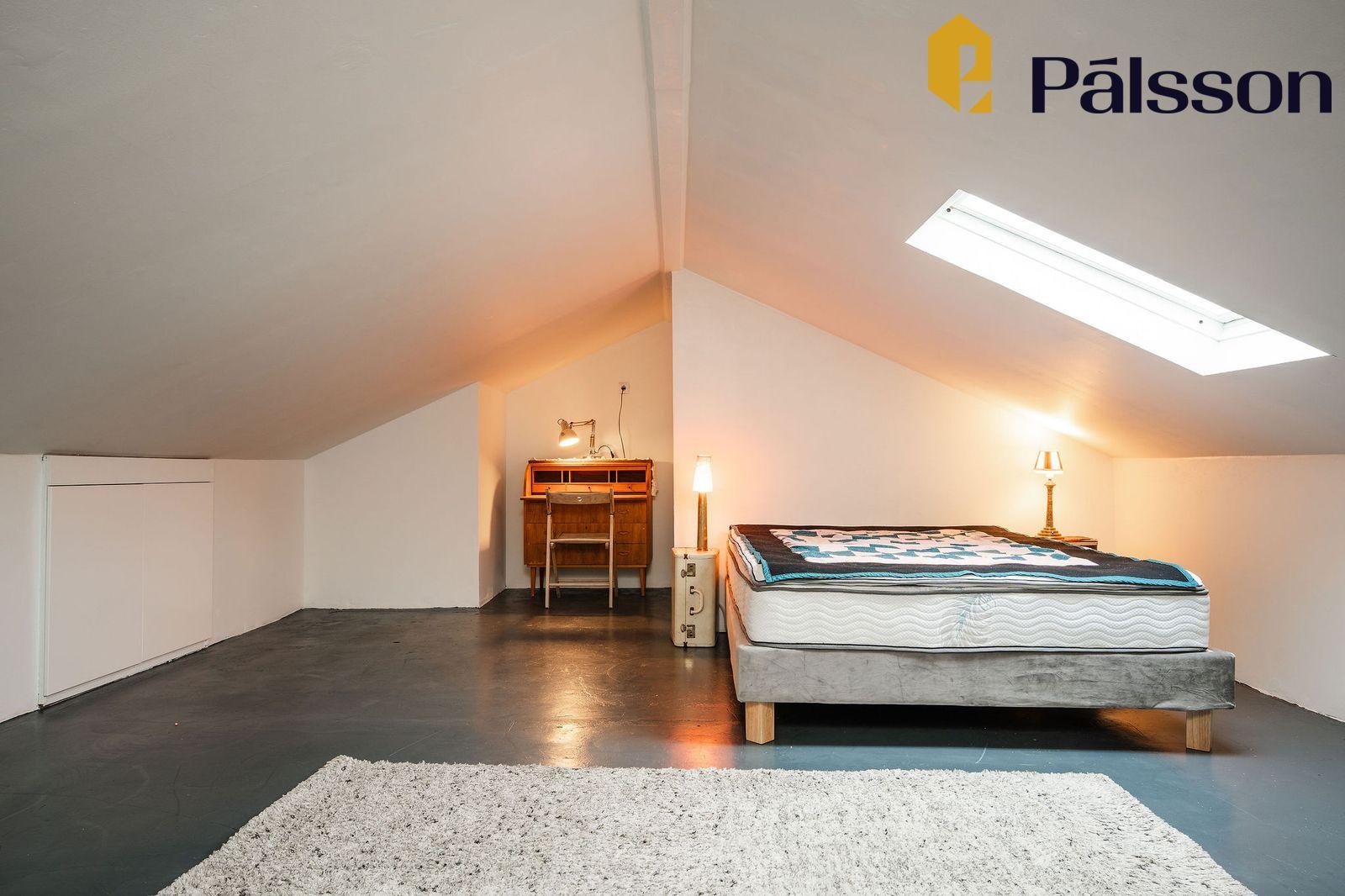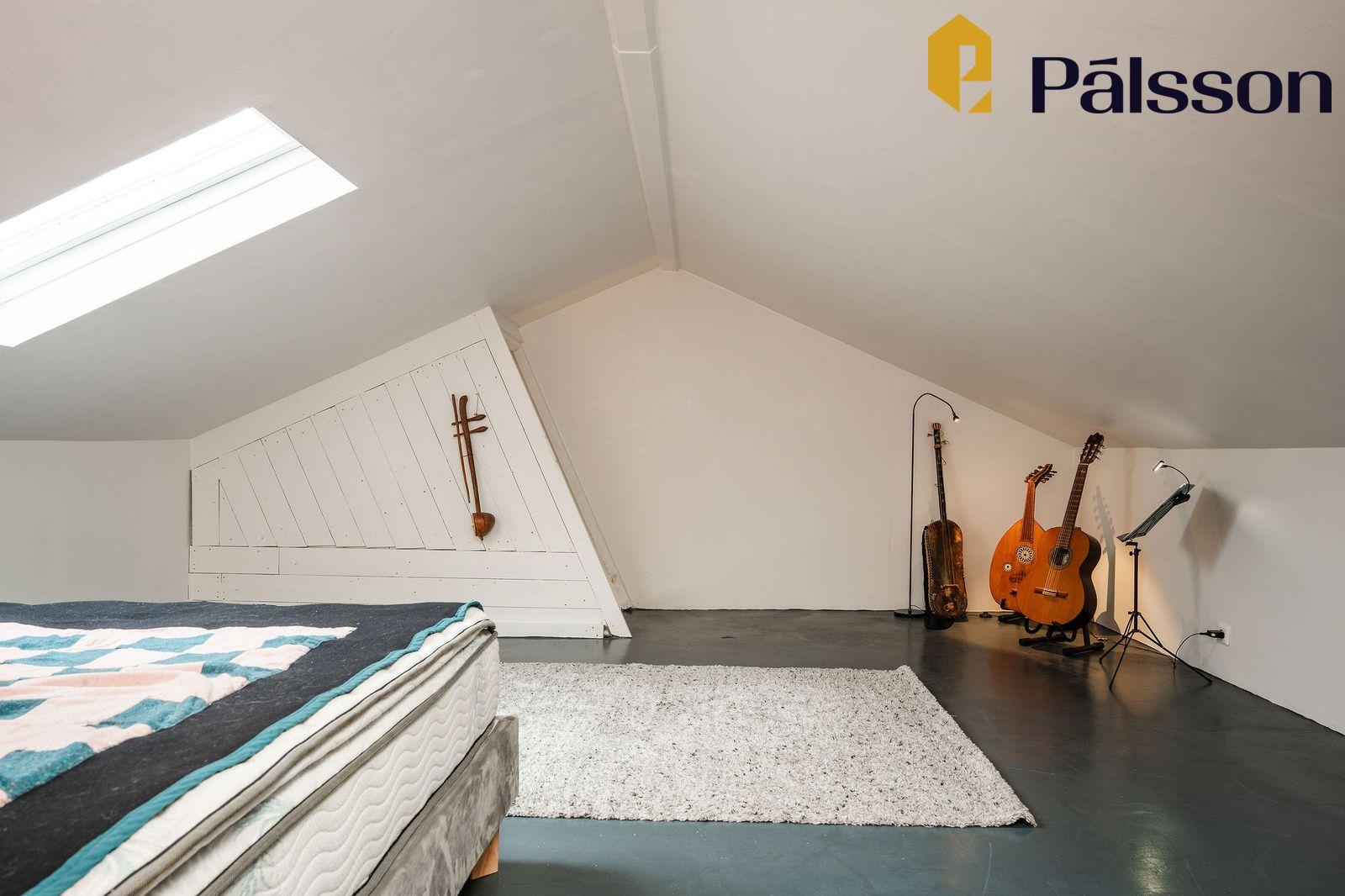 Risloft. Gengið er upp tröppuskápa upp á rúmgott risloft sem skráð er 18,9m2 en nýtanlegir fermetrar eru meiri þar sem rýmið er undir súð. Opnanlegur þakgluggi er í rýminu og geymsla undir súð. Risloftið hefur verið nýtt sem svefnherbergi. Málað gólf.