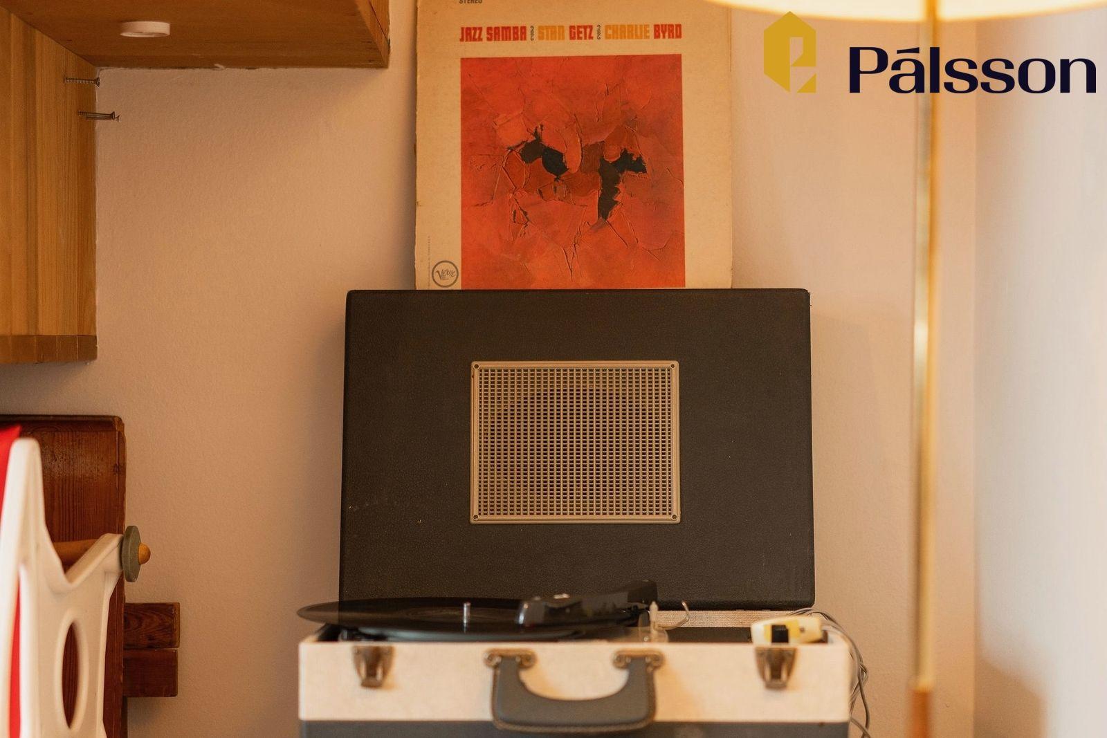Eignin skiptist í svefnherbergi, baðherbergi, eldhús,stofu og risloft/geymslu.