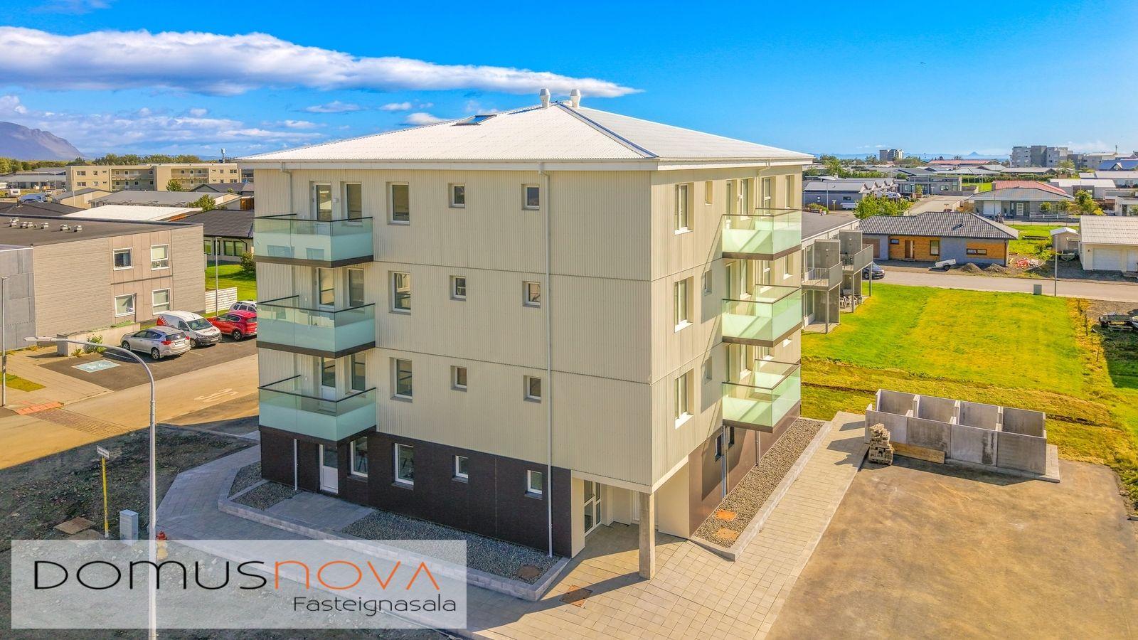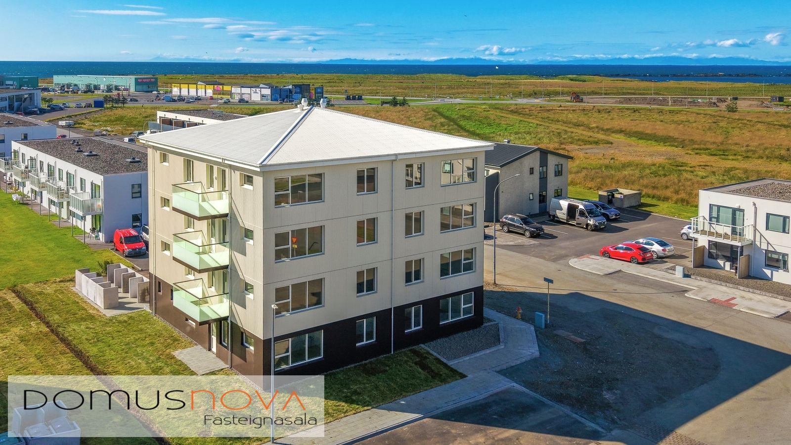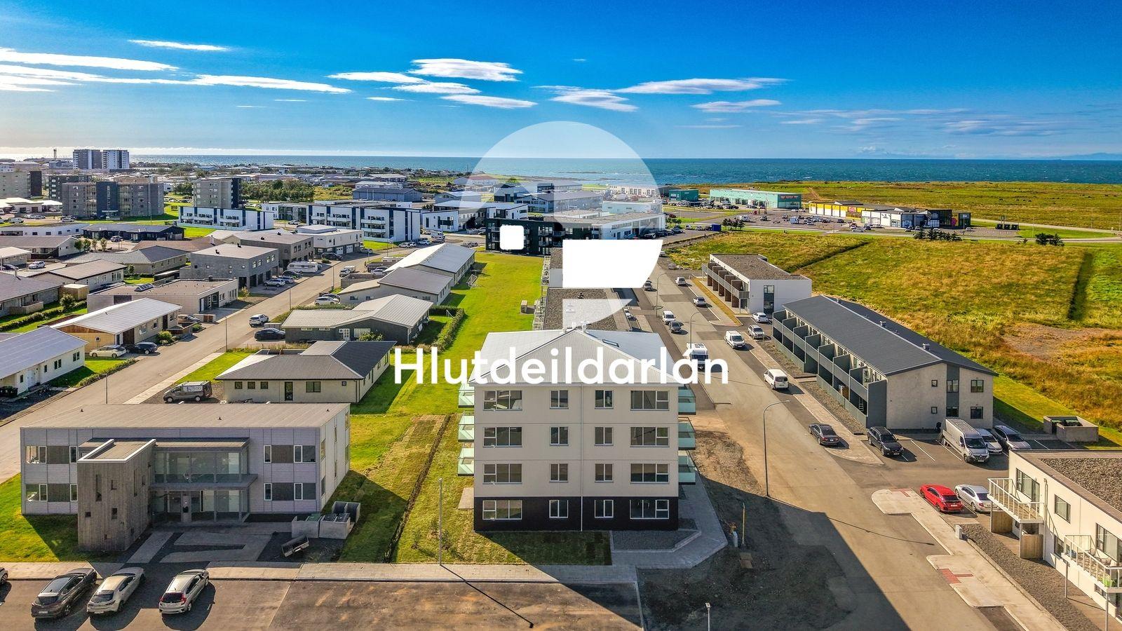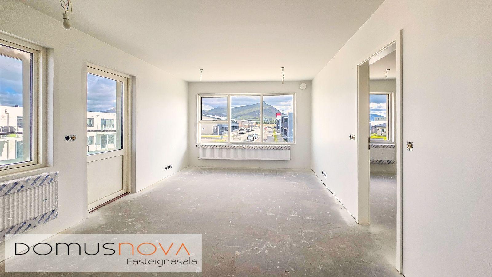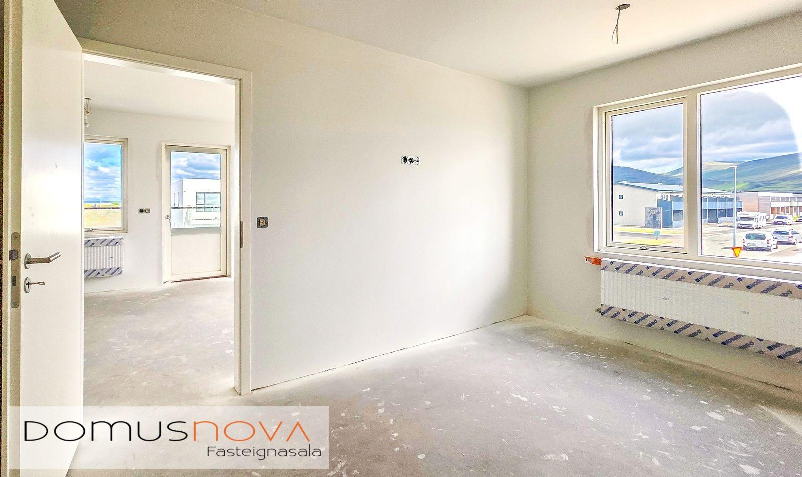 Lóð/bílastæði: Lóðin er 940,3 fm. Aðkoma og að bílastæðum beggja vegna við húsið eru hellulögð stétt með snjóbræðslu. Með húsinu fylgja 19 malbikuð stæði. Sorpgerði fyrir tunnur er á lóð. Að öðru leyti verður lóðin þökulögð eða með náttúrulegum móa. Tengibúnaður (ídráttarrör) vegna hleðslu rafbíla er aðgengilegt við bílastæði (að fimm stæðum næst tengibrunni við hús). Lóðin verður afhent fullbúin í lok byggingartímans.