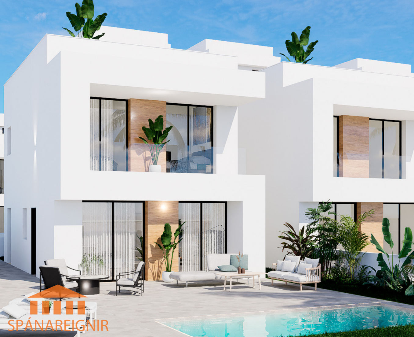 Aðalheiður Karlsdóttir, löggiltur fasteignasali. GSM 893 2495. adalheidur@spanareignir.is, Berta Hawkins, löggiltur fasteignasali, berta@spanareignir.is GSM 0034 615 112 869EINSTÖK STAÐSETNING - FRÁBÆR HÖNNUNGóð einbýlishús á tveimur hæðum ásamt þakverönd og einkasundlaug á hinu vinsæla La Zenia svæði, um 50 mín akstur suður frá Alicante flugvelli. Húsin eru vel skipulögð með þremur svefnherbergjum og þremur baðherbergjum.